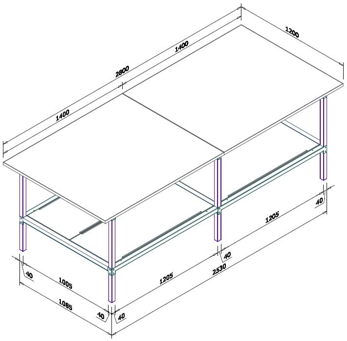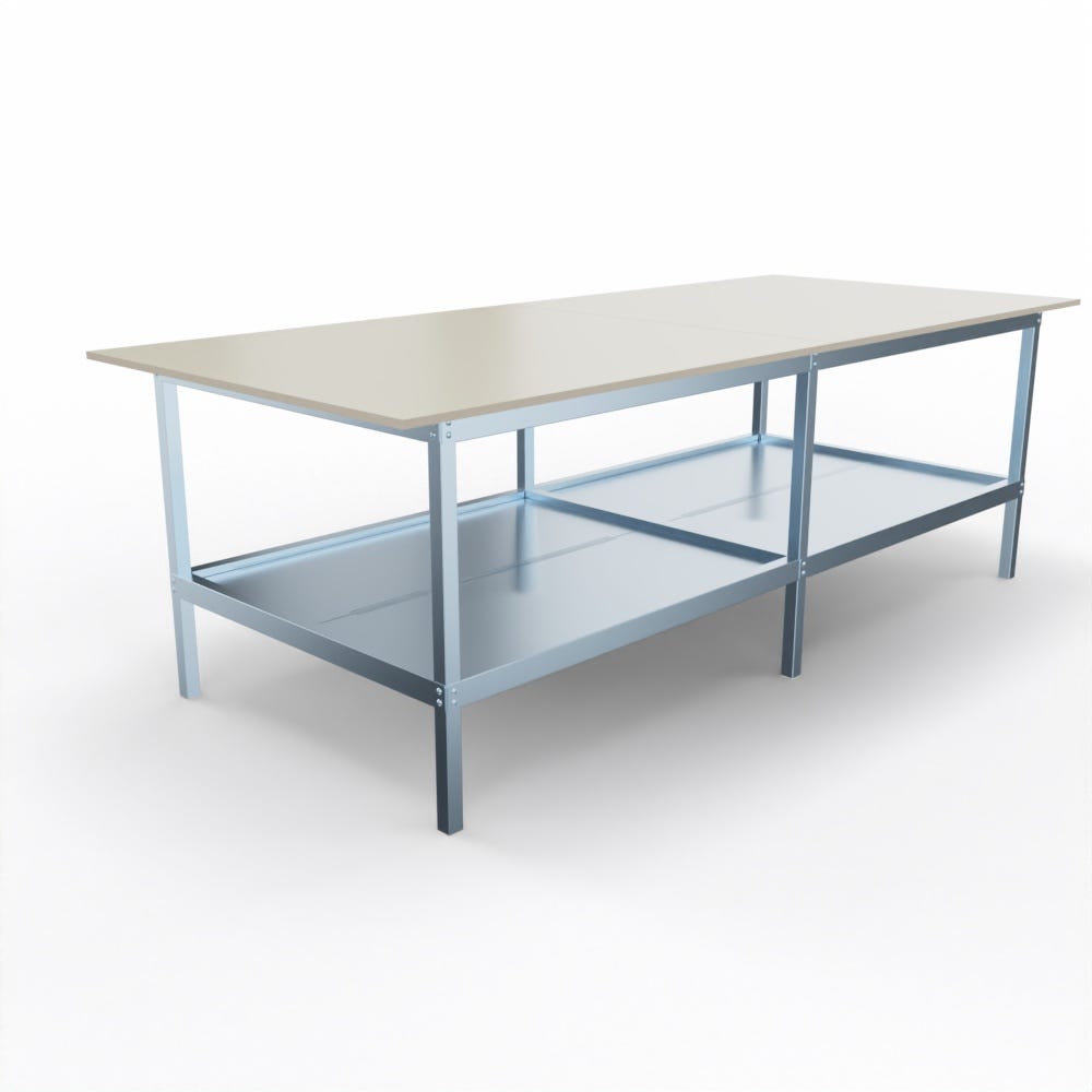 Banco per lavoro con struttura di metallo zincata e piano in nobilitato cm. 280x120x93h
