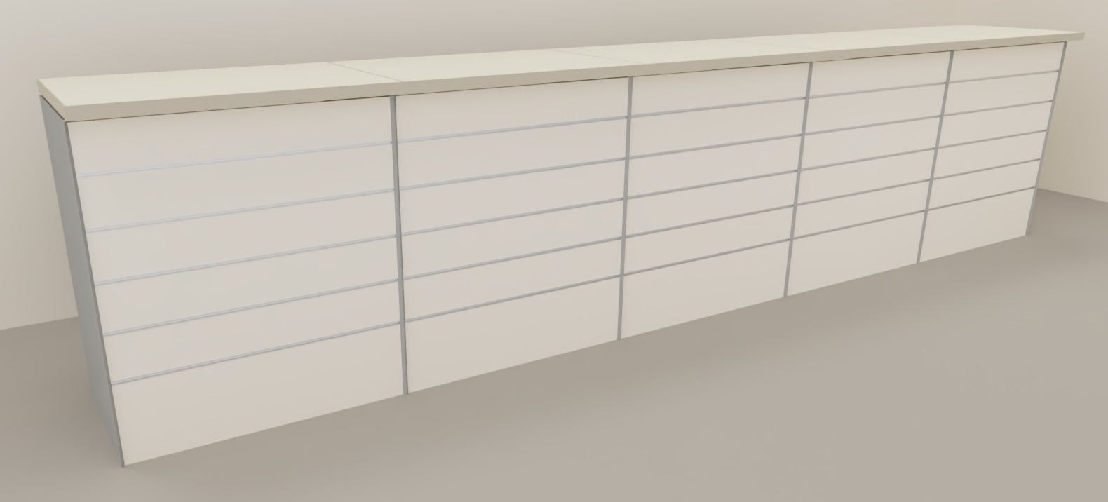 Nome: banco vendita dritto con struttura metallica Dotazioni di serie: n° 1 banco vendita Caratteristiche del prodotto:- banco cassa lineare composto da struttura metallica- lato al pubblico chiusura con pannello dogato in MDF verniciato- lato operatore aperto con piano di base fisso + n° 1 piano regolabile in altezza (colore alluminio)- fianchi metallici lisci verniciati colore alluminio- completo di piano superiore in nobilitato colore canapa spessore mm. 38 con bordo ABS- assemblaggio facile e veloce grazie al sistema completamente ad incastro (senza viti)Dimensioni esterne (LXPXH) cm.: 460x64x106hColore: pannellature frontali a scelta dal menù a tendinaInstallazione: in kit di montaggio con pratiche istruzioniConformità: UNI EN ISO 9001:2008 - 14001:2004 - OHSAS 18001:2007Tempi di approntamento: affidato al corriere in 10-15 gg. lavorativi circaTempi di consegna del corriere: 2-5 gg. lavorativi / 5-7 gg. lavorativi per Isole dall'affidamento al corriereDestinazione d’uso: interno, industria, negozioInformazioni utili: moduli angolari, cassetto in nobilitato con chiusura a chiave, portina "va a e vieni" in laminato, vetrina per banco acquistabili nei prodotti correlati in fondo alla pagina.PER REALIZZARE LA COMPOSIZIONE DEL BANCONE DESIDERATA AGGIUNGERE LA QUANTITÀ AL MODULO SINGOLO DA CM. 92x64x106h DISPONIBILE TRA I PRODOTTI CORRELATIDettagli aggiuntivi o richieste dovranno essere inserite nelle NOTE dell’ordine o inviate ad info@castellanishop.it