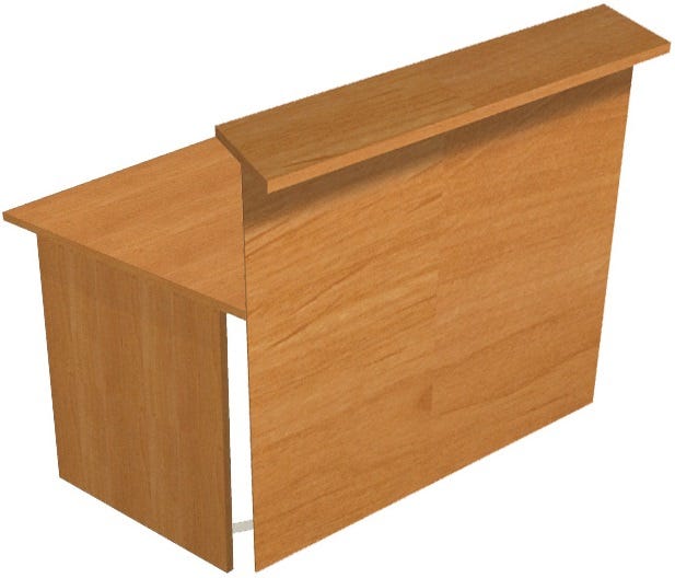 Nome: bancone reception da ufficioCaratteristiche del prodotto: top in melaminico di spessore cm. 2,8, bordature dei piani in abs con assenza di spigoli vivi, piedini regolabiliDotazioni di serie: n° 1 scrivania da cm. 140 (L) con fianchi in melaminico completa di banconeDimensioni esterne (LXPXH) cm.: 140x96,5x115h; piano scrivania (P) cm. 80; mensola/sopralzo bancone (P) cm. 30; scrivania con bancone (P) cm. 96,5Colore: noce chiaro o grigio (consultabili nell'allegato "Cartella colori" e selezionabili dal menù a tendina)Installazione: in kit di montaggio con pratiche istruzioniConformità: pannelli in classe E1 certificati FSC e PEFC, certificazione Green Home, ISO 9001Tempi di approntamento: affidato al corriere in 2-4 gg. lavorativiTempi di consegna del corriere: 2-5 gg. lavorativi / 7 gg. lavorativi per Isole dall'affidamento al corriereDestinazione d’uso: internoInformazioni utili: adatta al lavoro di una persona; la funzione di un’area reception è quella di accogliere visitatori e clienti e di mostrare la propria immagine aziendale con eleganza e funzionalitàDettagli aggiuntivi o richieste dovranno essere inserite nelle NOTE dell’ordine o inviate ad info@castellanishop.it