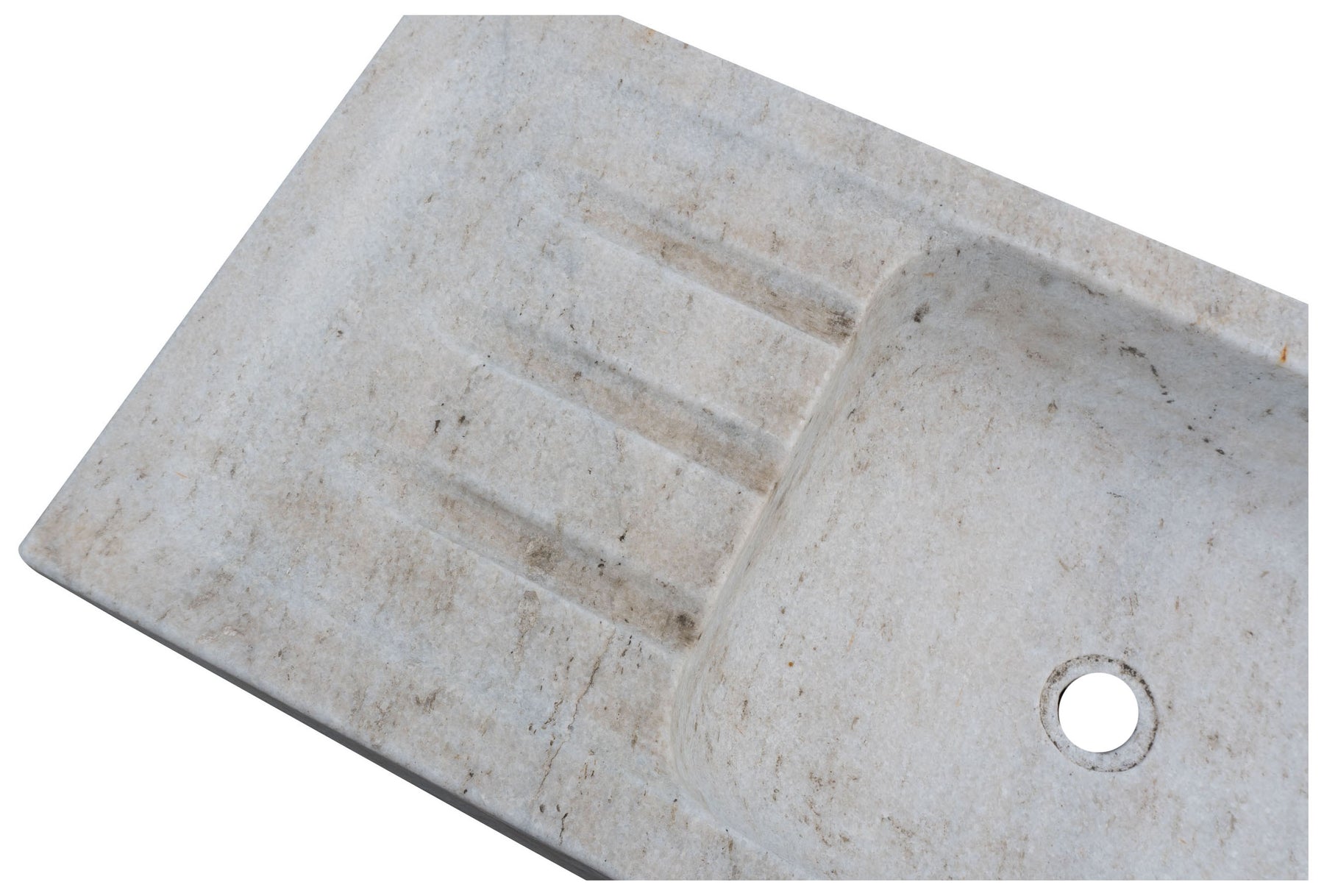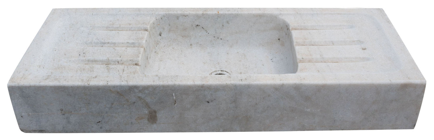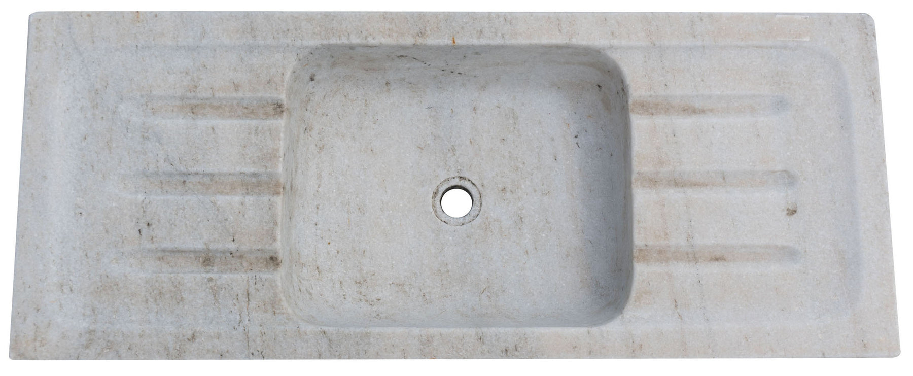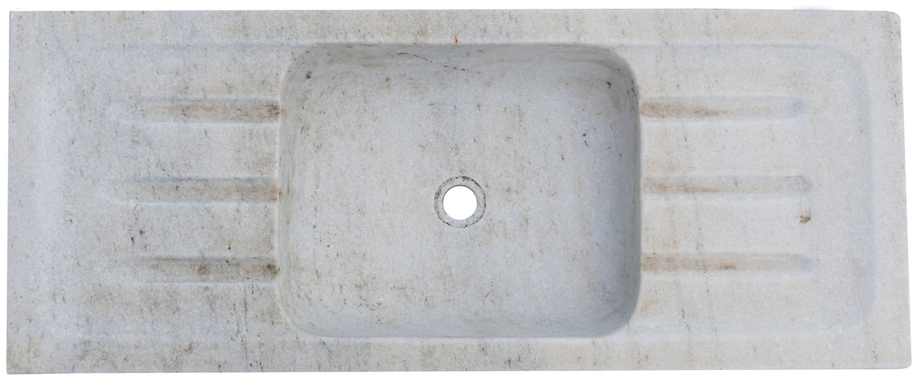 Vasca in marmo realizzata completamente a mano di dimensioni L102xPR41xH15 cm, già dotata di foro per lo scarico. ricavata dalla lavorazione di un unico blocco di marmo, le caratteristiche sfumature e venature del materiale la rendono un pezzo unico. Ideale come lavandino da interni o lavello da esterno ma utilizzabile anche come vasca per fontane