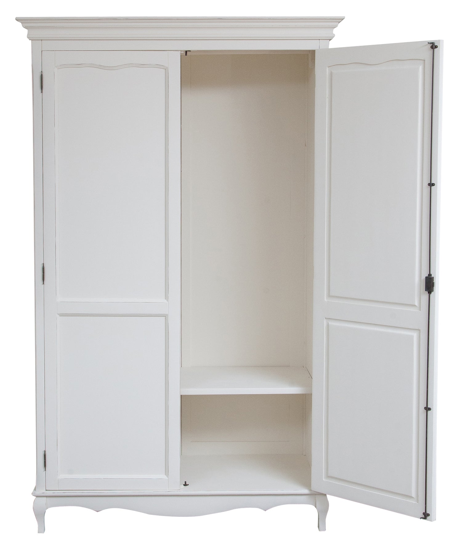 Solido e robusto armadio Shabby completamente realizzato in legno massello di tiglio, frutto della sapiente lavorazione artigianale Made in Italy. Di dimensioni L130xPR57xH210 cm, è dotato di un ampio vano a doppia anta e di un bastone appendiabiti. Ideale per arredare con stile ogni zona notte.