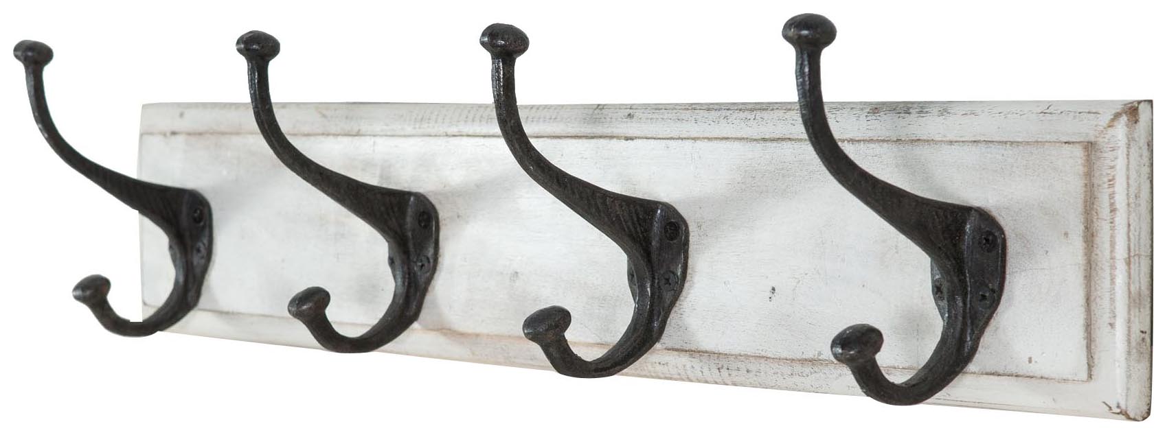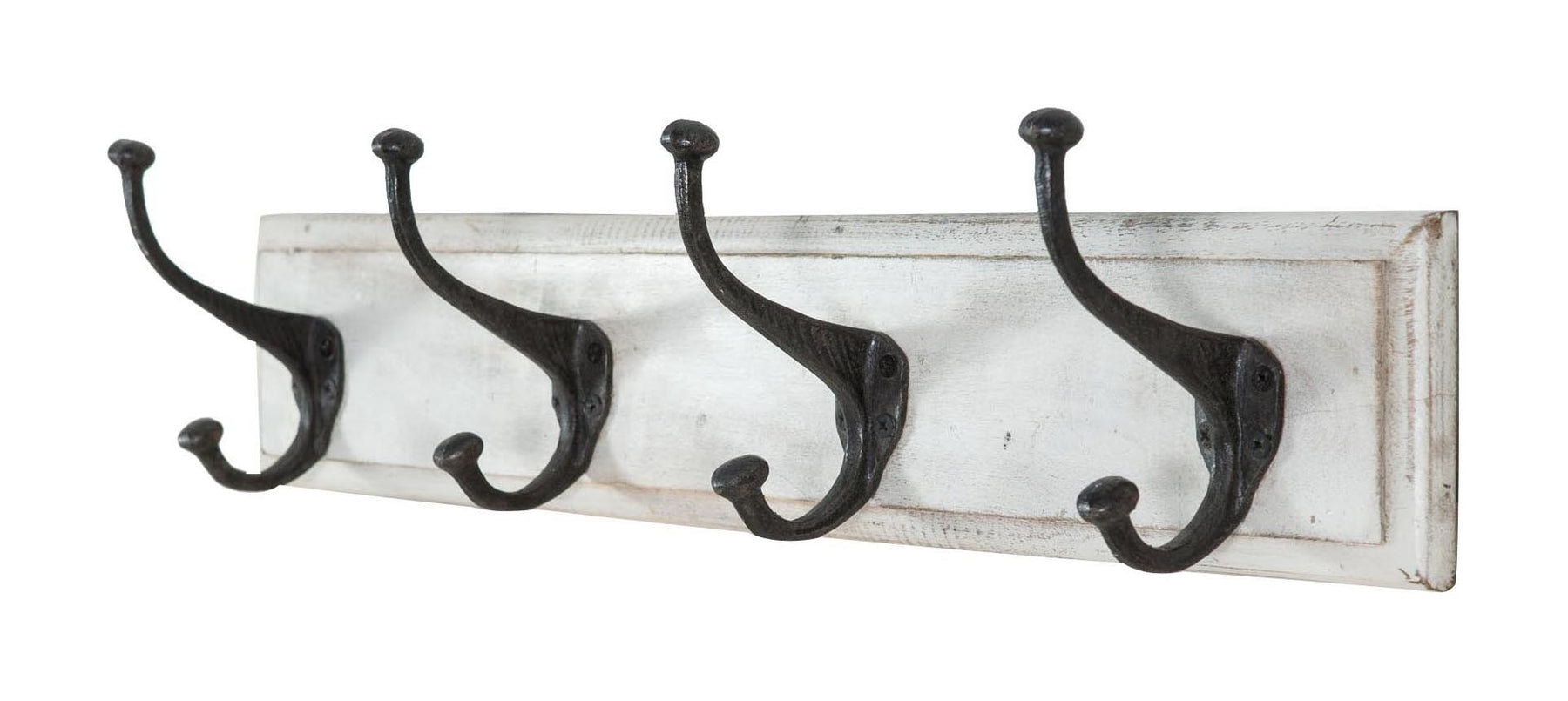 Biscottini Attaccapanni da parete in legno massiccio e ferro forgiato a mano finitura bianco anticato 60x12x16 cm