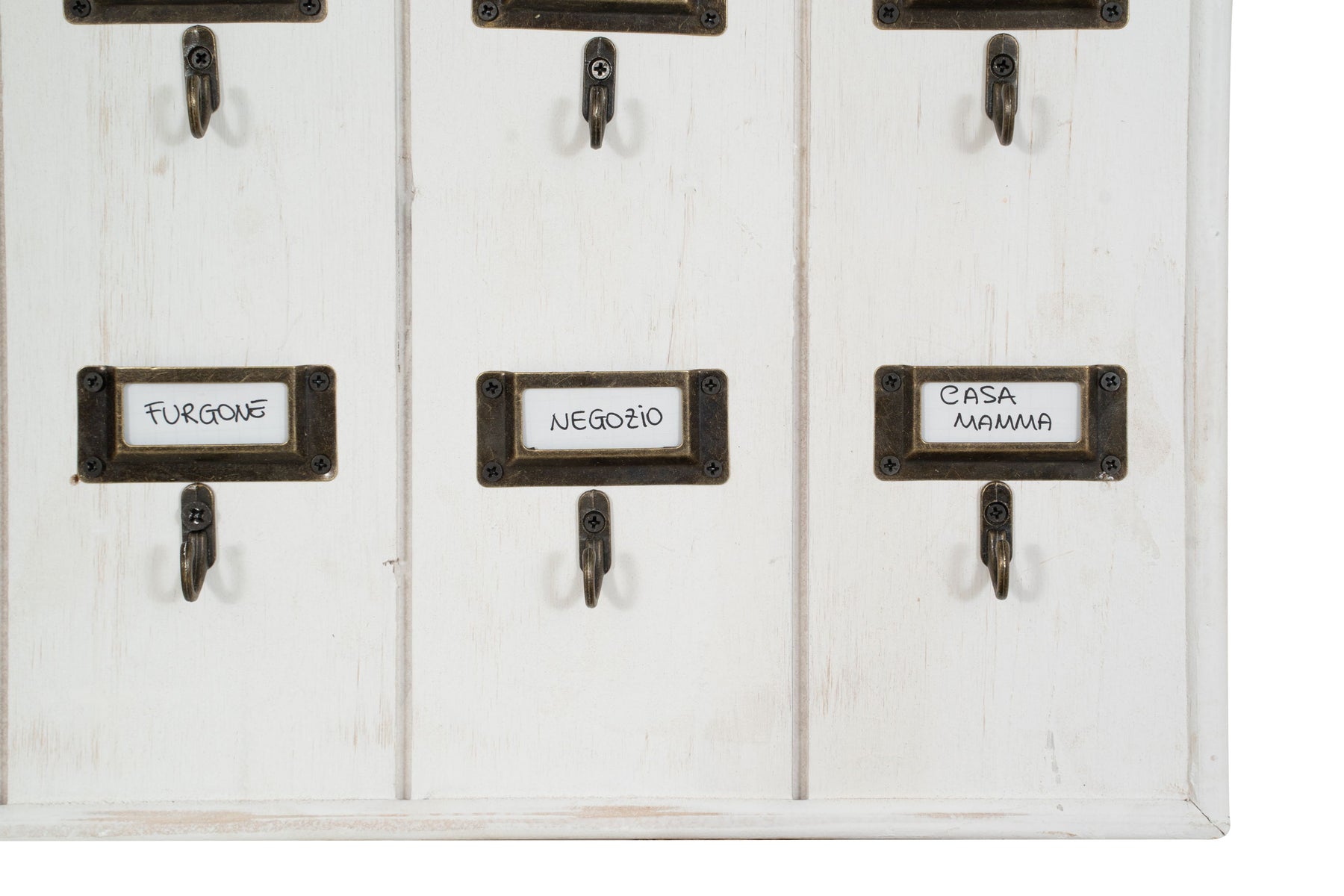 Biscottini Bacheca appendichiavi in legno finitura bianco anticato L49,5xPR4xH60 cm