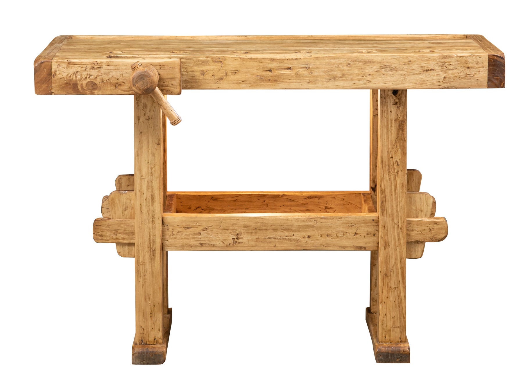 Biscottini Banco da lavoro Country in legno massello di tiglio finitura naturale L126xPR69xH90 cm. Made in Italy