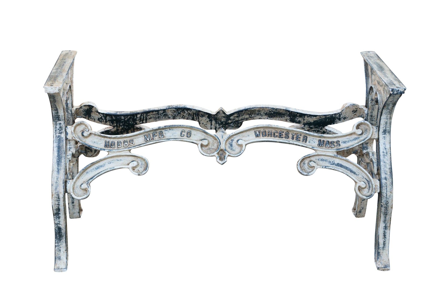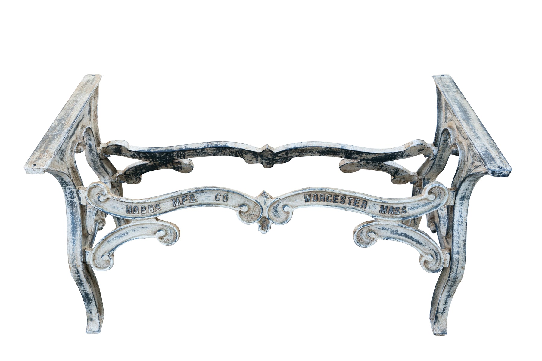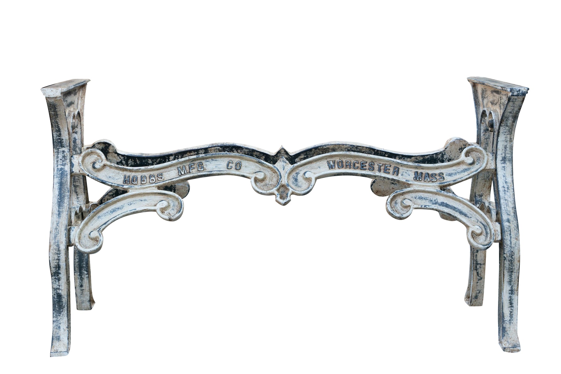 Molto stabile, robusta e pesante base per tavolo in ghisa di dimensioni larghezza 127 cm, profondità 58 cm, altezza 71 cm completamente fatta a mano, con un'accurata finitura completamente realizzata a mano, ottenendo un vero effetto antico.
