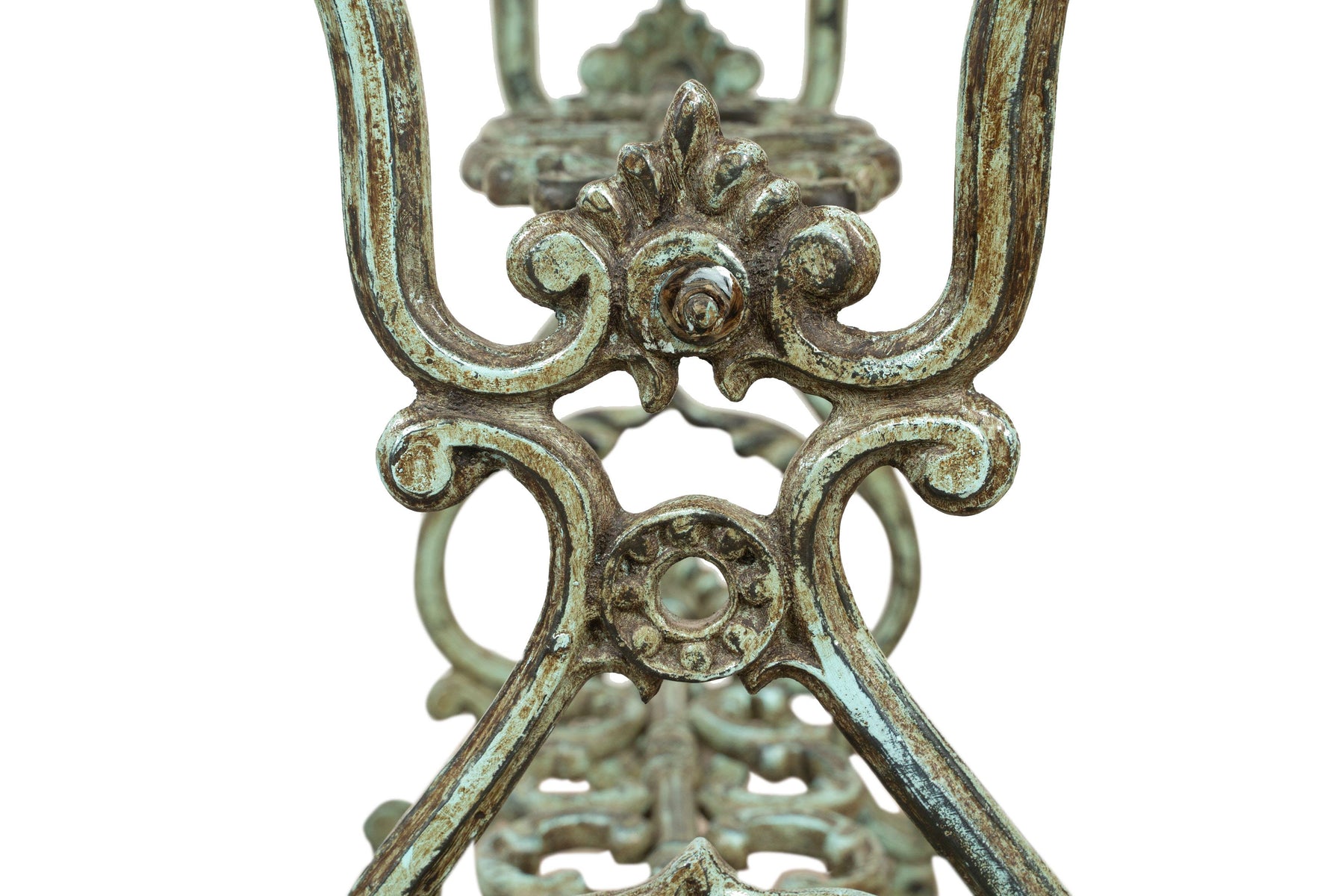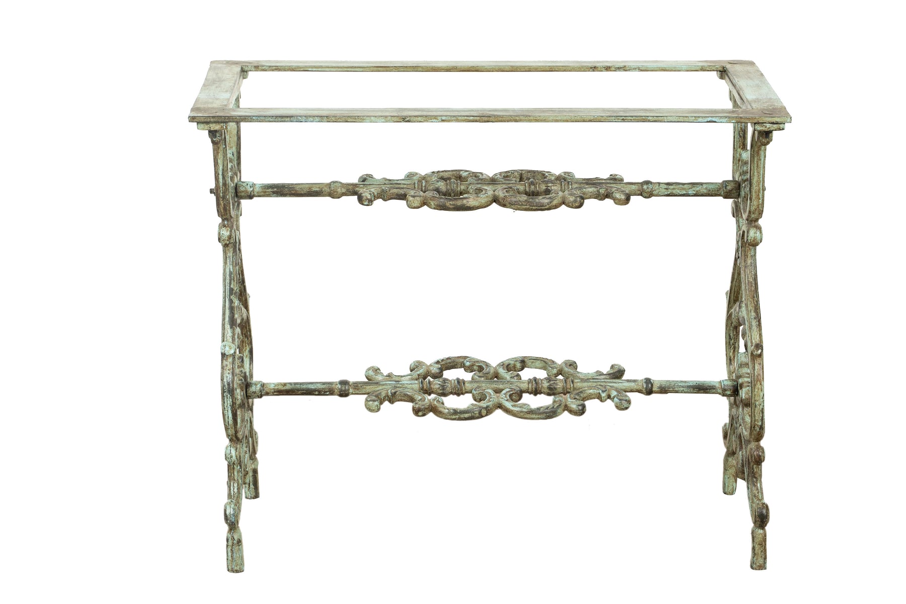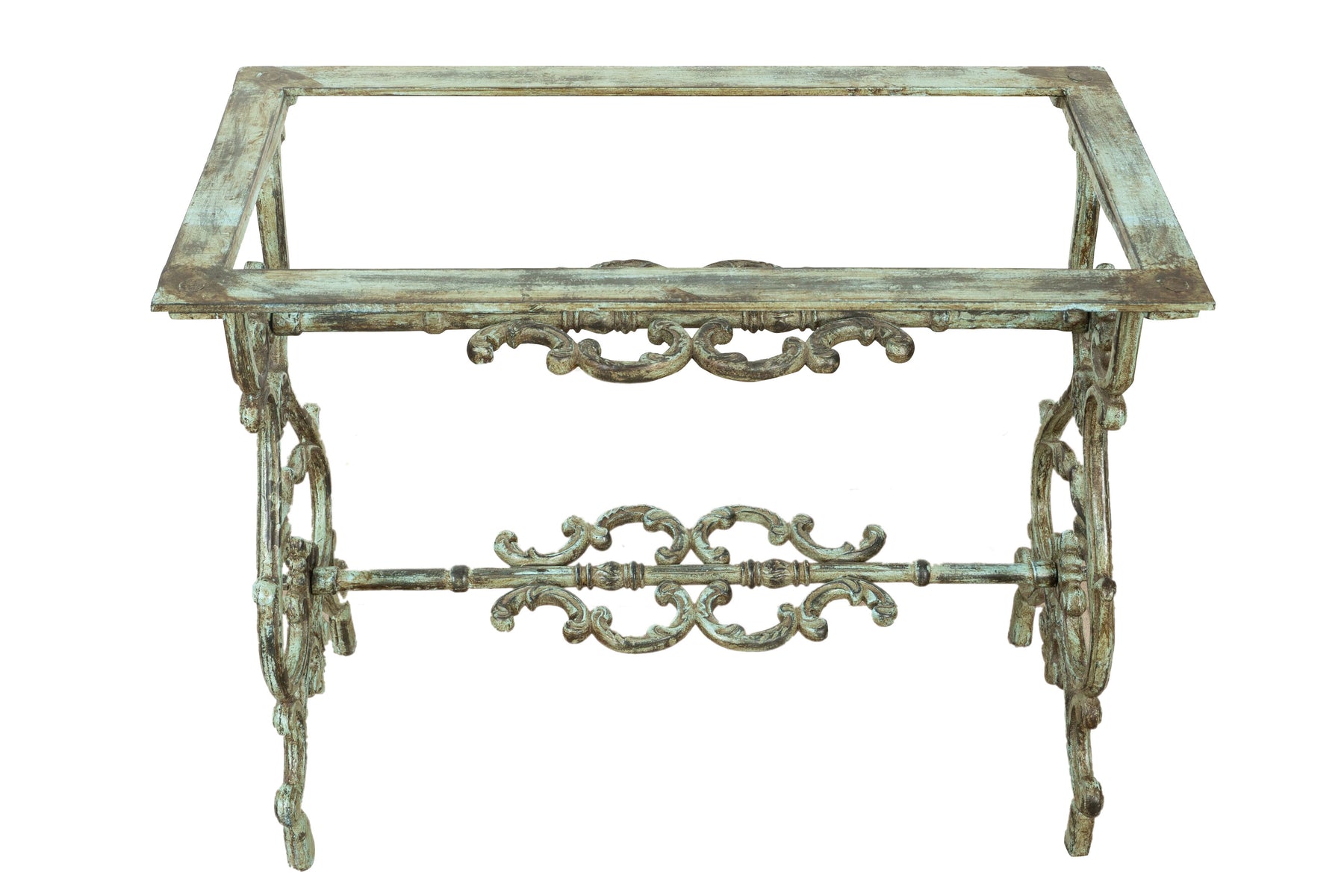 Molto stabile, robusta e pesante base per tavolo in ghisa di dimensioni larghezza 86 cm, profondità 43 cm, altezza 72 cm completamente fatta a mano, con un'accurata finitura completamente realizzata a mano, ottenendo un vero effetto antico.