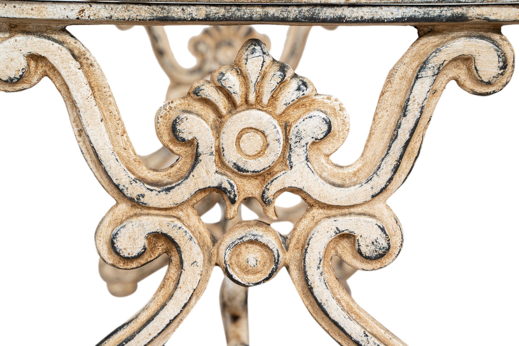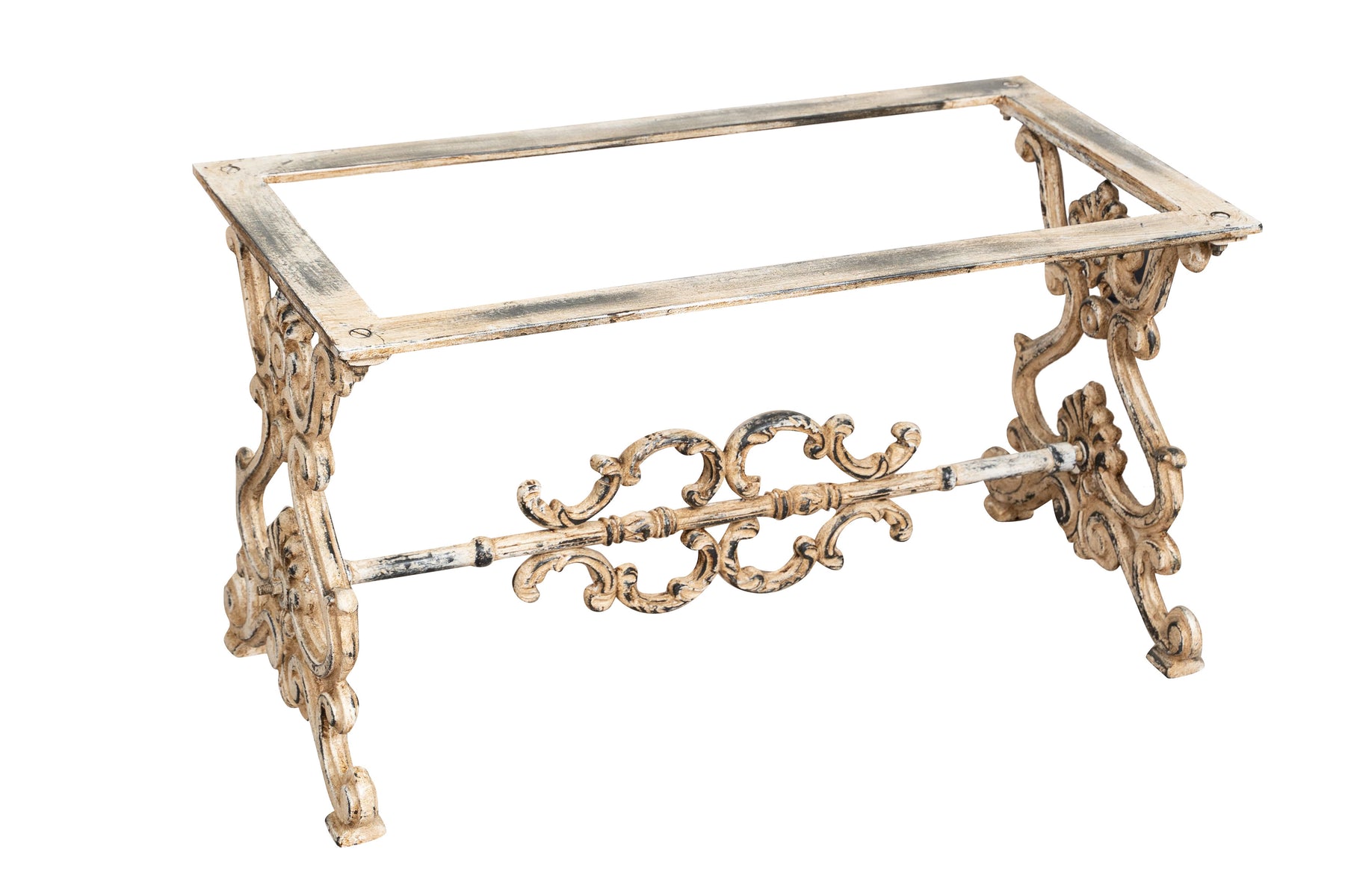 Molto stabile, robusta e pesante base per tavolo in ghisa di dimensioni larghezza 85 cm, profondità 44 cm, altezza 48 cm completamente fatta a mano, con un'accurata finitura completamente realizzata a mano, ottenendo un vero effetto antico.