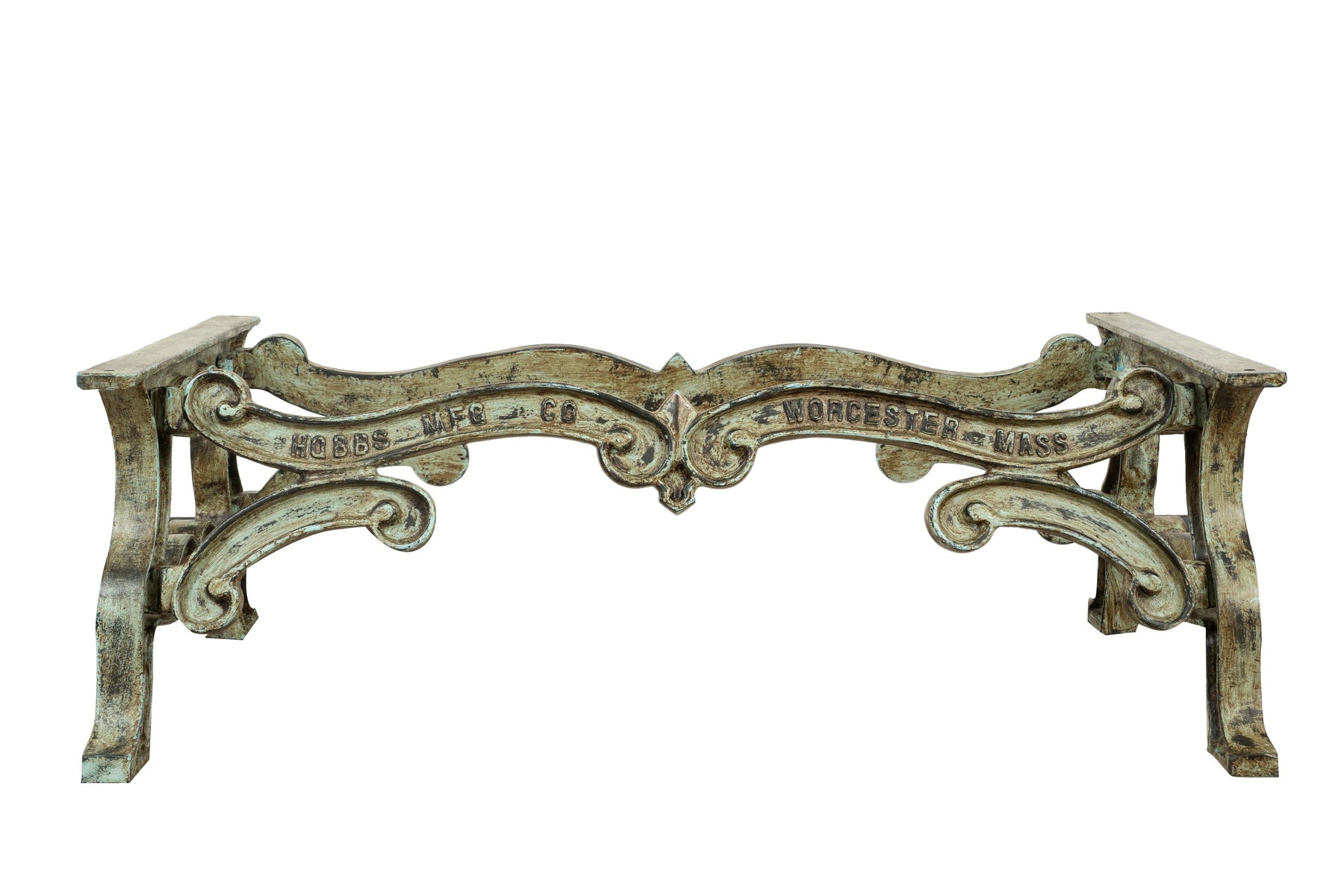 Molto stabile, robusta e pesante base per tavolo in ghisa di dimensioni larghezza 127 cm, profondità 69 cm, altezza 43 cm completamente fatta a mano, con un'accurata finitura completamente realizzata a mano, ottenendo un vero effetto antico.