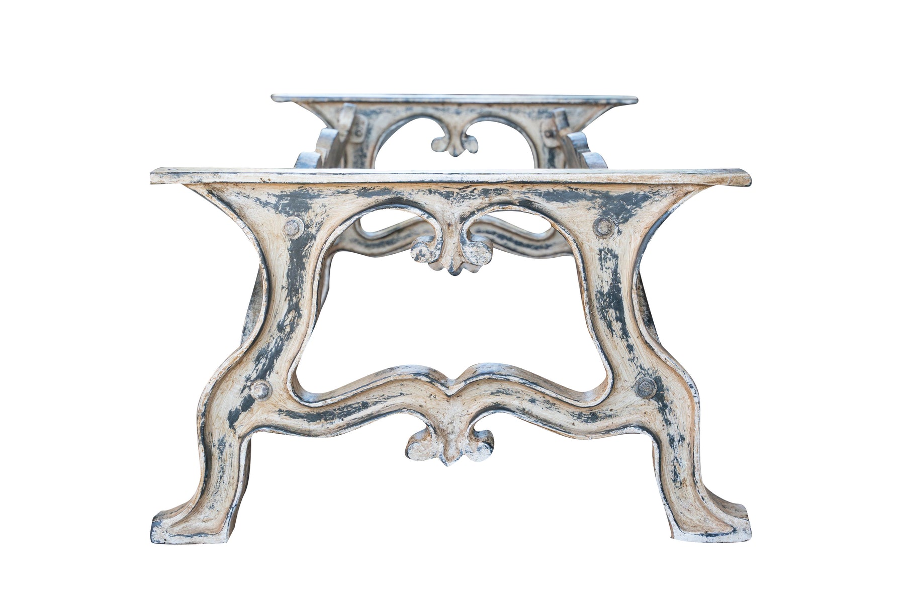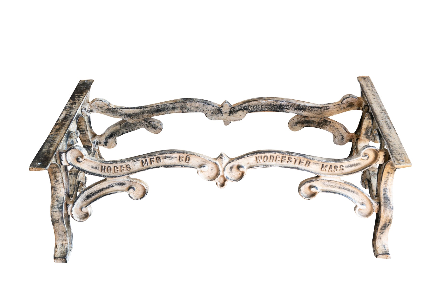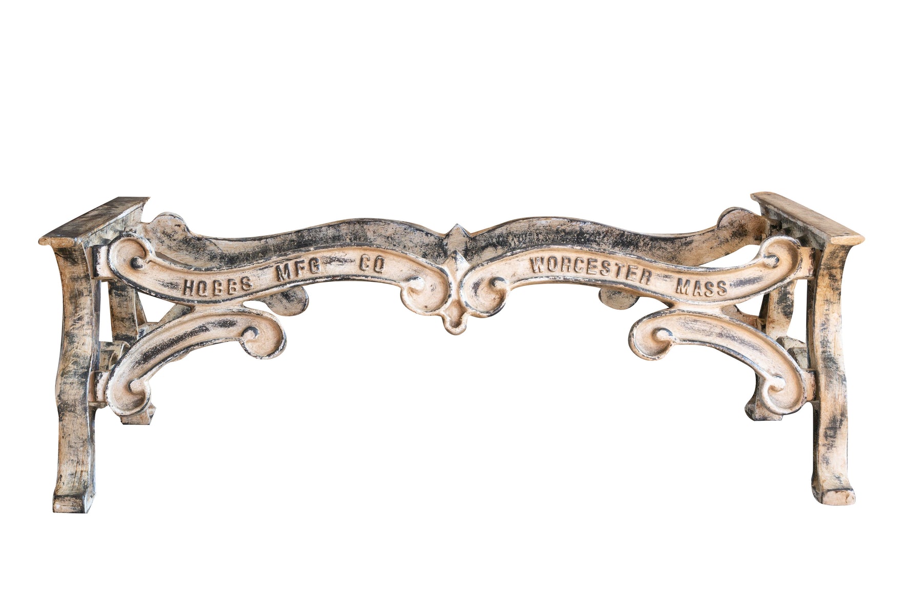 Molto stabile, robusta e pesante base per tavolo in ghisa di dimensioni larghezza 127 cm, profondità 69 cm, altezza 43 cm completamente fatta a mano, con un'accurata finitura completamente realizzata a mano, ottenendo un vero effetto antico.