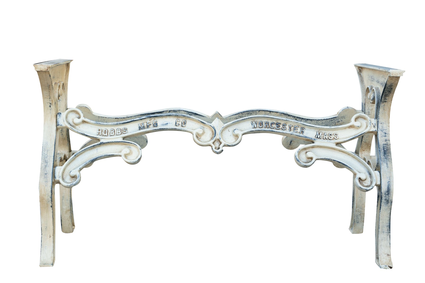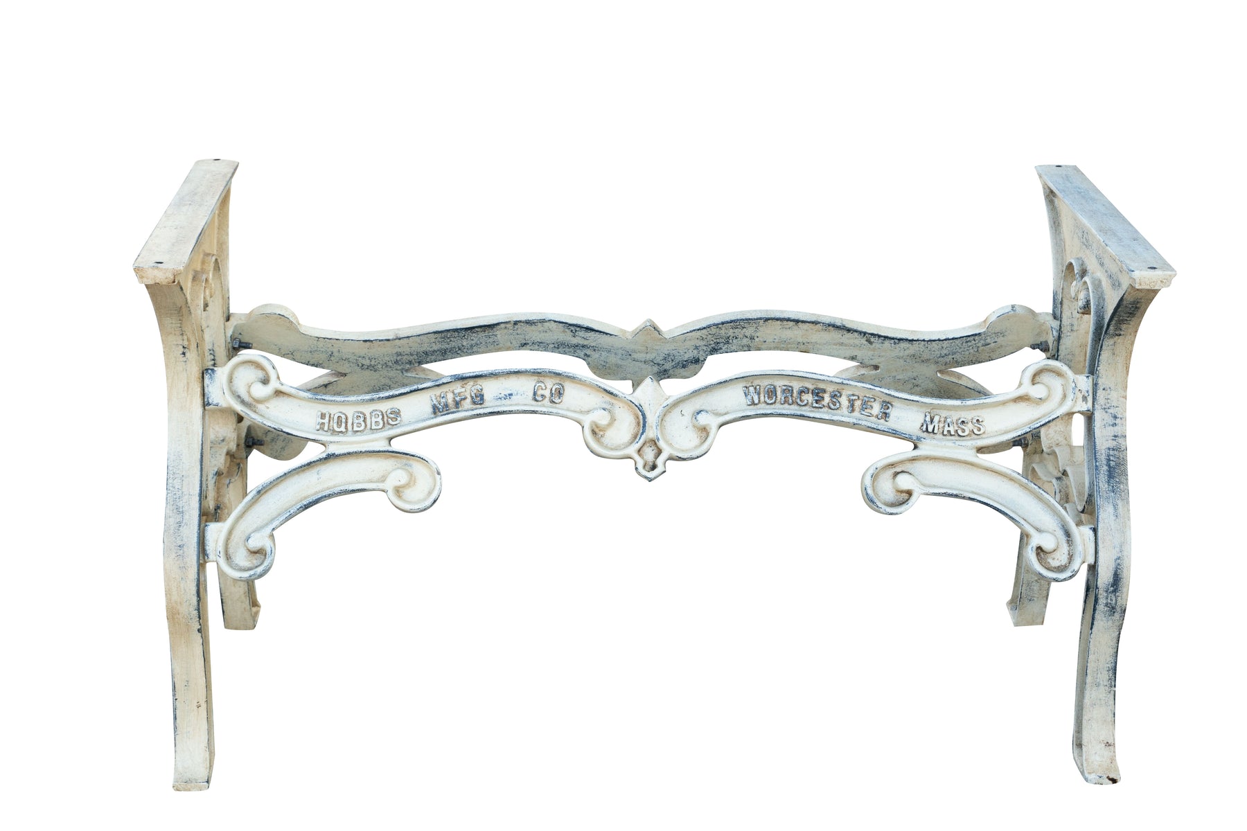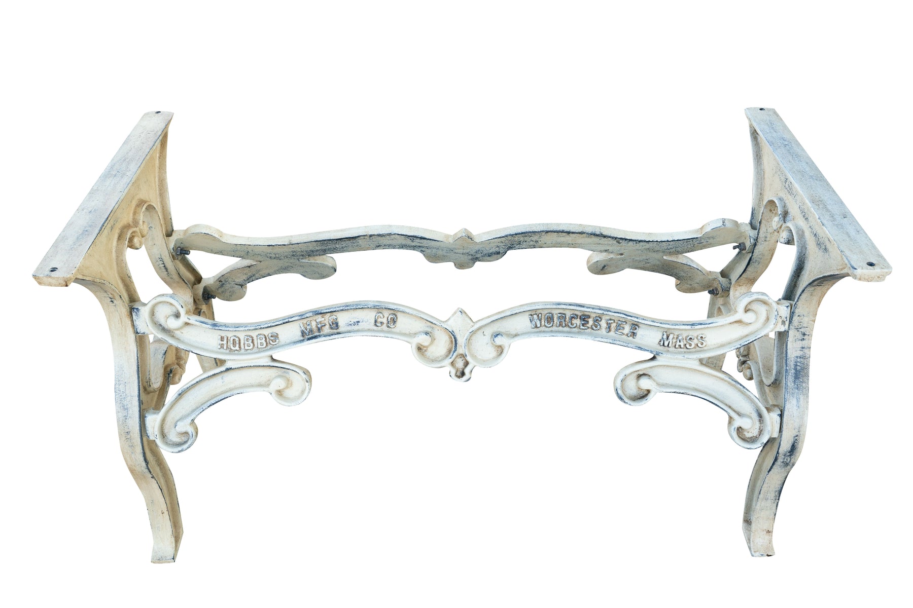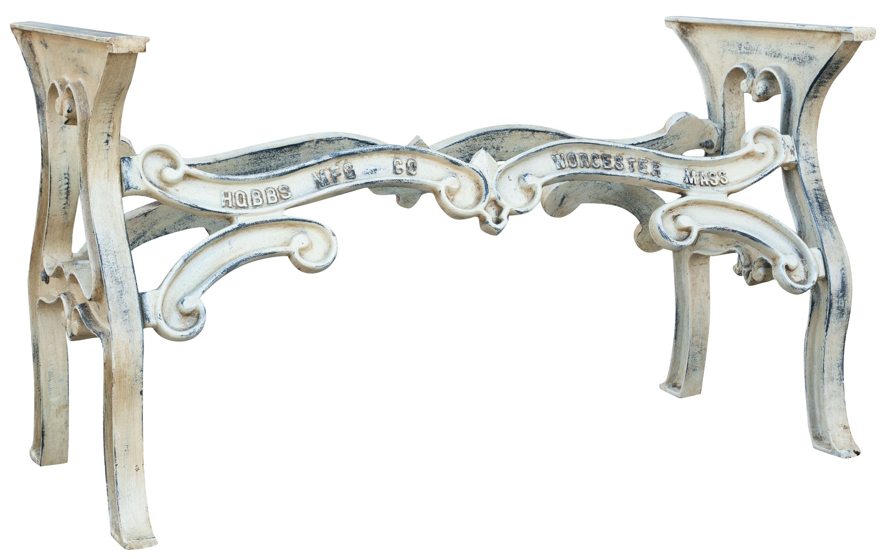 La base in ghisa, struttura portante di notevoli dimensioni, può supportare piani in pietra e marmo di grandi dimensioni, anche molto pesanti. La base è una copia fedele di un banco da lavoro di una vetreria inglese, chiusa nel 1860.