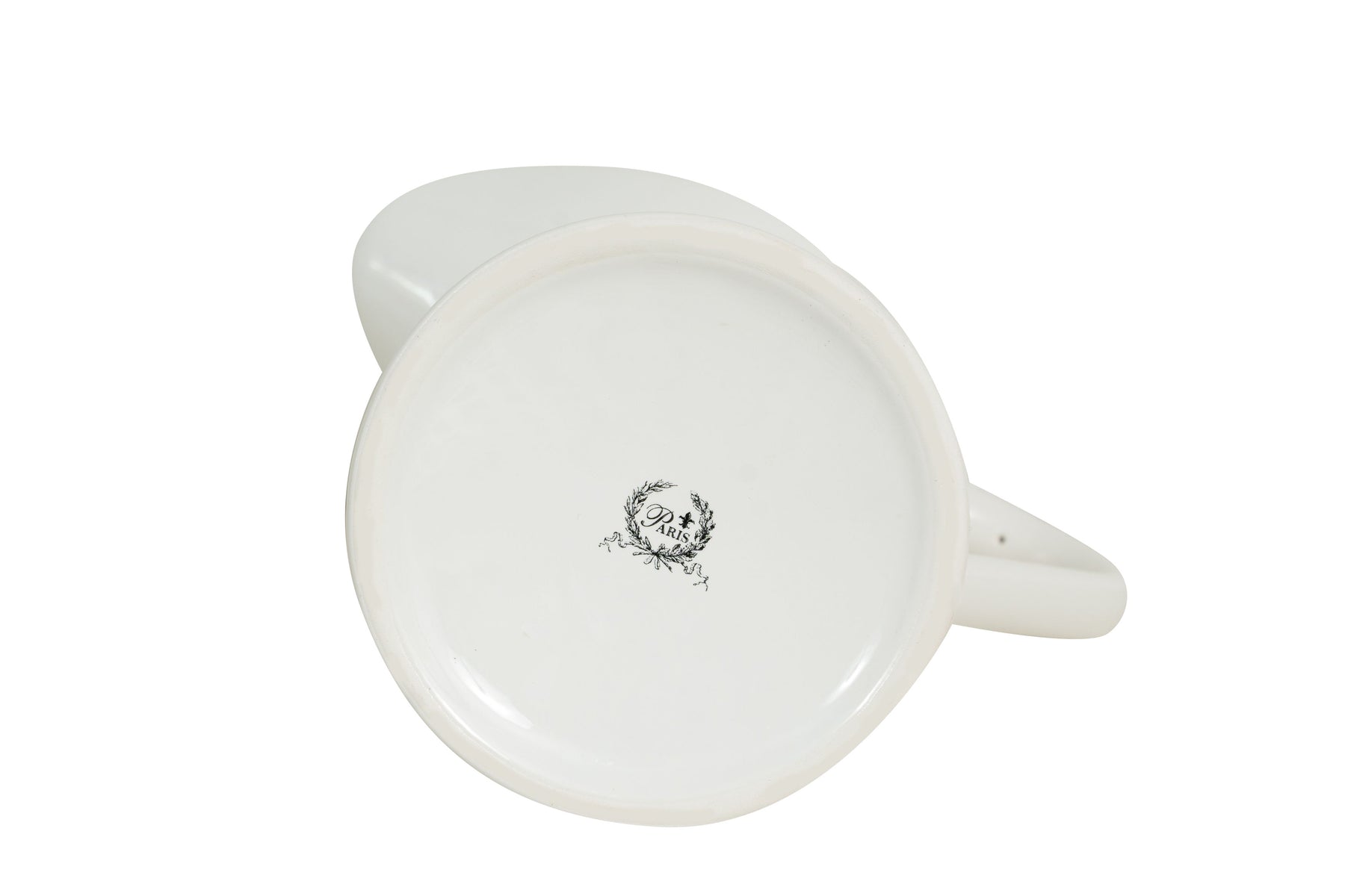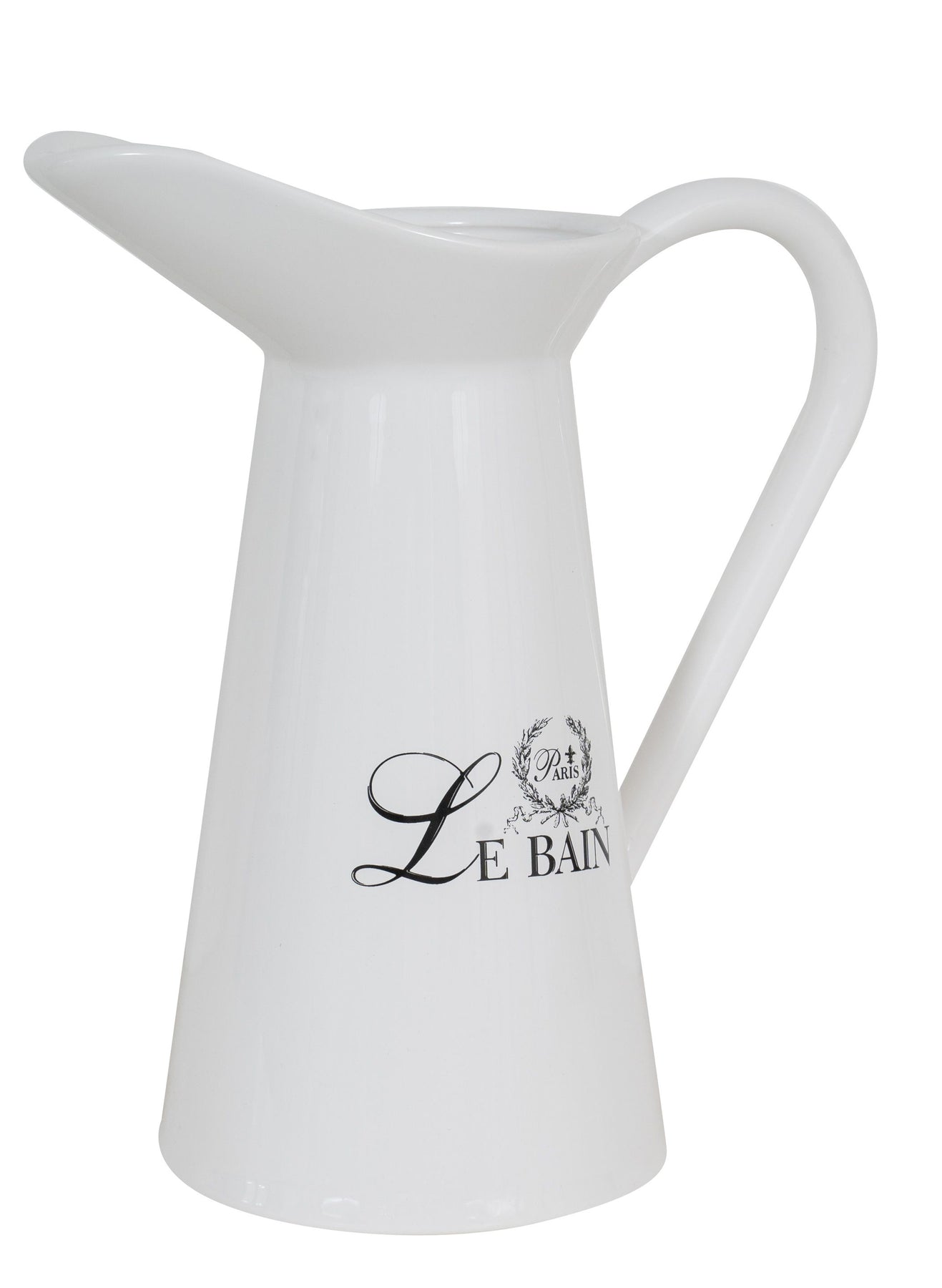 | Brocca di dimensioni larghezza 22 cm, profondità 14 cm, altezza 25 cm realizzata in porcellana bianca con decoro. Tutte le misure si riferiscono all'ingombro massimo dell'articolo |