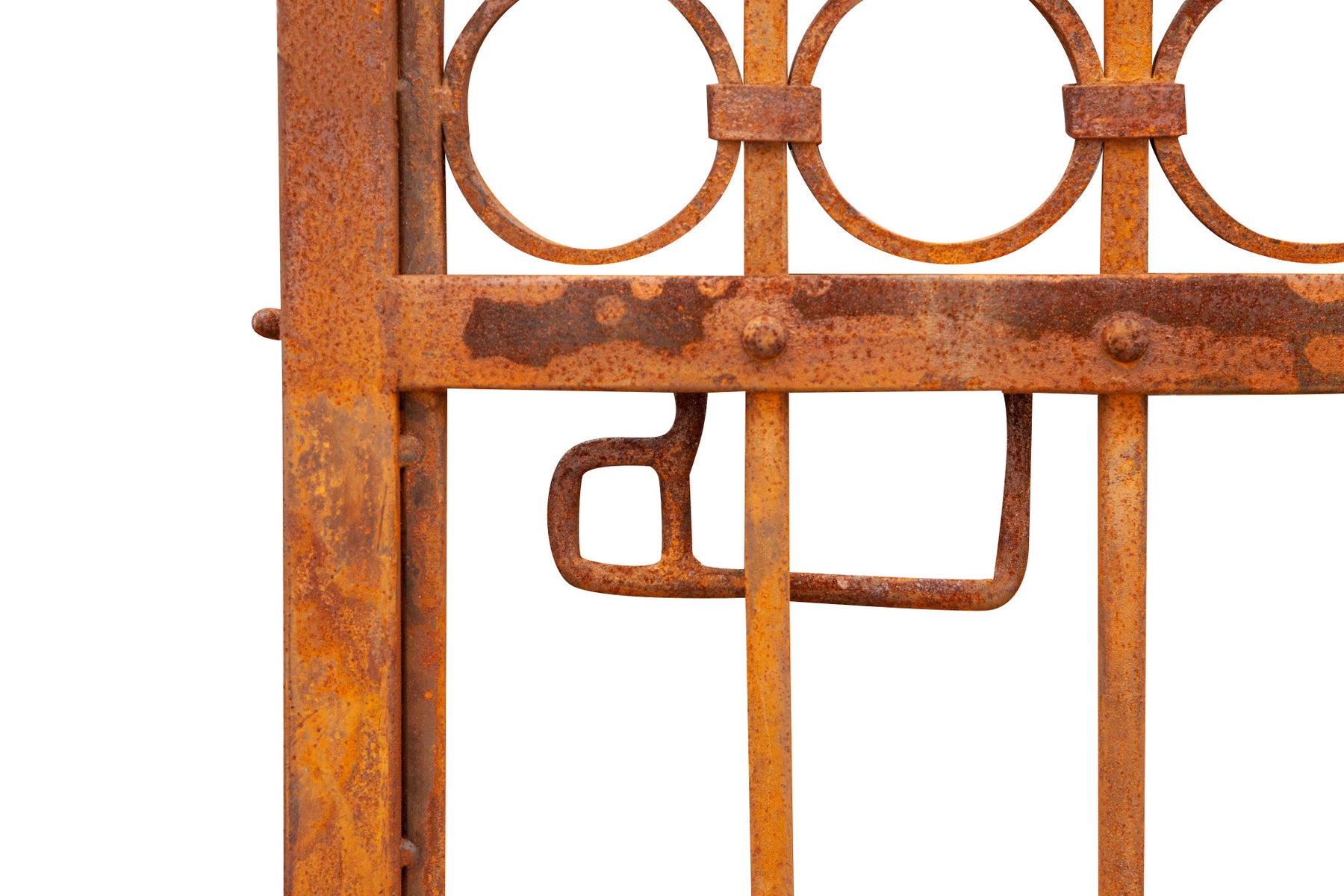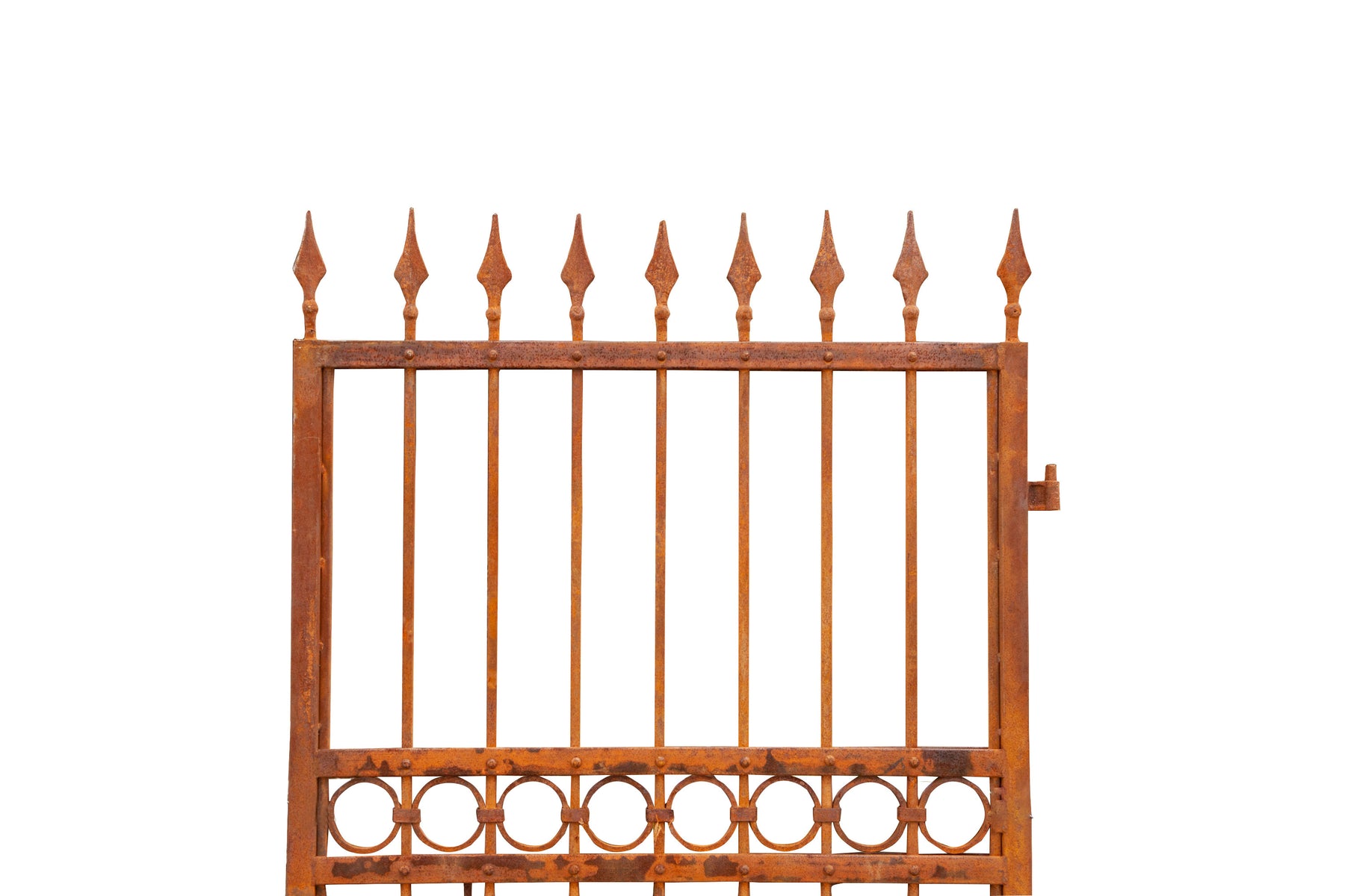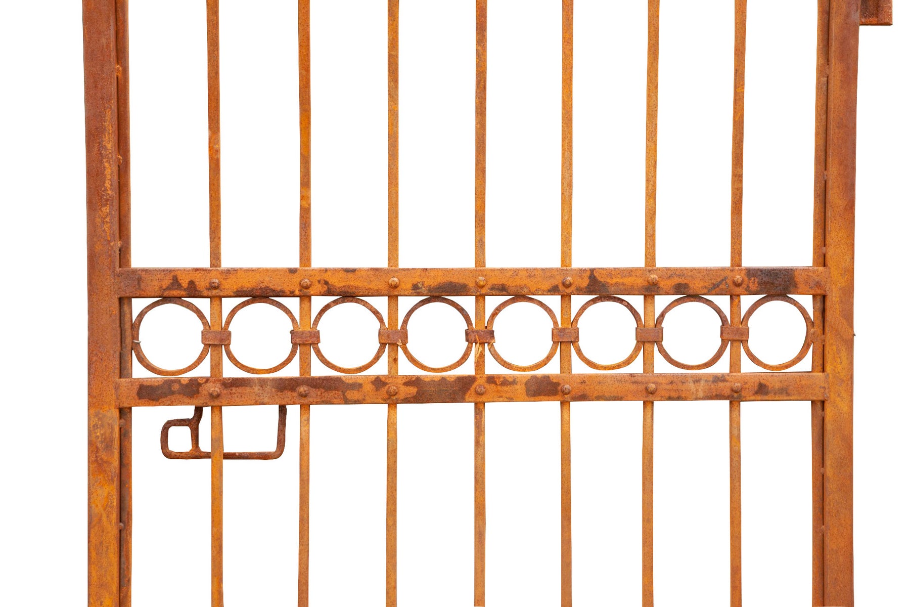 Cancello in ferro forgiato a mano non verniciato di dimensioni lunghezza 107 cm, profondità 8 cm, altezza 200 cm. Il ferro è lasciato al naturale. Il disegno riprende le forme degli antichi e tradizionali cancelli. Vastissimo il catalogo di articoli di arredo giardino, idee di arredo esterno, di articoli per le decorazioni giardino, di arredo interni per arredare casa e decorare casa, di idee per la casa e di mobili in legno per l'arredamento cucina, l'arredamento soggiorno, l'arredo bagno, l'arredamento delle camere da letto, l'arredo ufficio. Tutte le misure si riferiscono all'ingombro massimo dell'articolo.