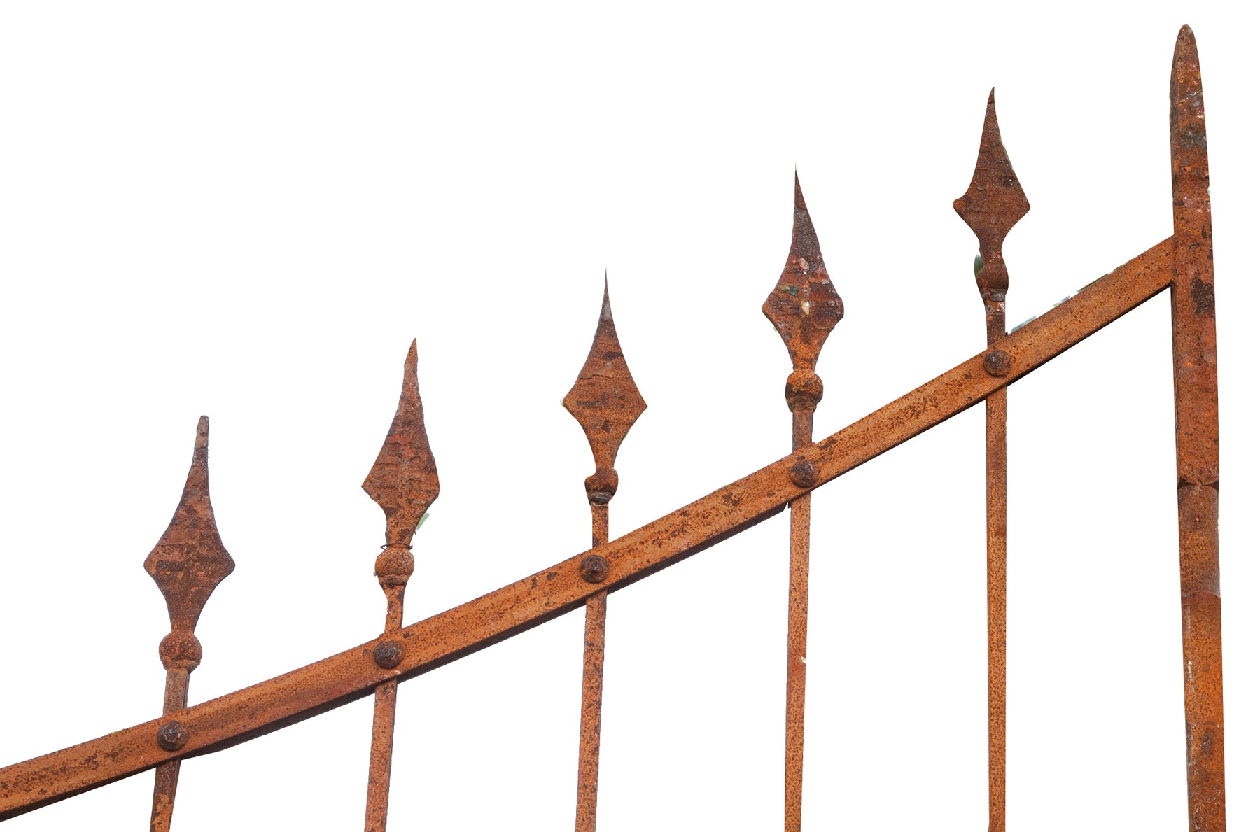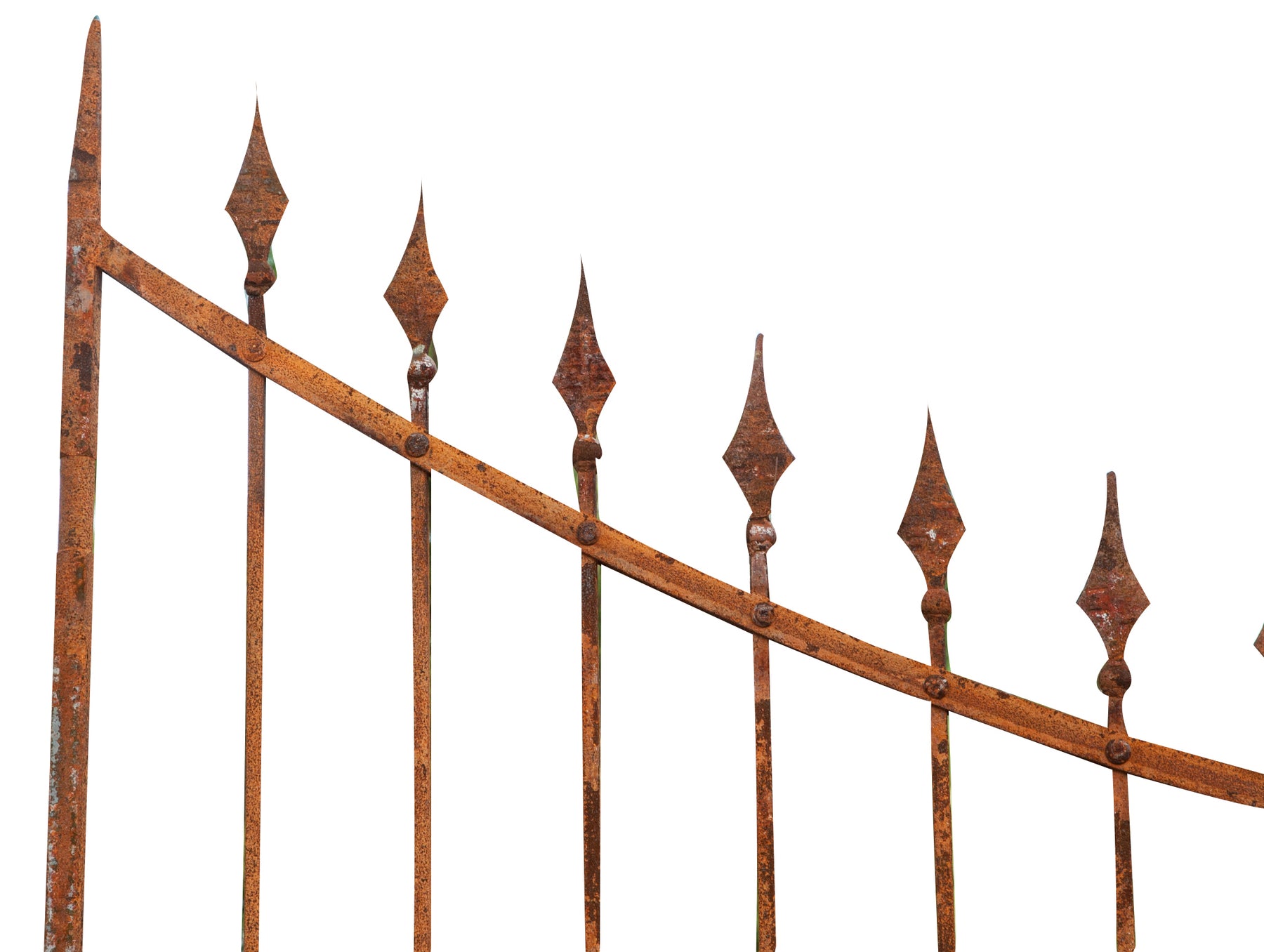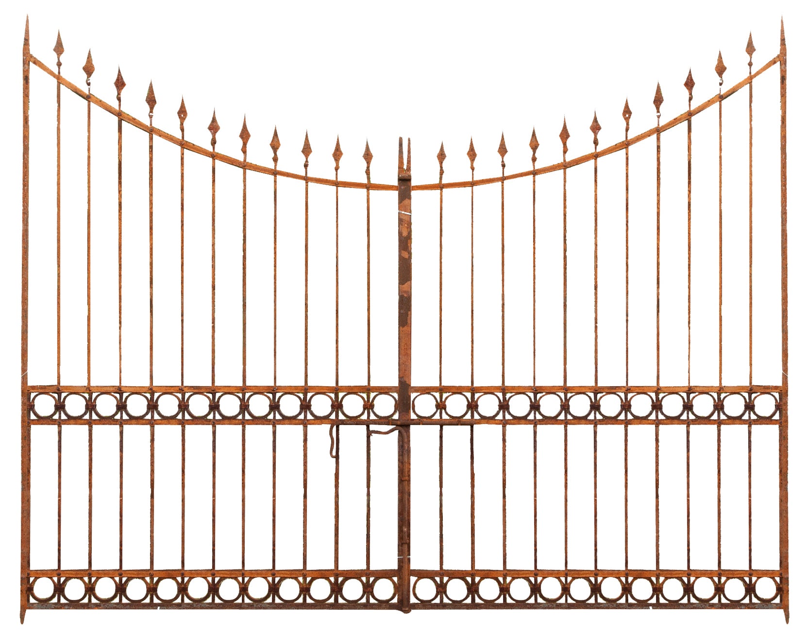 Cancello in ferro pieno interamente forgiato a mano. Non trattato, lasciato al naturale. Il disegno riprende le forme degli antichi e tradizionali cancelli. Made in Italy Misura: L345xPR10xH270 cm.