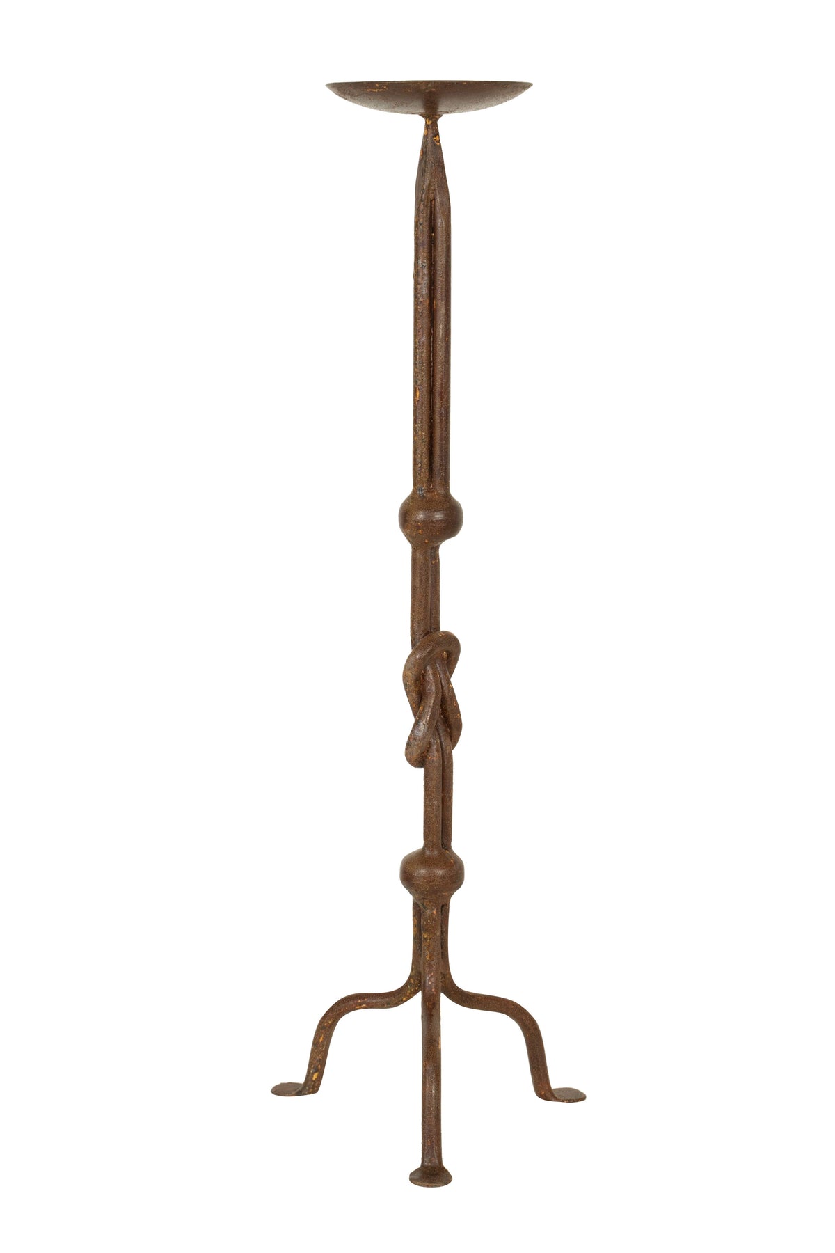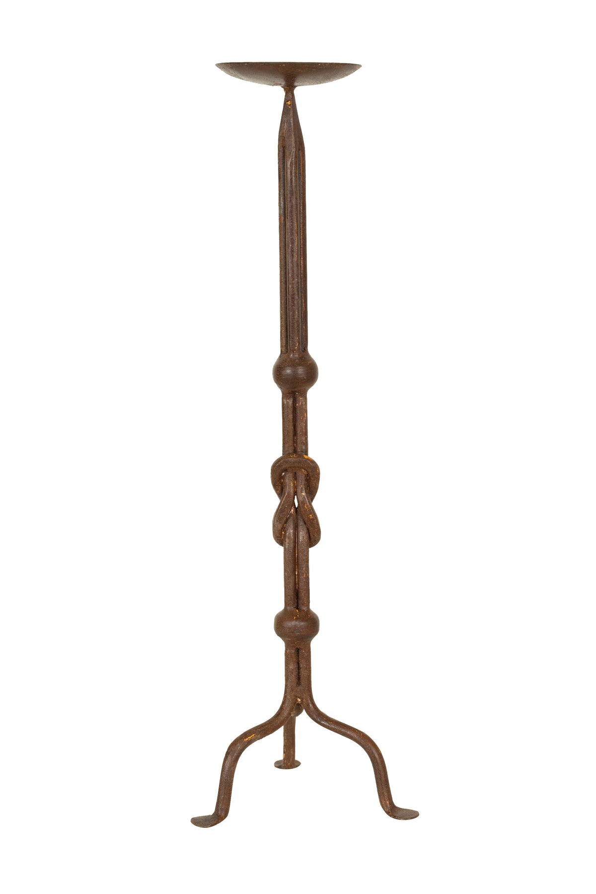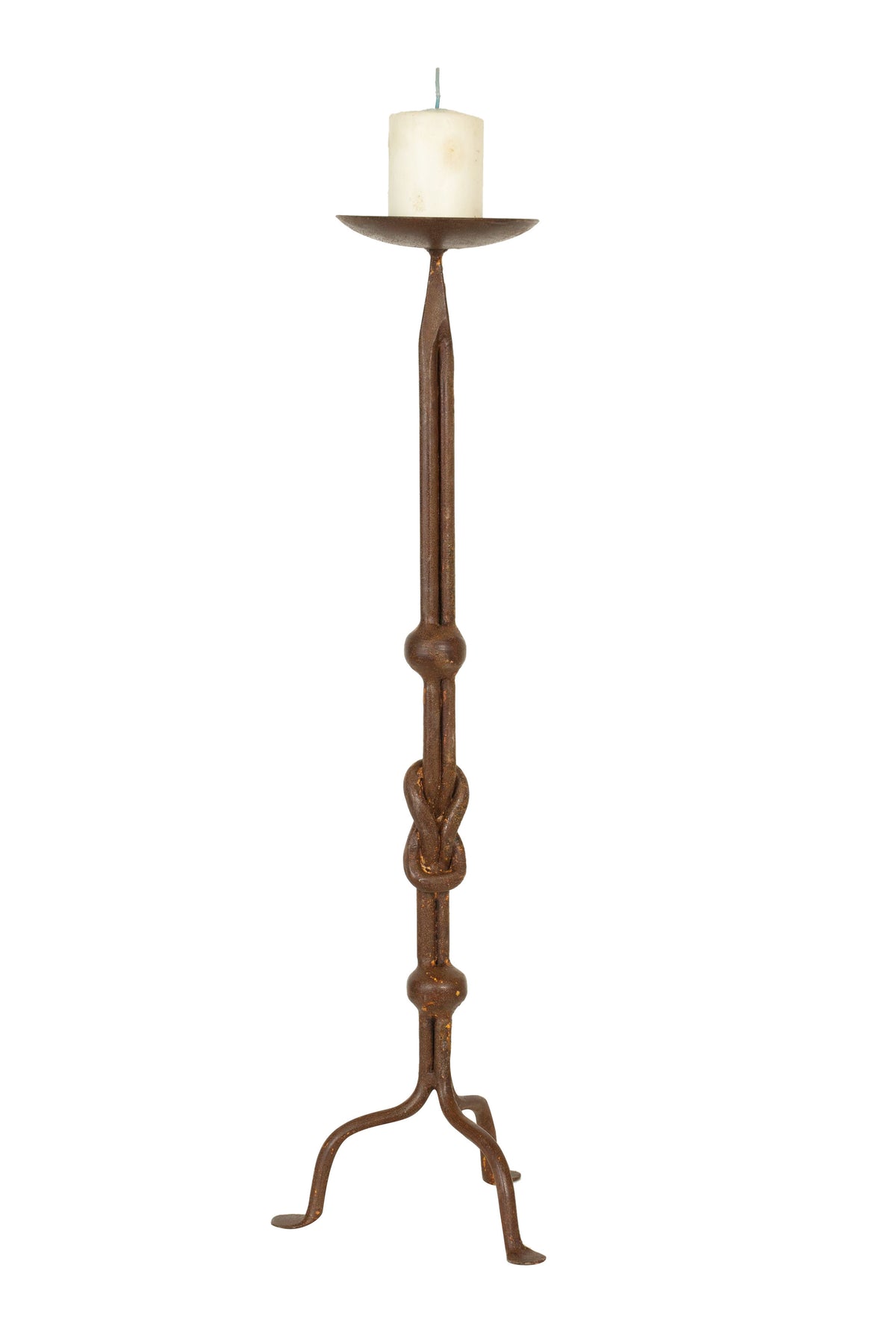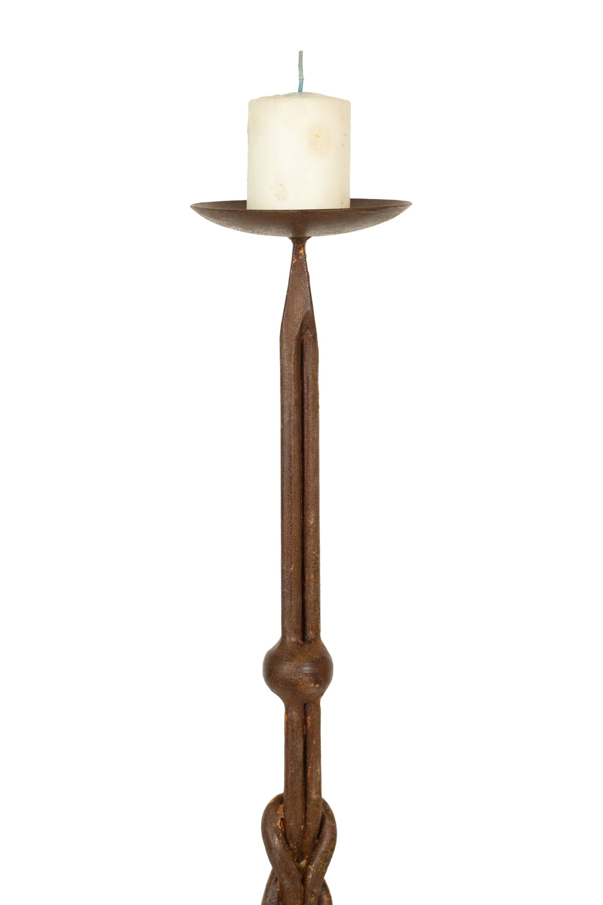 Candeliere L19XPR19XH64 cm in ferro battuto lavorato a mano, finitura nero. Struttura stabile e robusta.