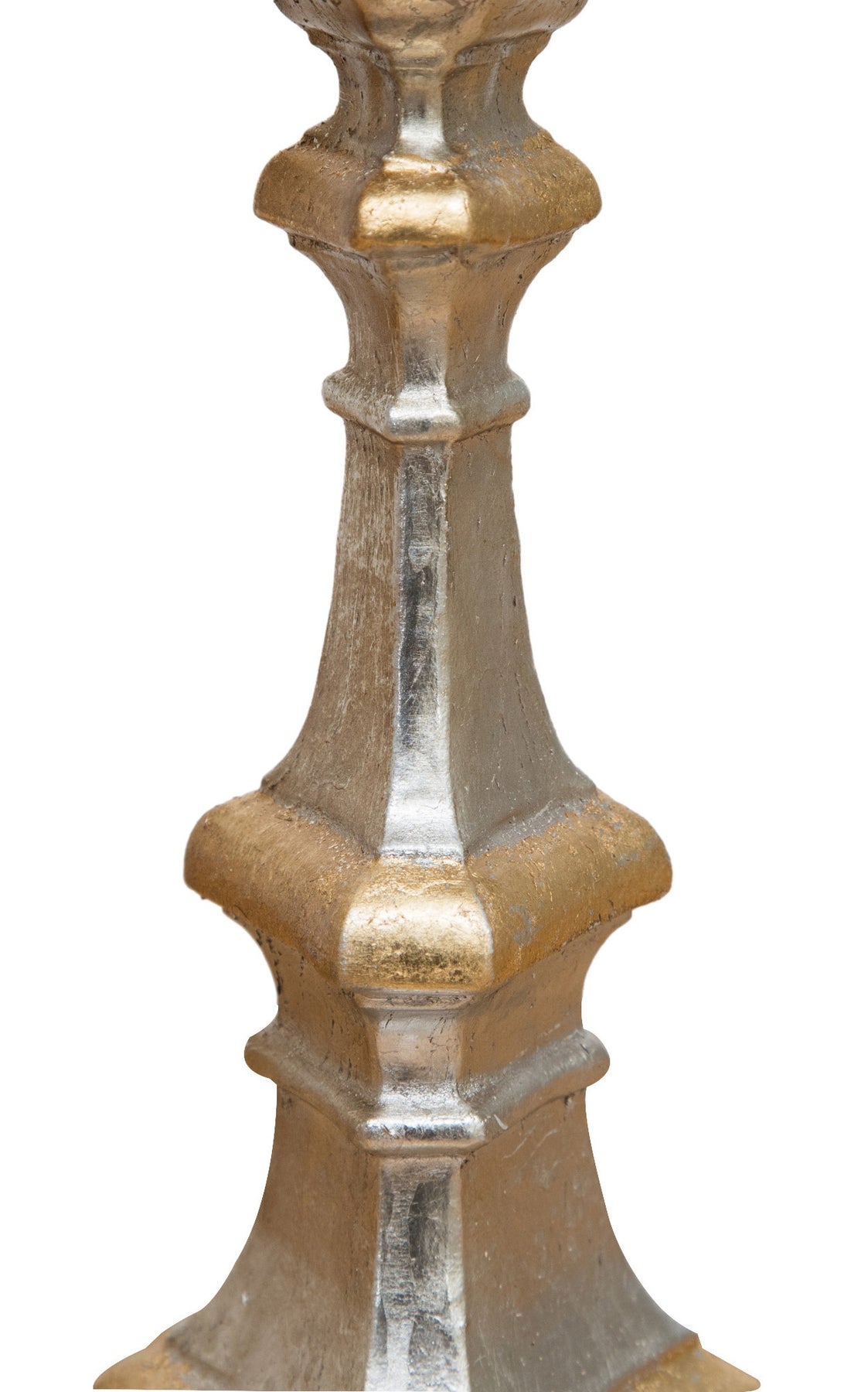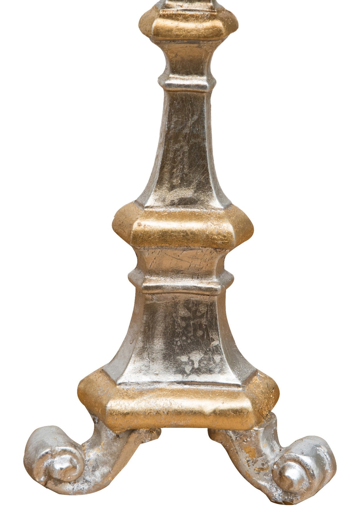 Candeliere L13XPR13XH29 cm realizzata in legno finitura foglia argento e oro. Accuratamente lavorato e rifinito da vecchi artigiani Fiorentini. Ideale per arricchire e decorare qualsiasi ambiente. Articolo interamente realizzato in Italia.