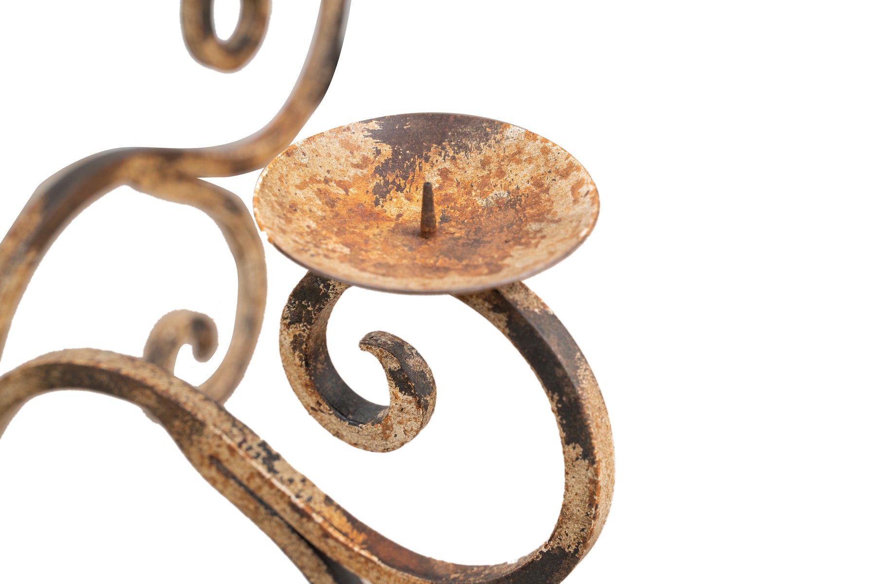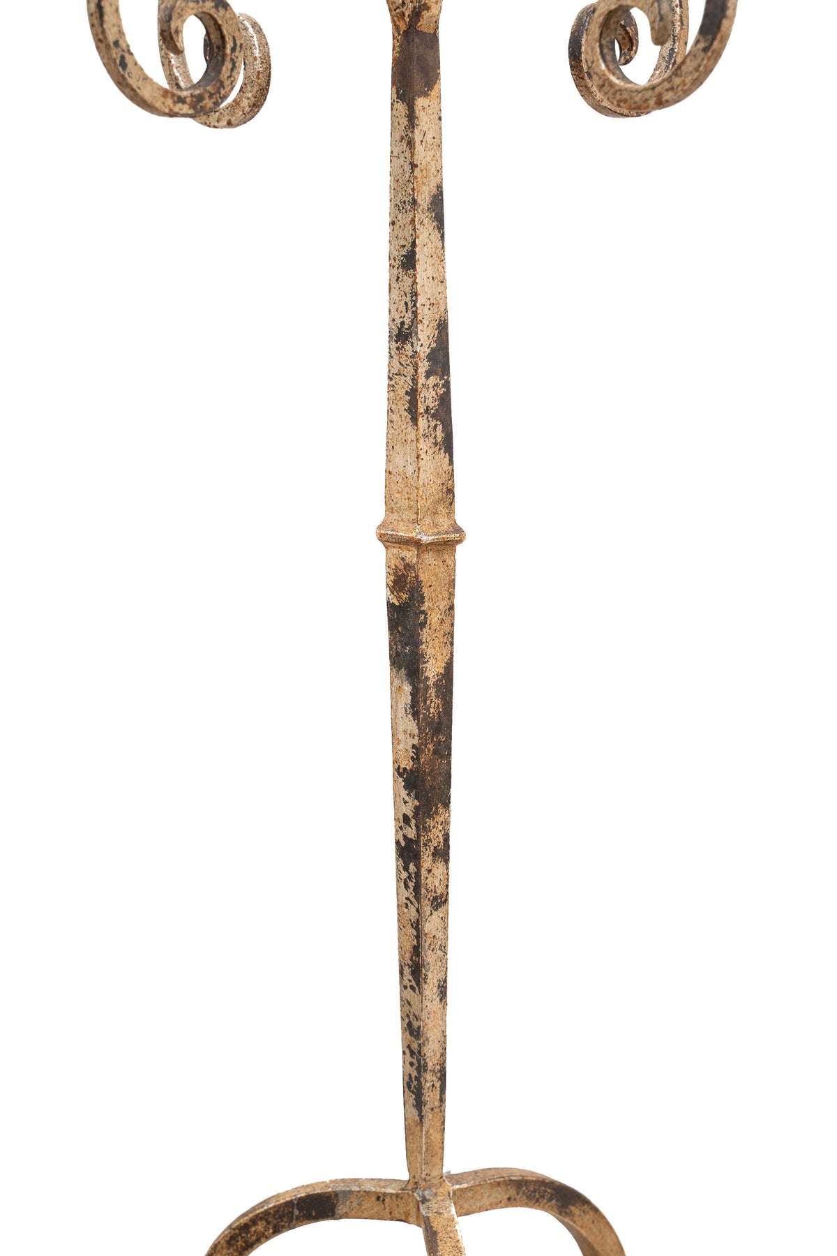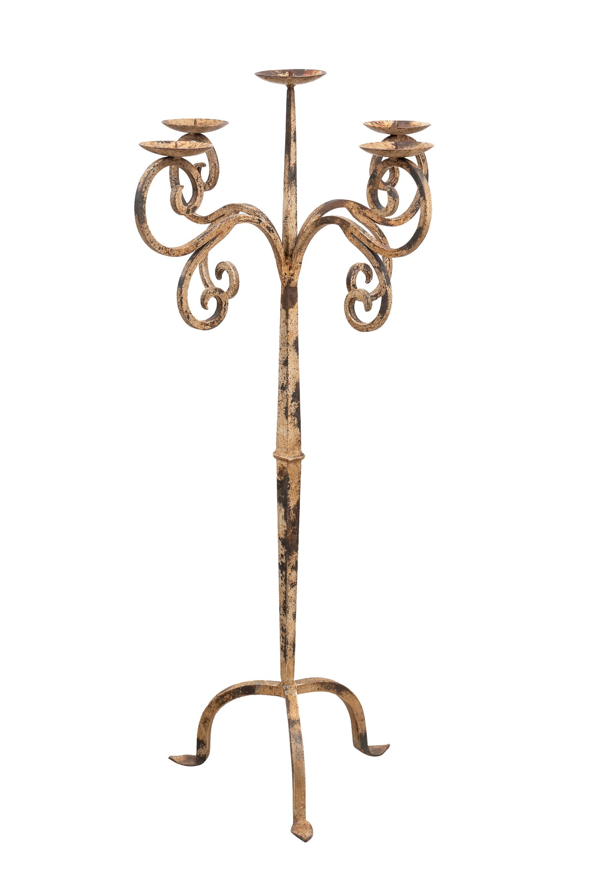 | Candeliere L49XPR49XH94 cm a piantana in ferro battuto finitura bianca anticata. Tutte le misure si riferiscono all'ingombro massimo dell'articolo. |