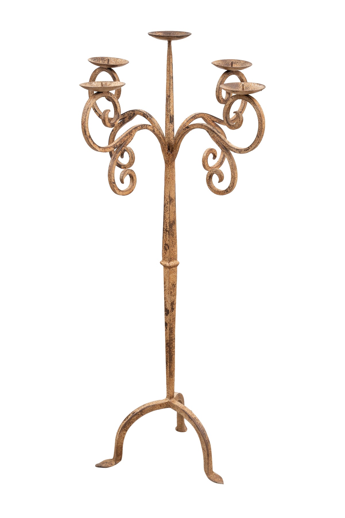 | Candeliere L49XPR49XH94 cm a piantana in ferro battuto finitura crema anticata. Tutte le misure si riferiscono all'ingombro massimo dell'articolo. |