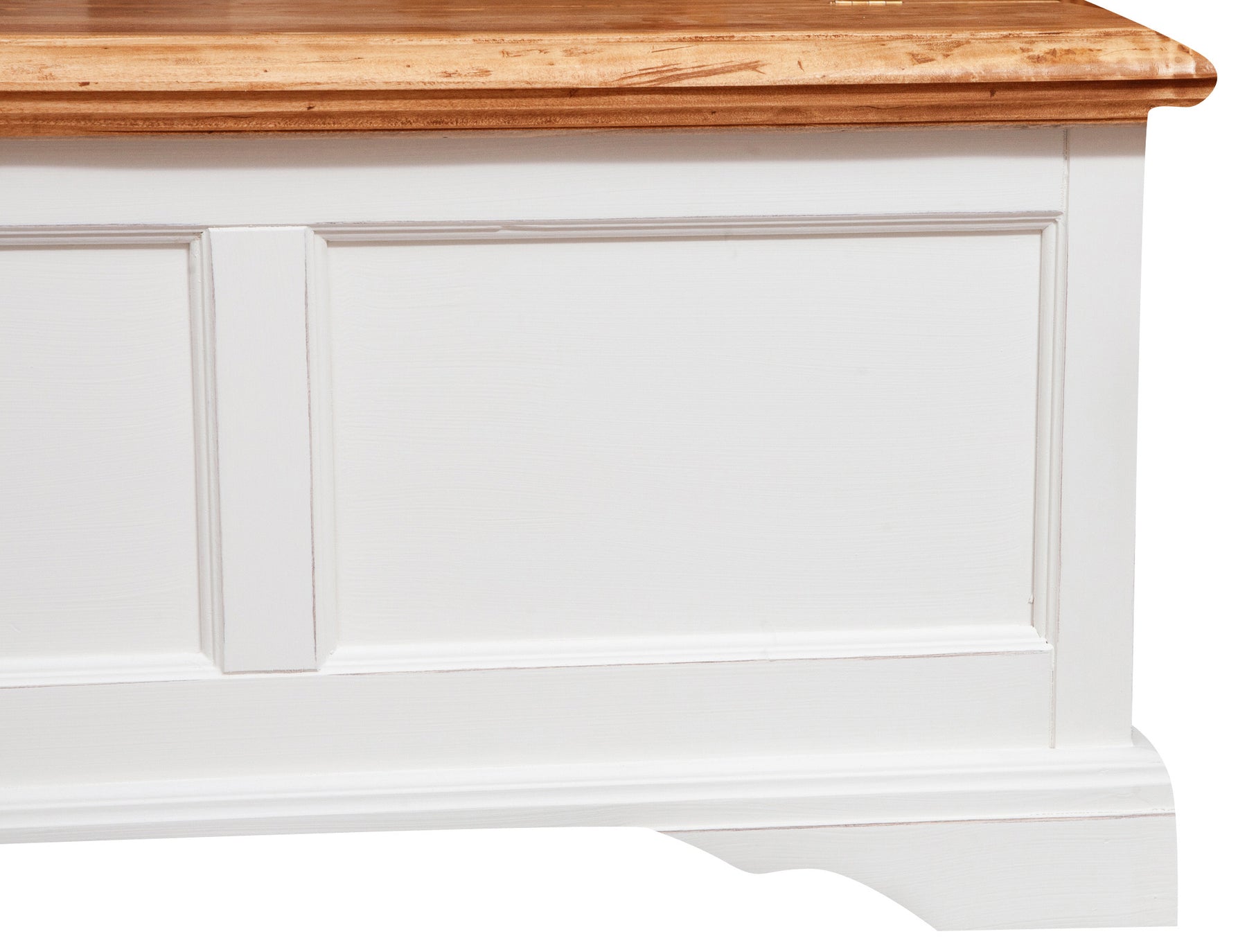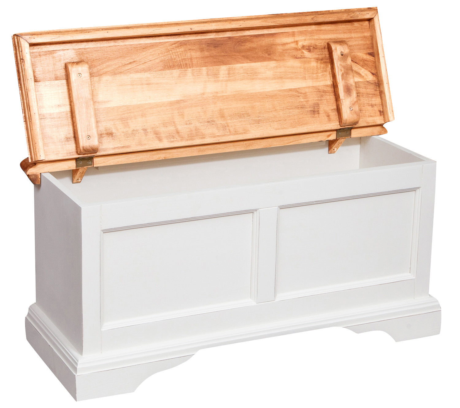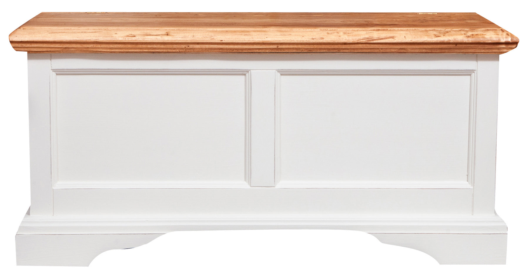 Cassapanca realizzata in legno massello di tiglio di dimensioni L100xPR38xH48 cm. Robusta e resistente nel tempo grazie alla sapiente produzione artigianale Made in Italy, si propone come pratico e capiente contenitore multiuso ideale per arredare i vostri spazi con un tocco di intramontabile fascino Country.