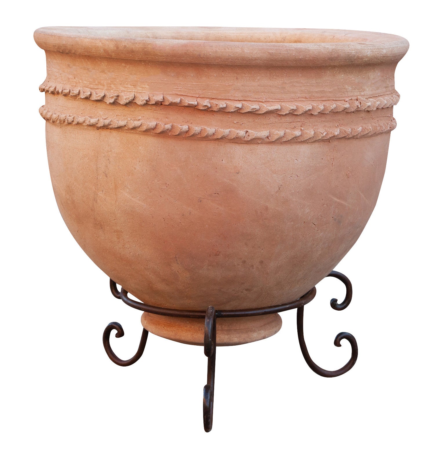 | Vaso fatto a mano e cotto a legna come nell'antichità di dimensioni diametro 65 cm, altezza 55 cm. Si presta ad essere usato anche come orcio da esterno per piante e fiori o come anfora decorativa da interno. Originariamente usati come contenitori per datteri. Tra le tradizioni artigiane del Marocco un posto di riguardo è occupato dalla produzione di vasi e anfore in terracotta. I metodi di lavorazione sono tramandati di generazione in generazione e si sono conservati nei secoli. Trattandosi di articoli fatti a mano, differendo misure e tonalità di colore, ogni articolo è un pezzo unico. |