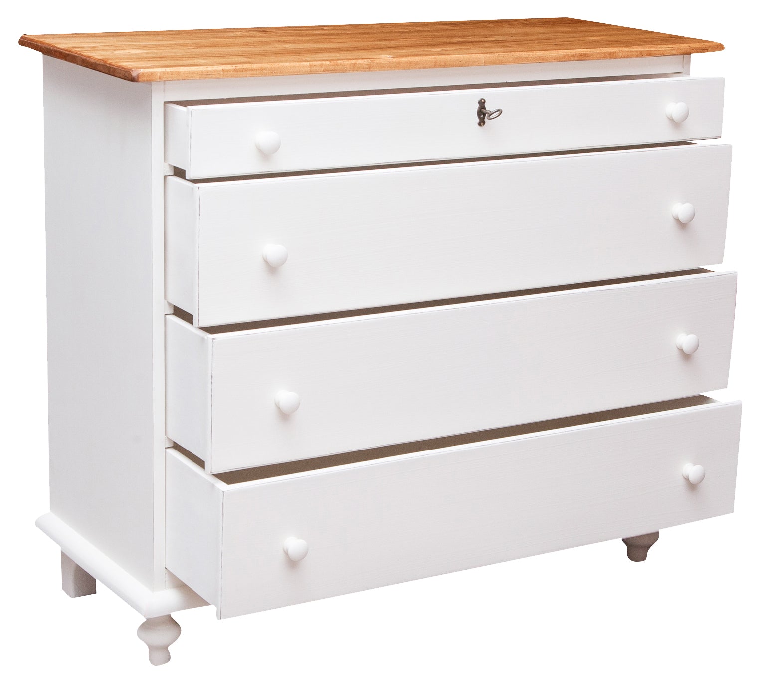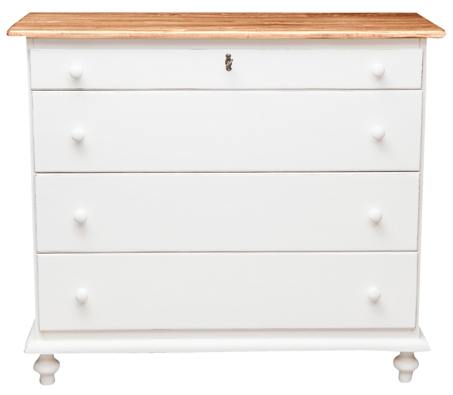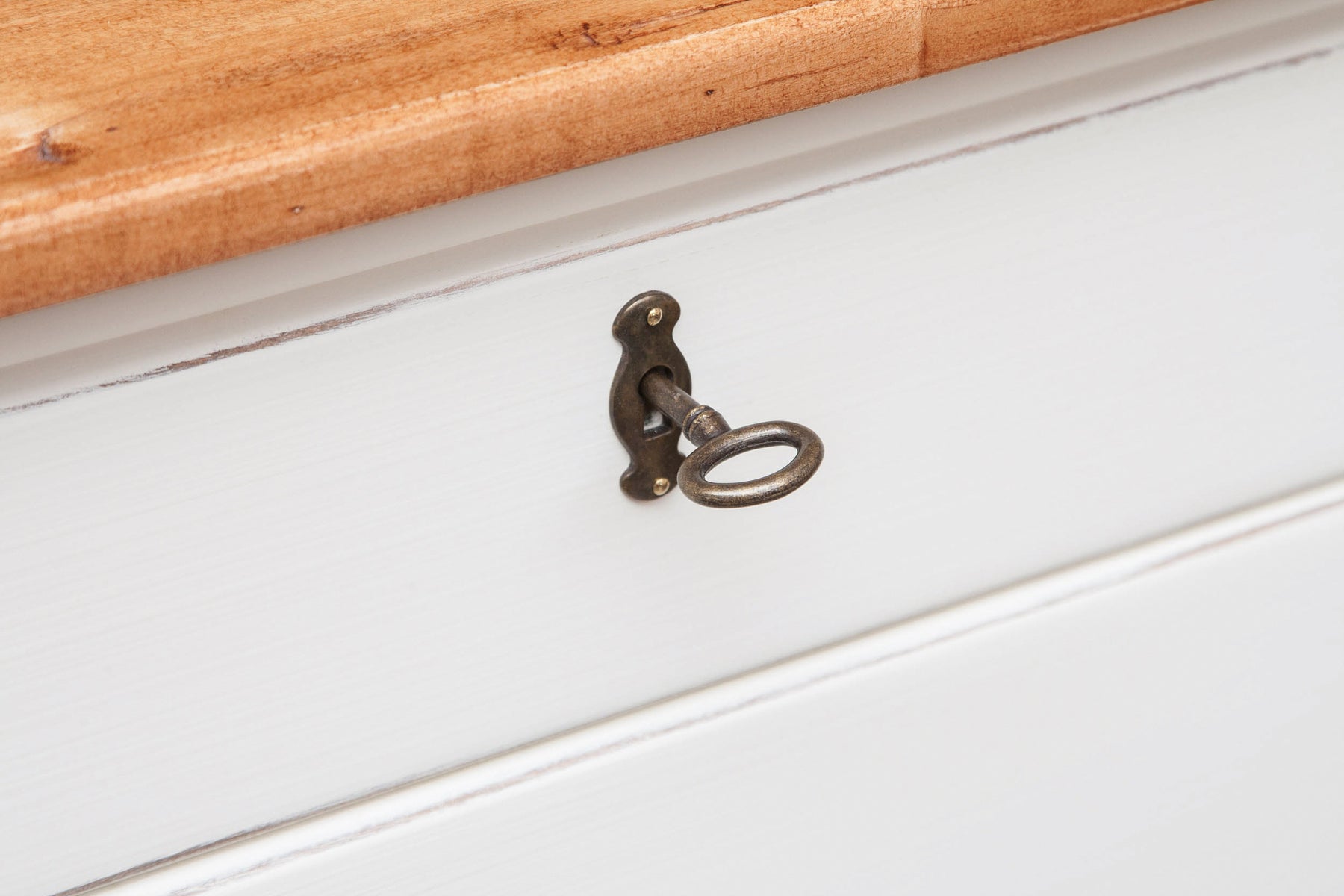 Biscottini Comò Country in legno massello di tiglio struttura bianca anticata piano finitura naturale L114xPR49xH99 cm. Made in Italy