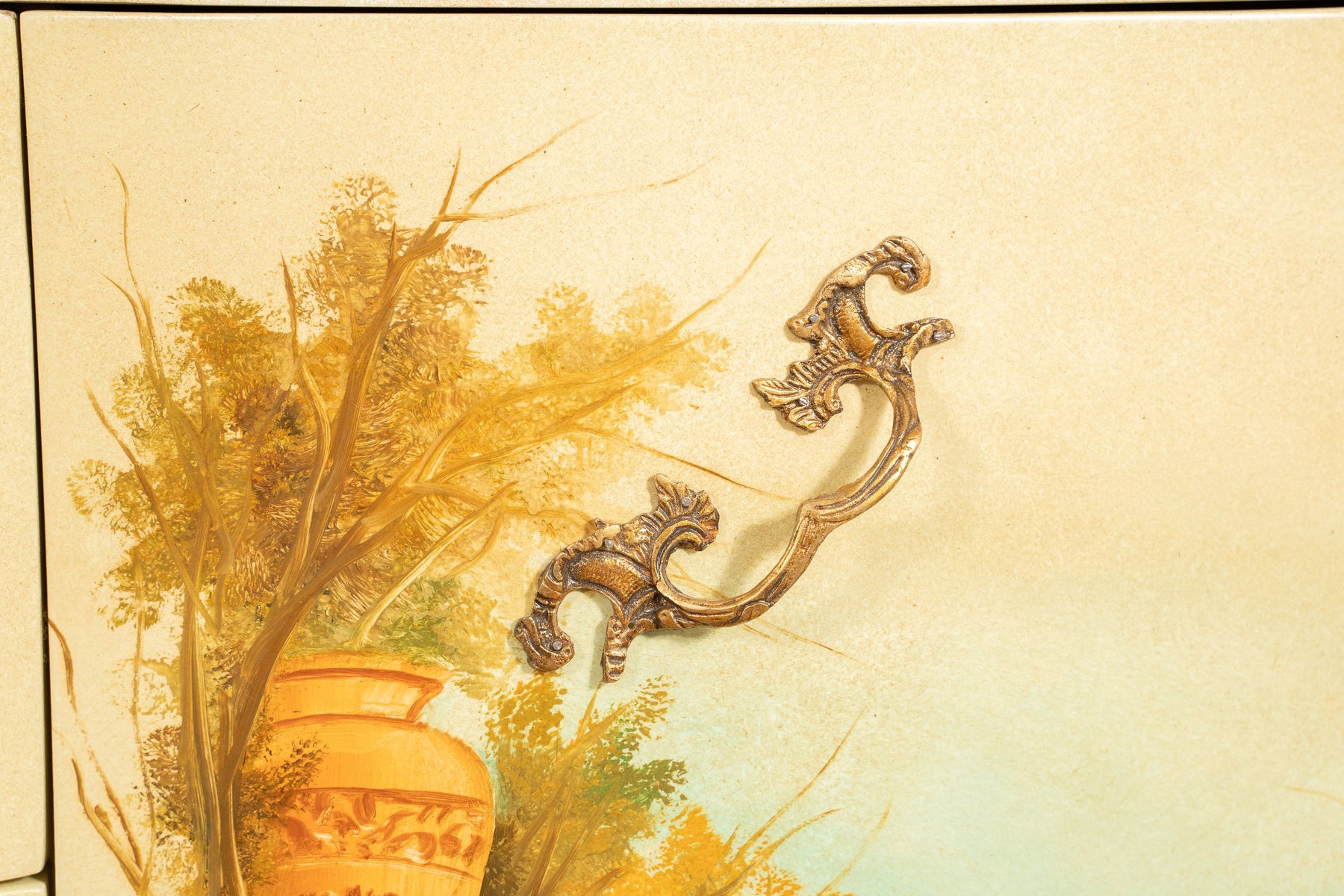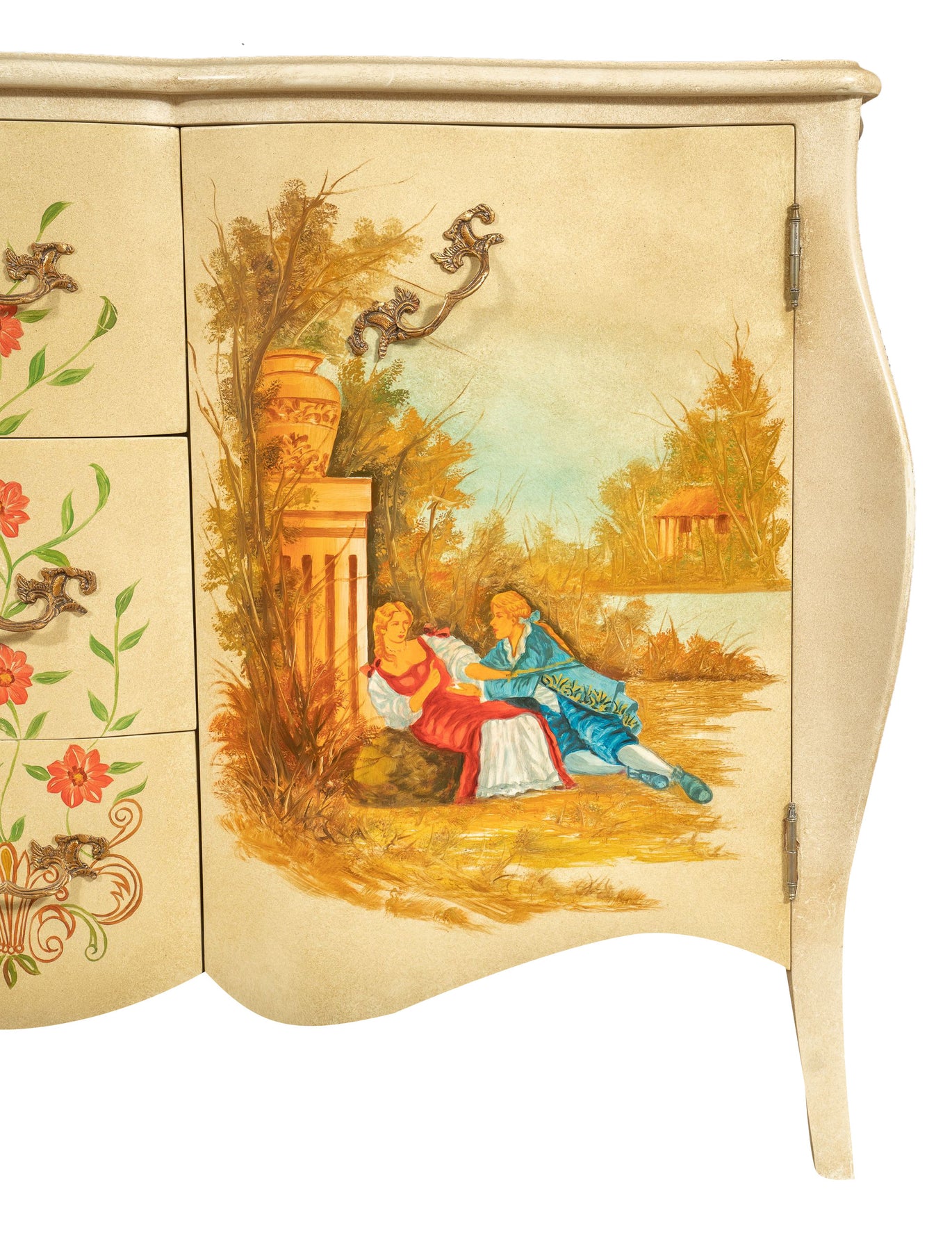 | Elegante e raffinato comò a due ante realizzato in legno con decorazione campestre. Le sue dimensioni sono lunghezza 155 cm, profondità 54 cm, altezza 91 cm. Si tratta di un pezzo unico che può rendere l'ambiente più affascinante. Per gli amanti dell'arredamento country, shabby e per chi in generale ama arredare casa con rusticità, Biscottini propone una vastissima gamma di articoli da arredo interni ed esterni, indispensabili per arredare qualsiasi tipo di locali e ambienti. |