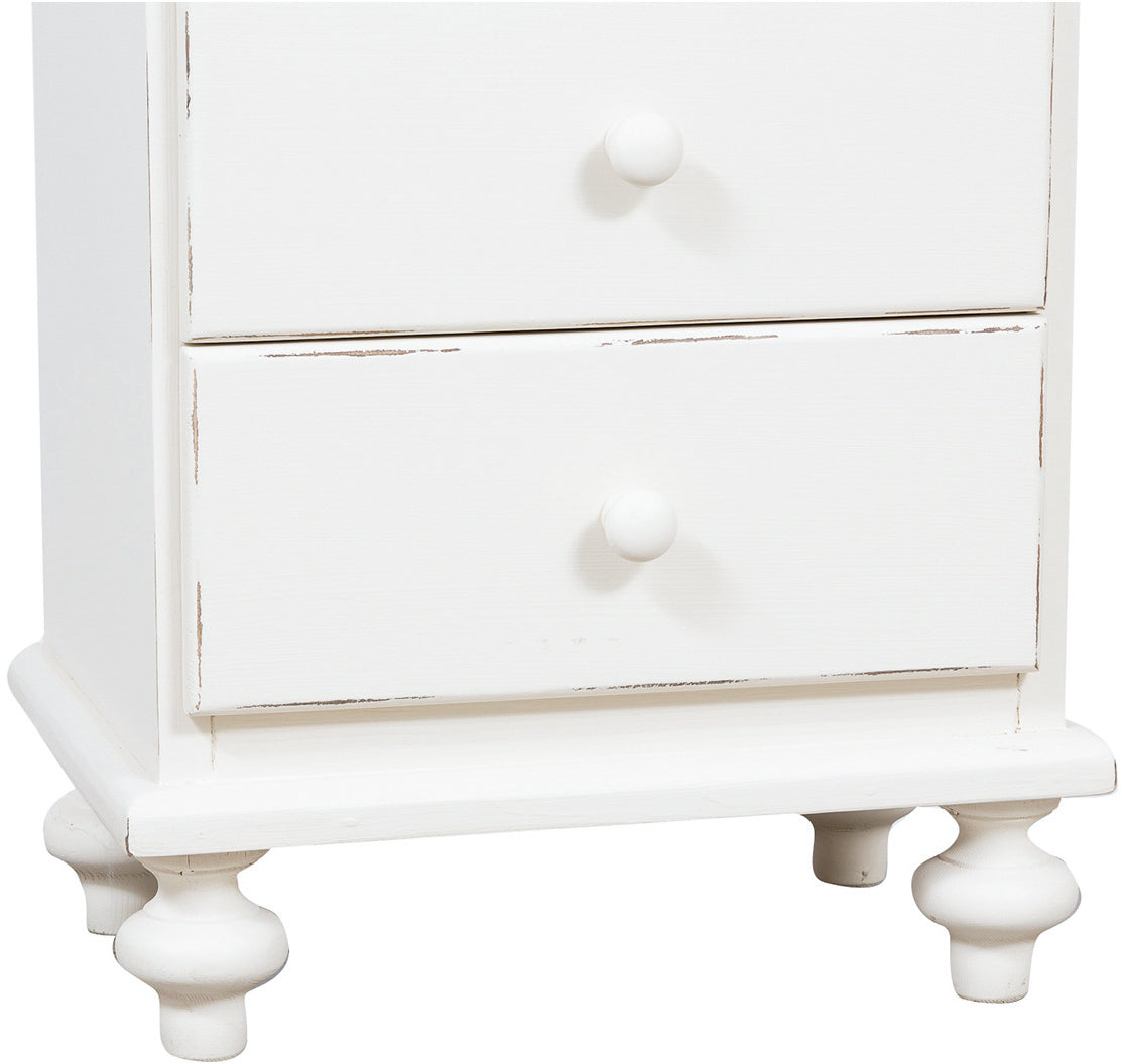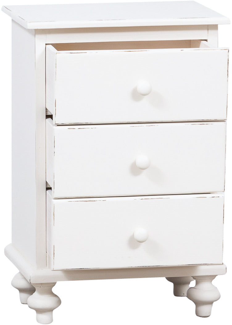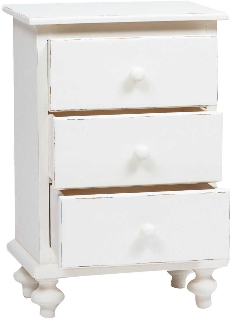 Comodino realizzato interamente in legno massello di tiglio, di dimensioni L50xPR35xH70 cm. Dal semplice design in stile Country, vanta tre ampi e funzionali cassetti realizzati con incastri a coda di rondine e pomelli in legno. La scrupolosa lavorazione artigianale Made in Italy ne garantisce solidità e durevolezza nel tempo.