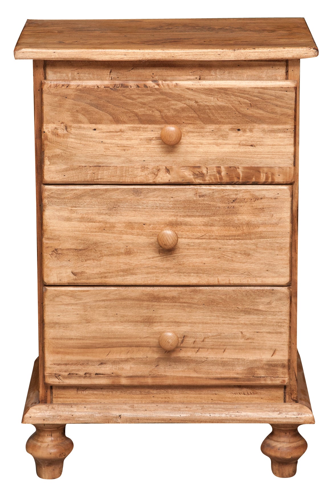 Comodino realizzato interamente in legno massello di tiglio, di dimensioni L50xPR35xH70 cm. Dal semplice design in stile Country, vanta tre ampi e funzionali cassetti realizzati con incastri a coda di rondine e pomelli in legno. La scrupolosa lavorazione artigianale Made in Italy ne garantisce solidità e durevolezza nel tempo.