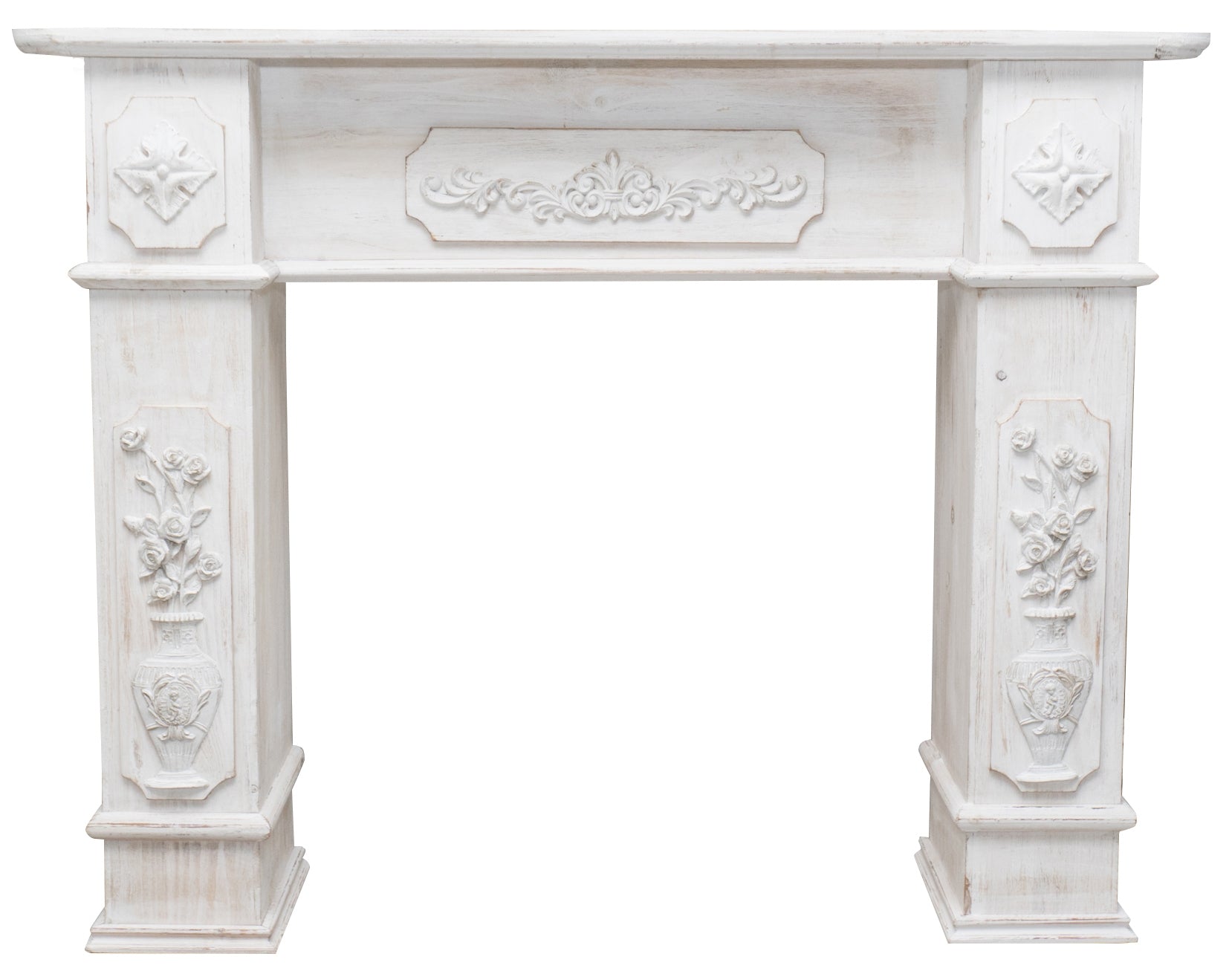 Cornice camino L121xPR28xH96 realizzata in legno con finitura anticata. Originale quanto elegante complemento di arredo, impreziosito da decori a rilievo, è il perfetto completamento per qualsiasi tipo di ambiente, arricchendo una parete vuota o dando un tocco di classe al caminetto esistente.