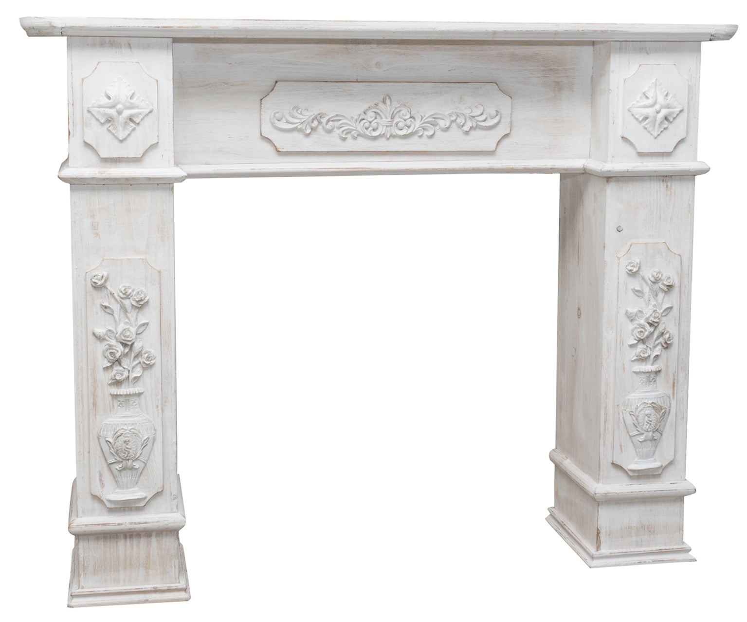Biscottini Cornice camino in legno finitura bianca anticata L121xPR28xH96 cm realizzata