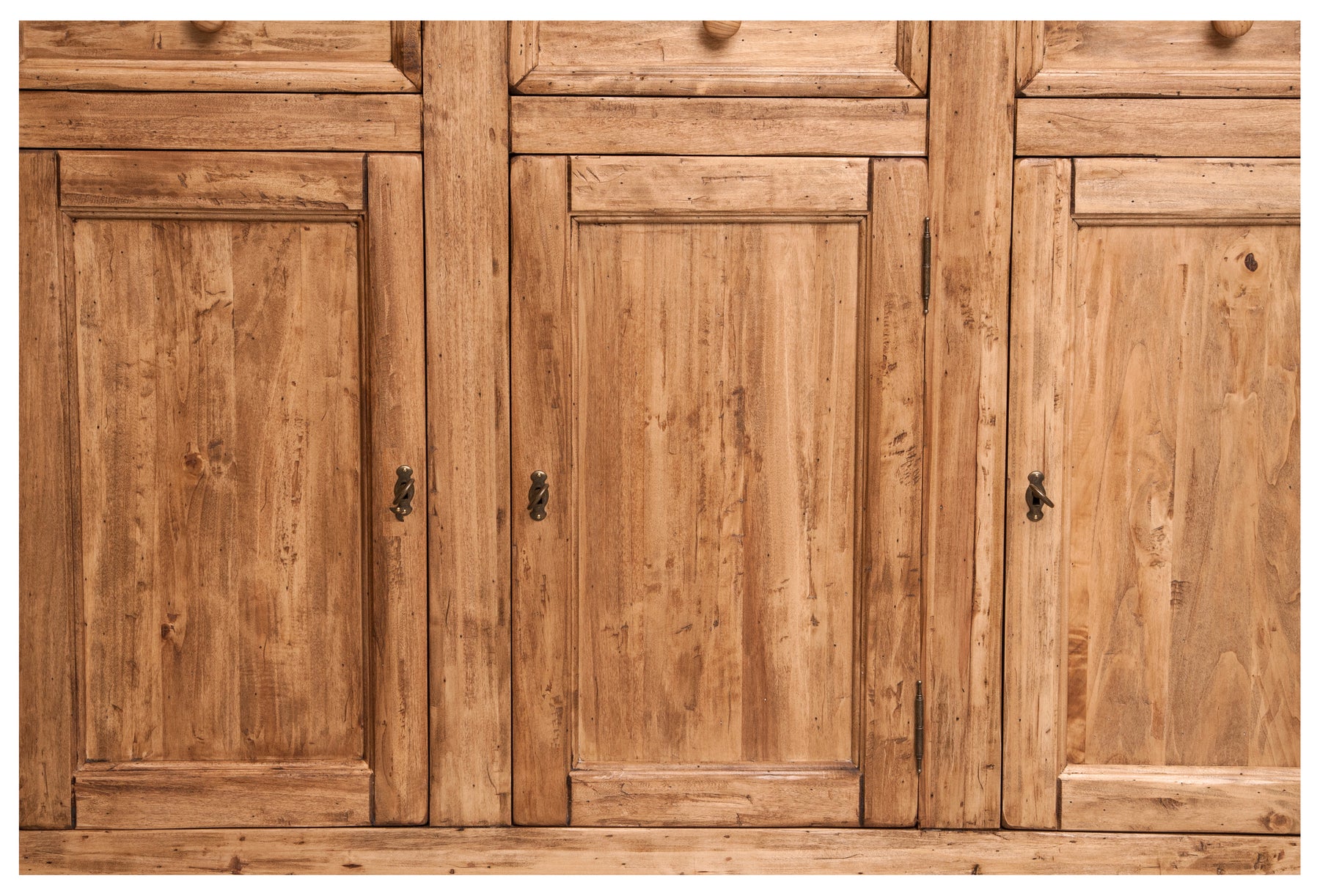 Credenza interamente prodotta in legno massello di tiglio di dimensioni L156xPR45xH103 cm. Sei ampi ripiani con anta, tre pratici cassetti realizzati con incastri a coda di rondine e pomelli in legno uniti alla solidità frutto della scrupolosa lavorazione artigianale Made in Italy, la rendono ideale per completare qualsiasi ambiente.