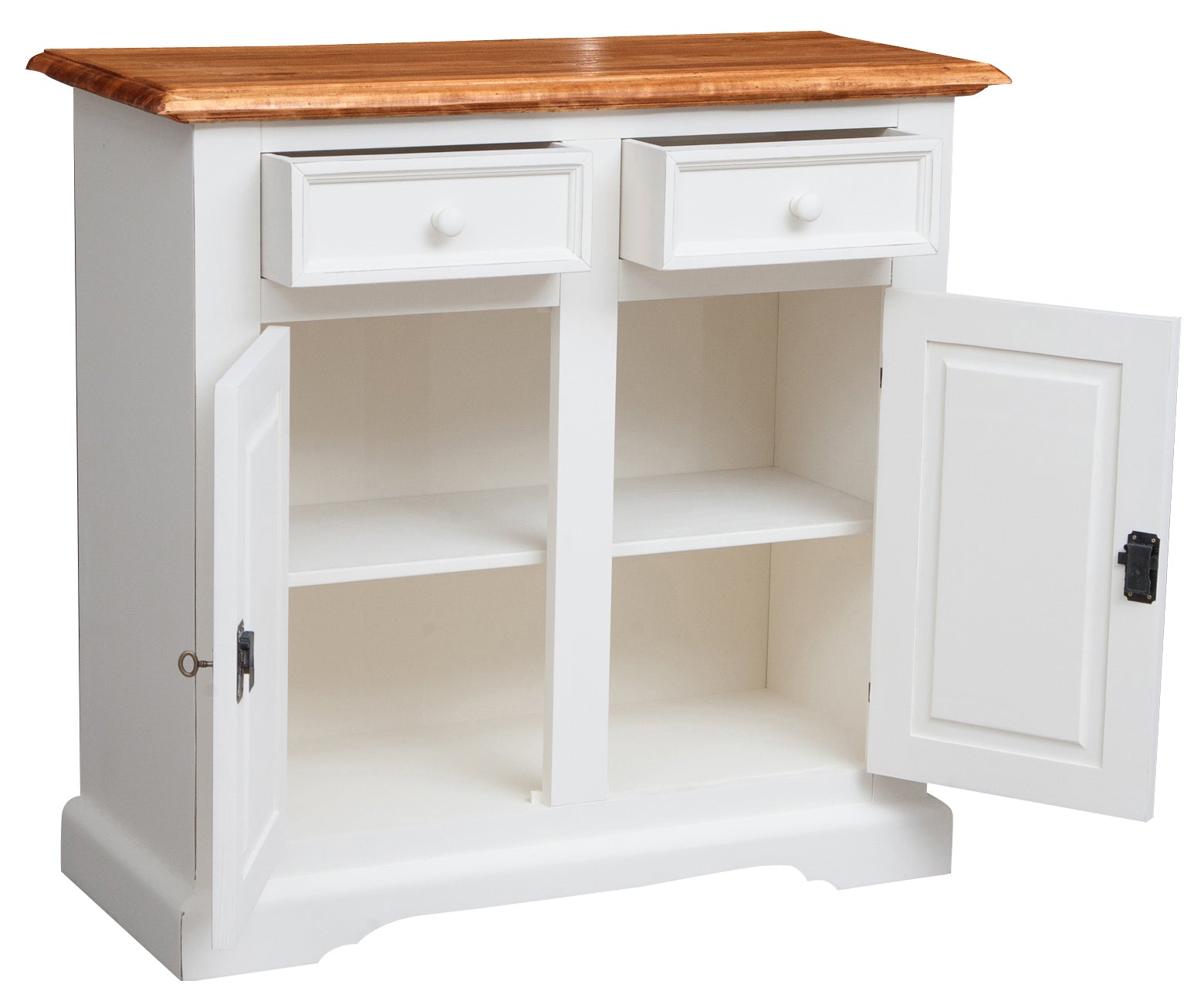 Credenza interamente prodotta in legno massello di tiglio di dimensioni L110xPR45xH103 cm. Due ripiani con doppia anta, due pratici cassetti realizzati con incastri a coda di rondine e pomelli in legno uniti alla solidità frutto della scrupolosa lavorazione artigianale Made in Italy, la rendono ideale per completare qualsiasi ambiente.