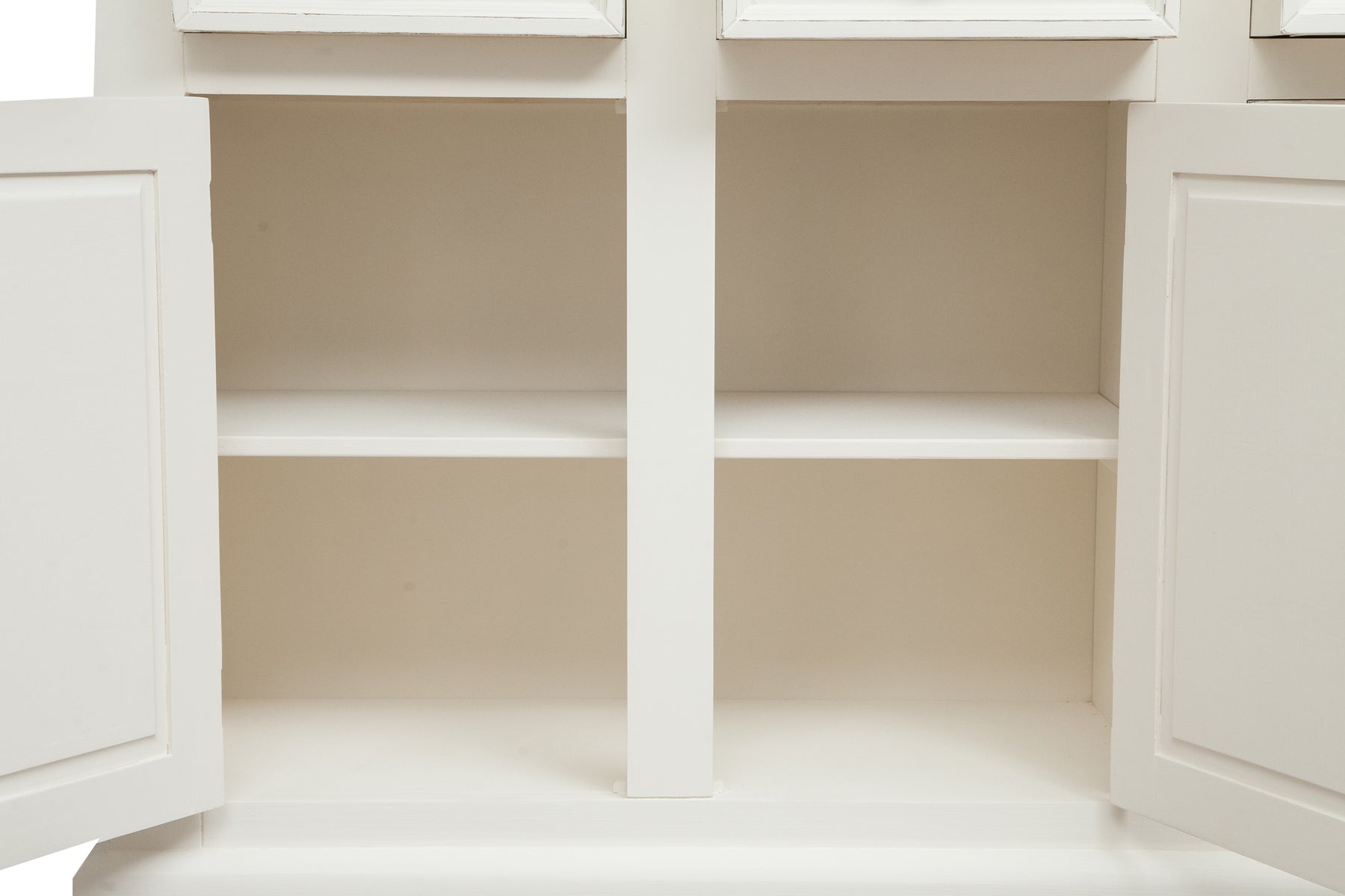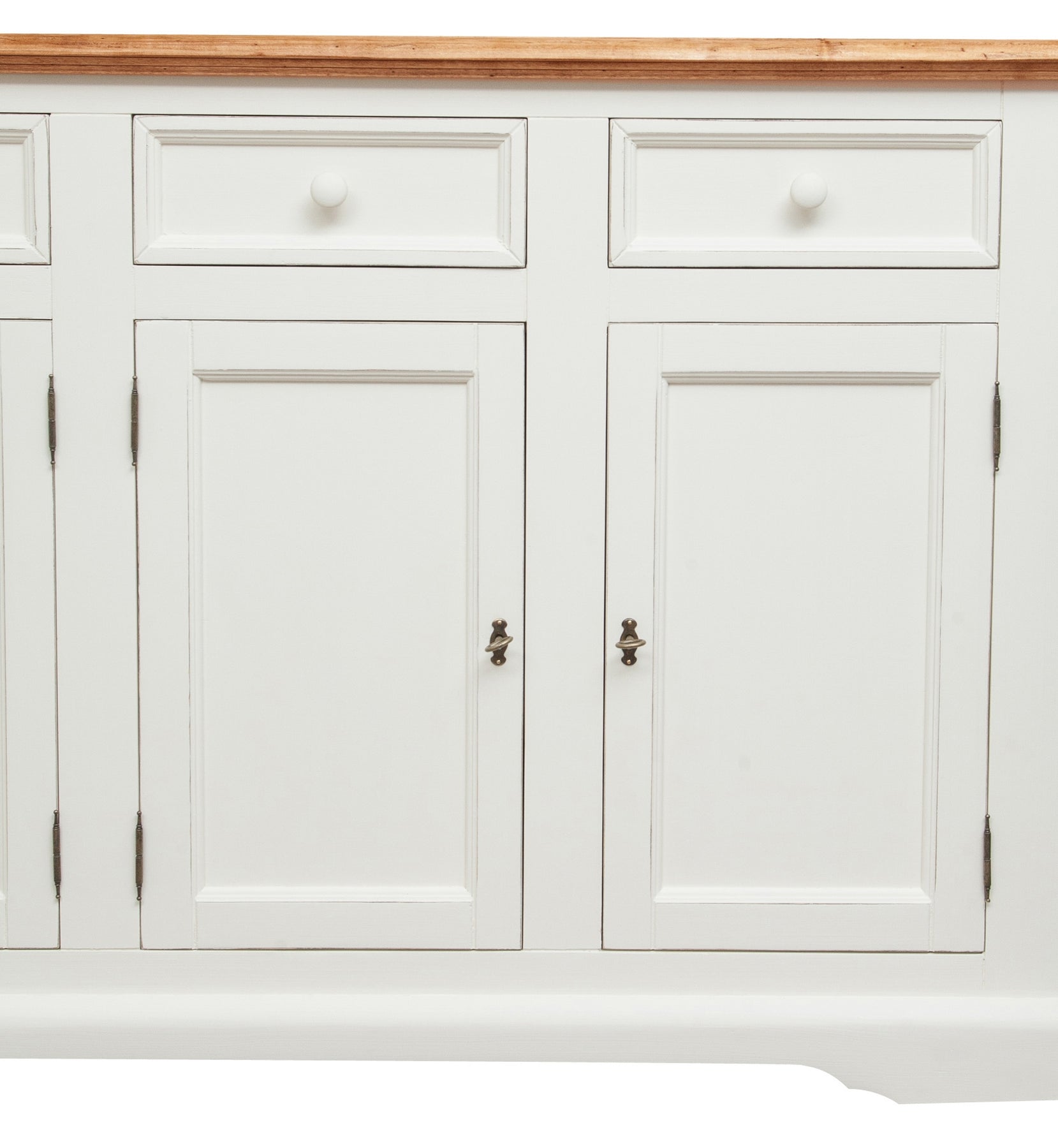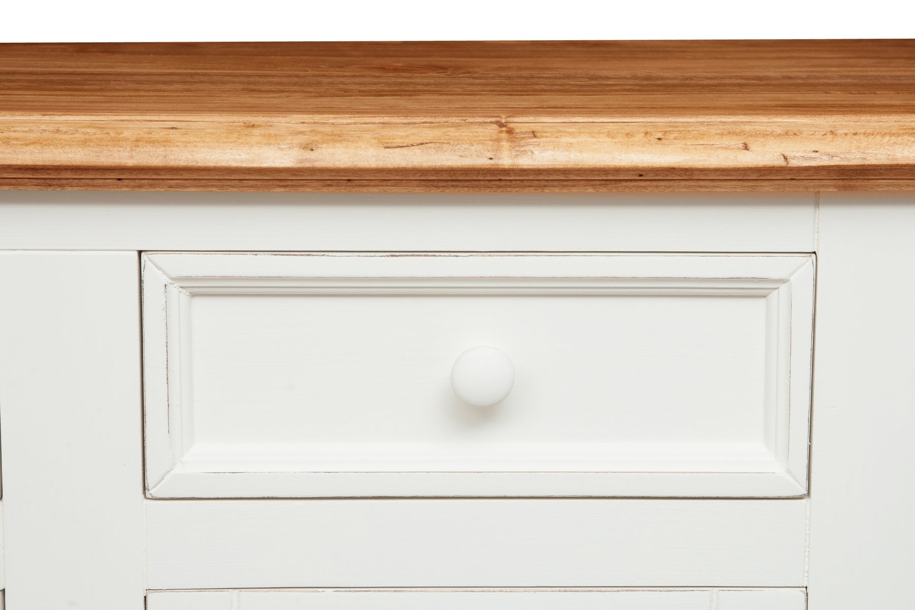 Biscottini Credenza Country in legno massello di tiglio struttura bianca anticata top finitura naturale L202xPR45xH103 cm. Made in Italy