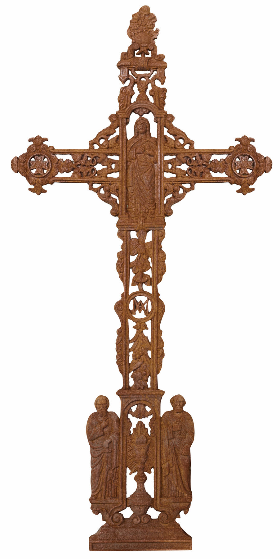 Biscottini Croce in fusione di ghisa finitura ruggine naturale 85x4x175 cm Riproduzione