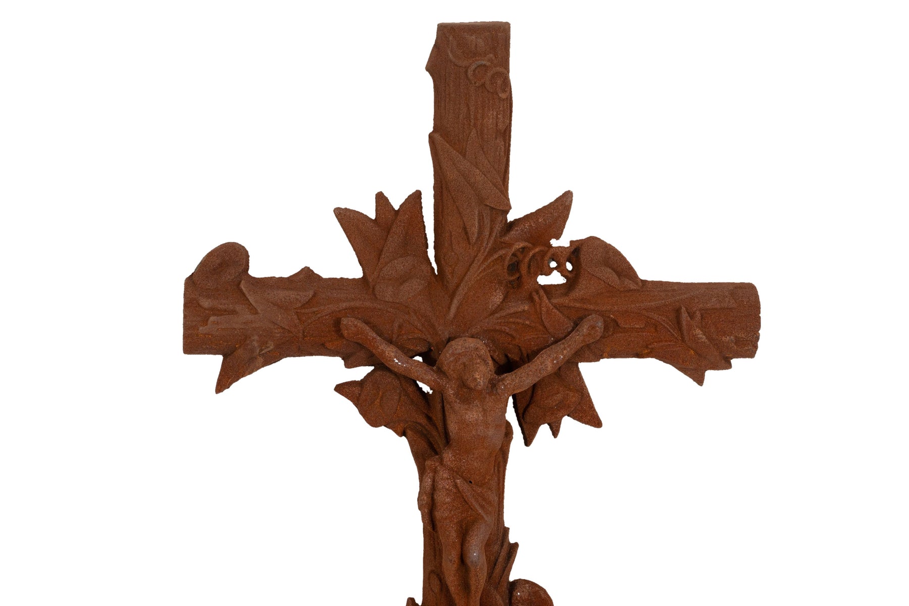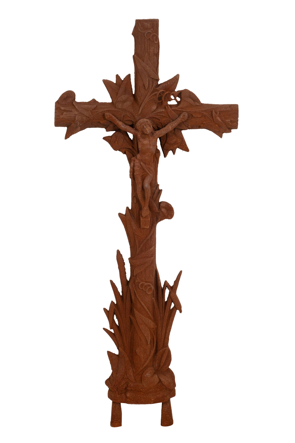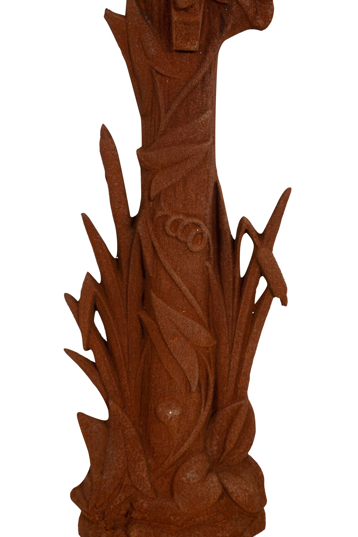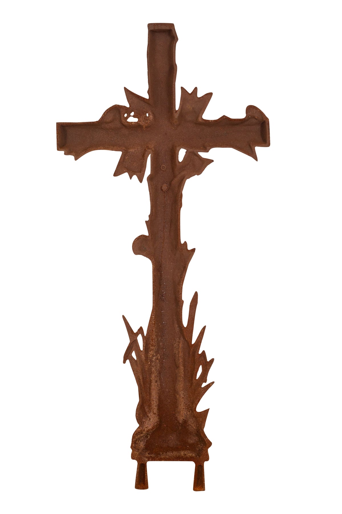 Riproduzione di antica croce realizzata in fusione di ghisa con finitura ruggine naturale di dimensioni larghezza 53 cm, profondità 13 cm, altezza 116 cm. Tutte le misure si riferiscono all'ingombro massimo dell'articolo.