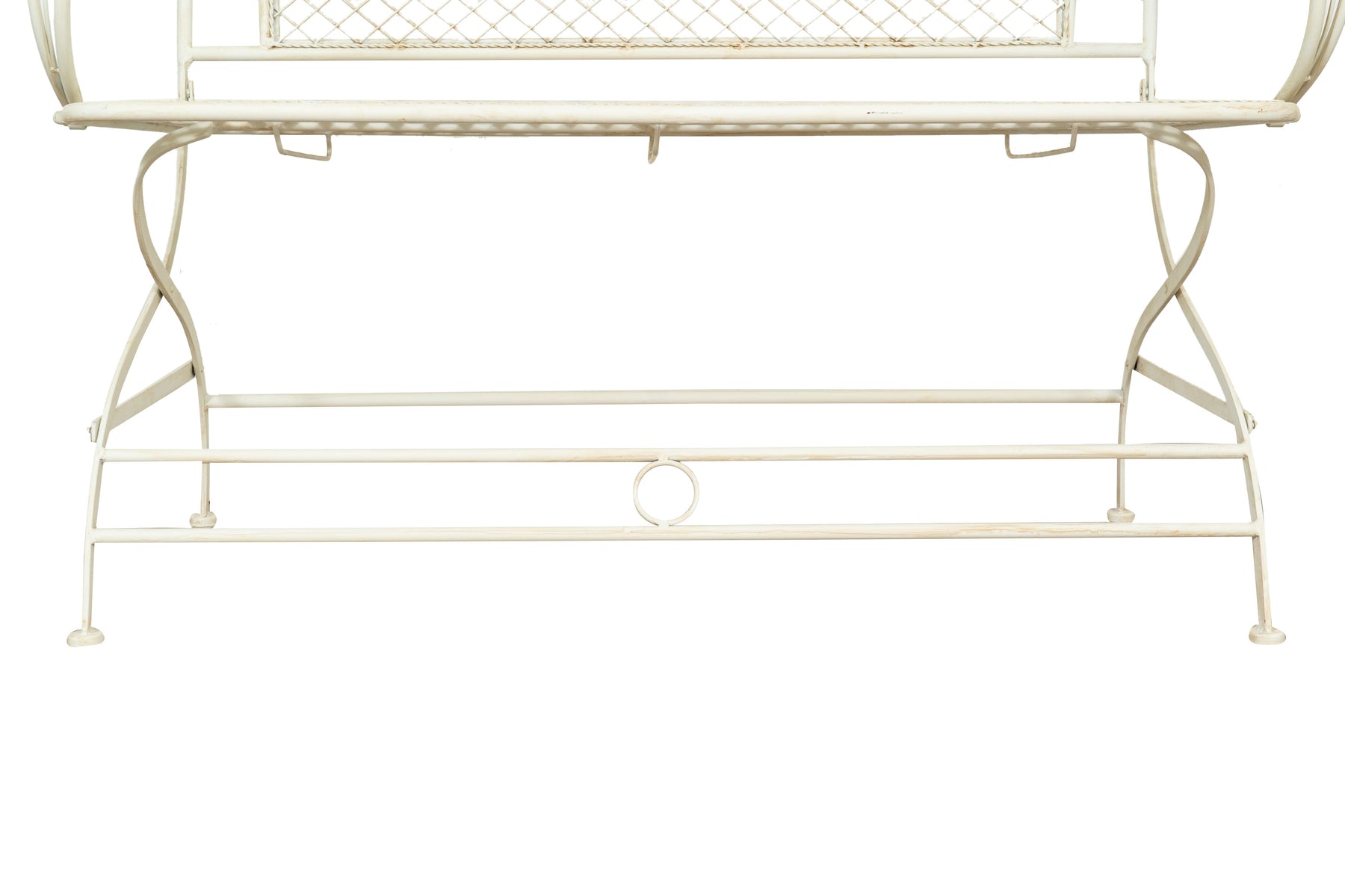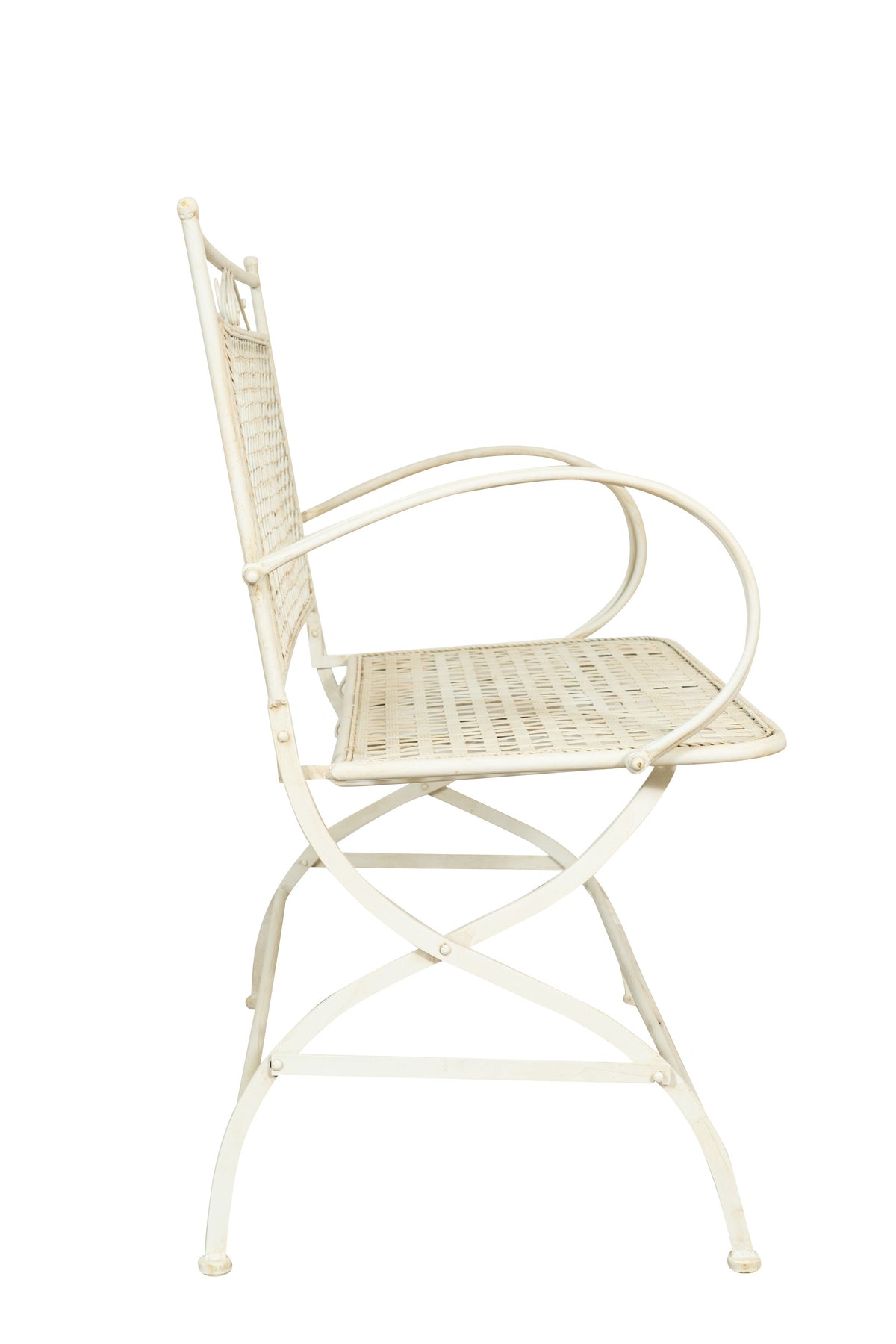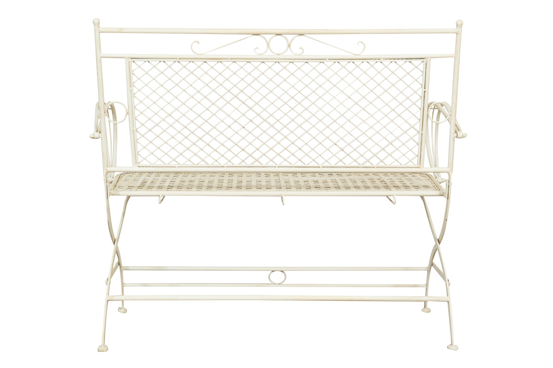 Divanetto/panchina larghezza 120 cm, profondità 52 cm, altezza 79 cm realizzato in ferro battuto. Caratterizzata da una minuziosa lavorazione ad intreccio è ideale per qualsiasi spazio aperto.