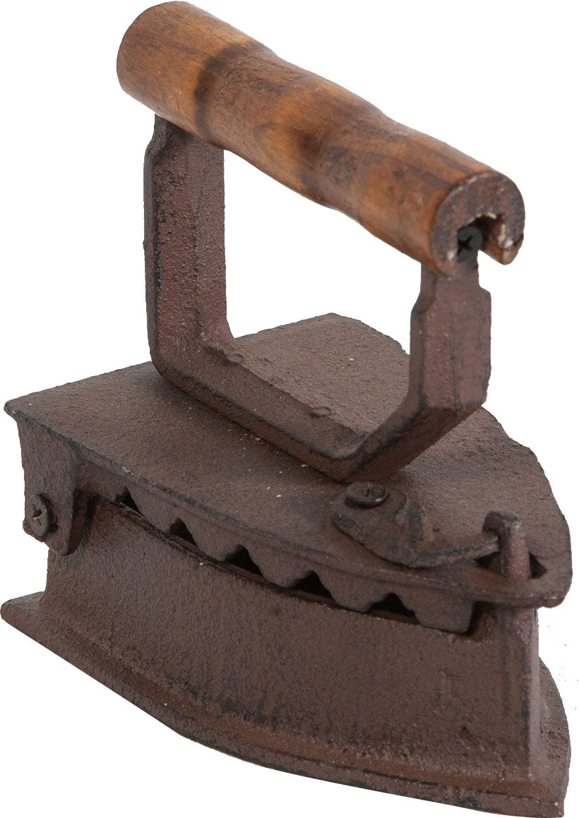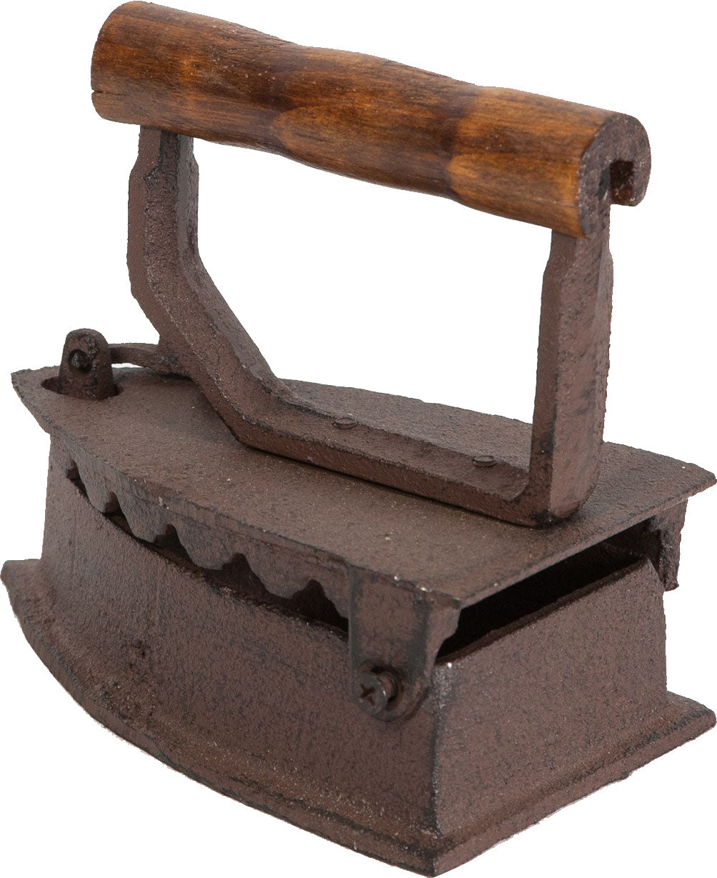 Ferro da stiro in ghisa con manico in legno. Di dimensioni L14,5xPR9xH13 cm, riproduce fedelmente i vecchi ferri in uso nel passato. Ideale come oggetto da collezione, fermacarte o fermaporte.