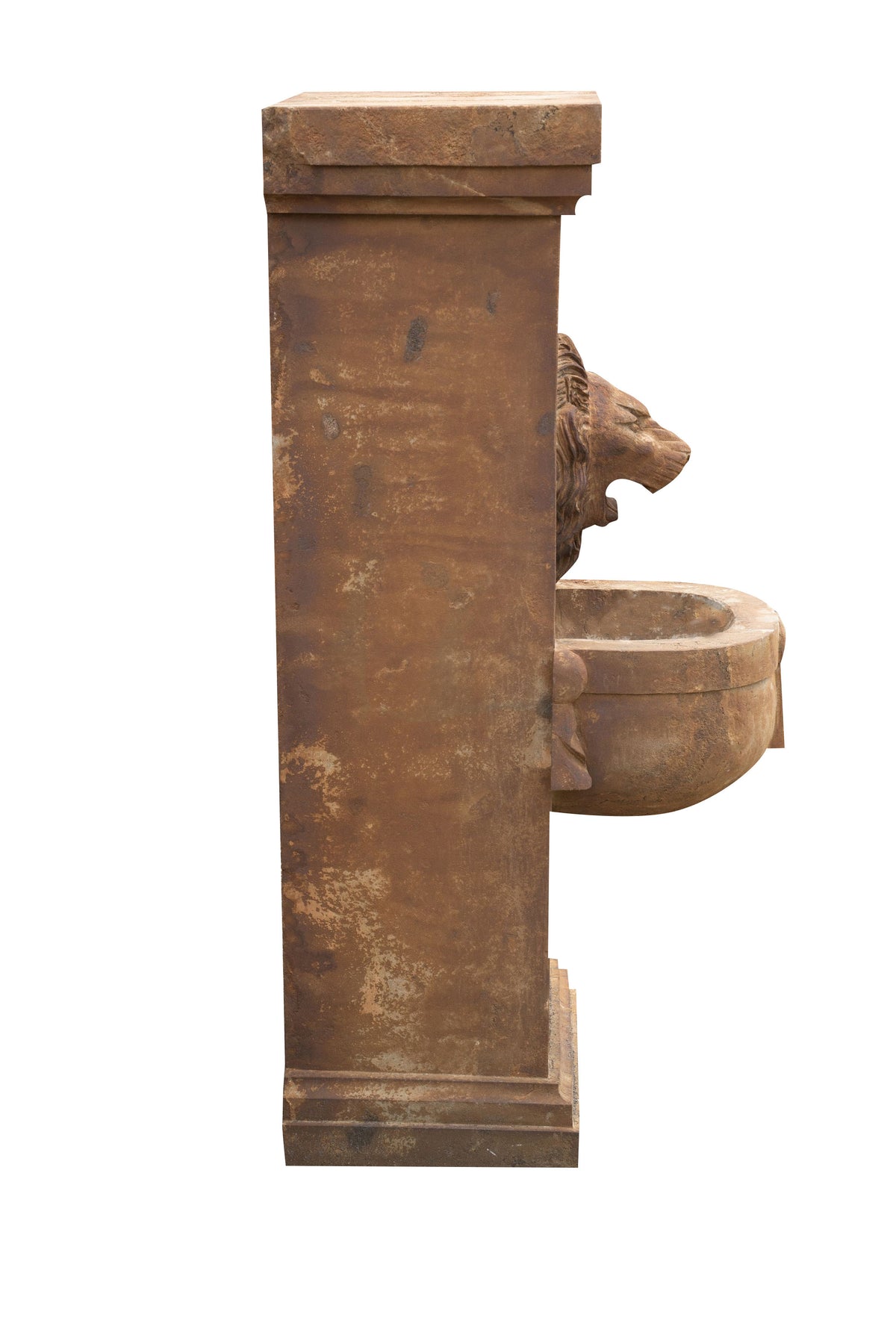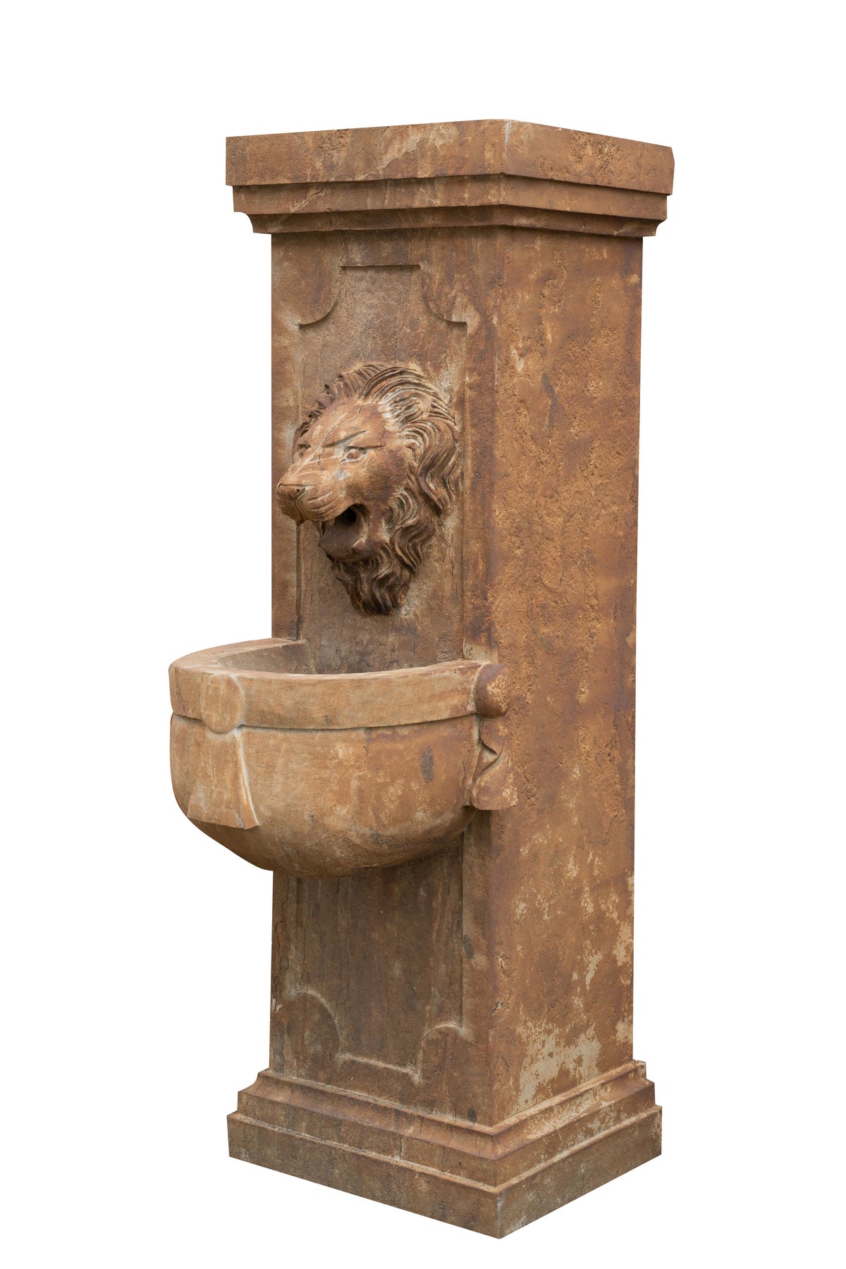 Fontana a muro smontabile di dimensioni L40xPR59xH125 cm realizzata in pietra. Le caratteristiche sfumature e venature del materiale la rendono un pezzo unico. Tutte le misure si riferiscono all'ingombro massimo dell'articolo