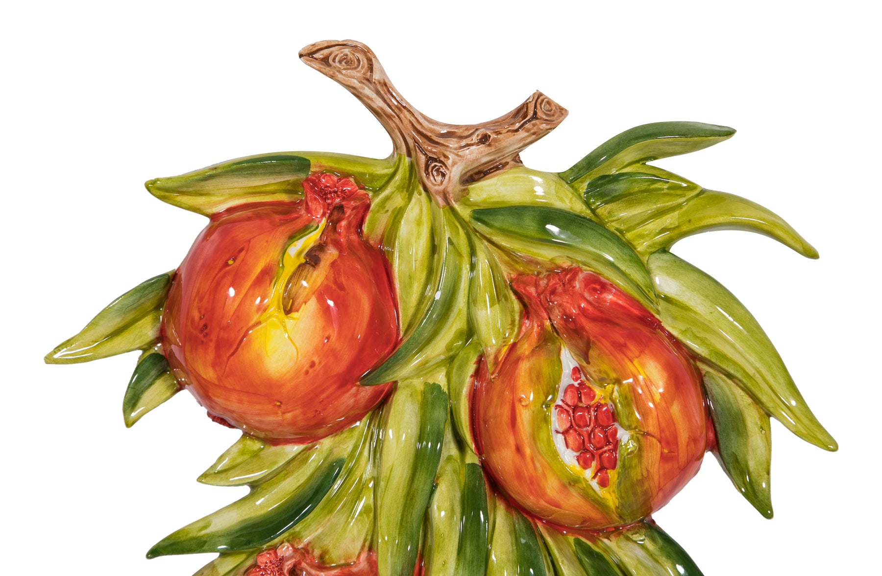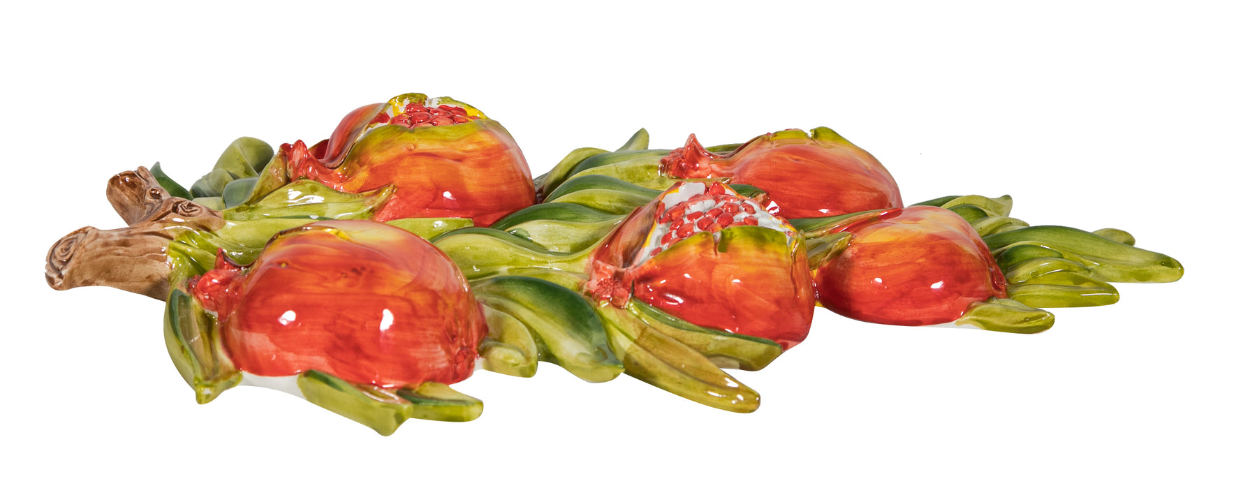 Decorazione melograni a muro in ceramica dipinto a mano finitura Shabby, misure L43XPR30XH6 CM. Articolo interamente realizzato in Italia.