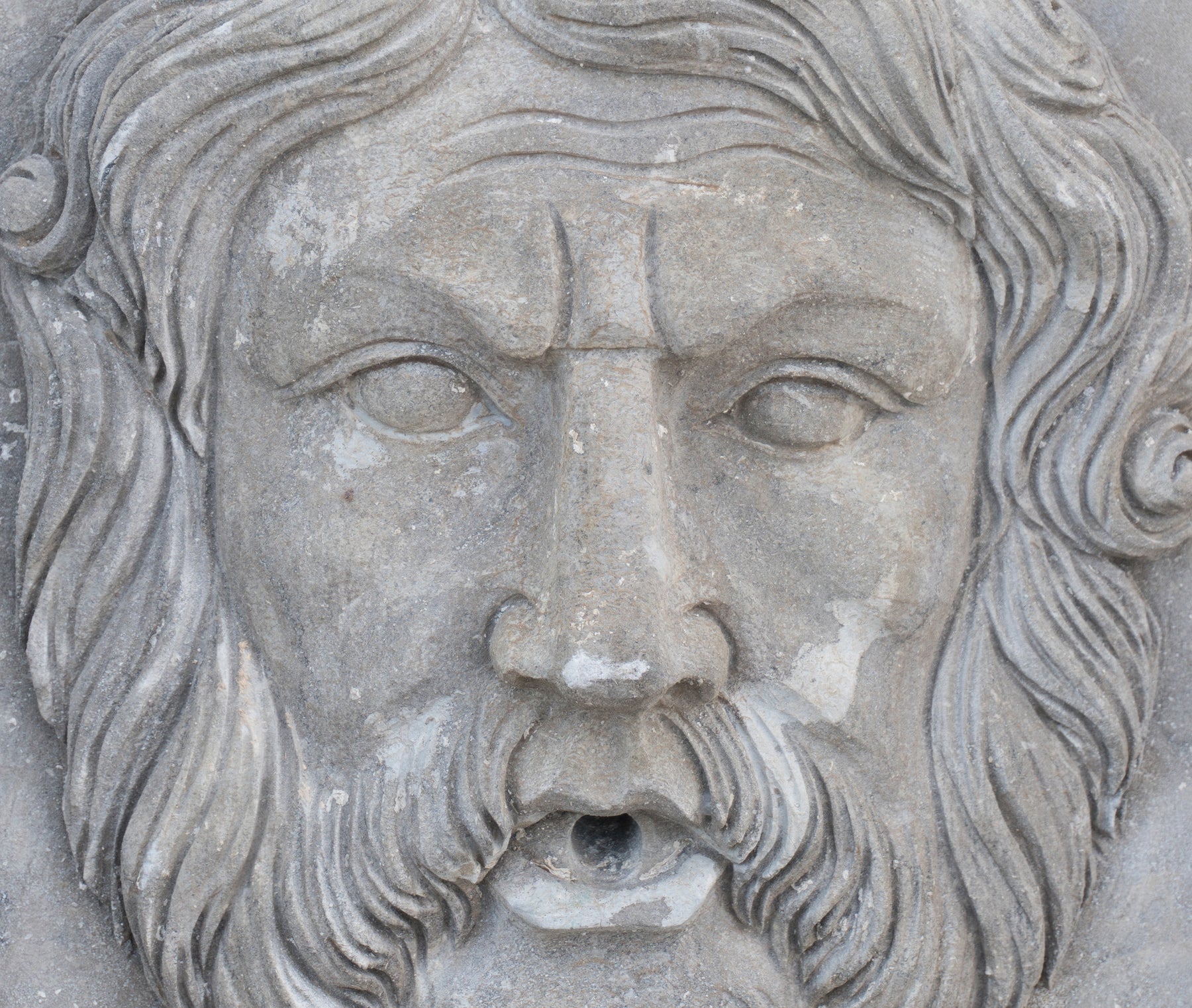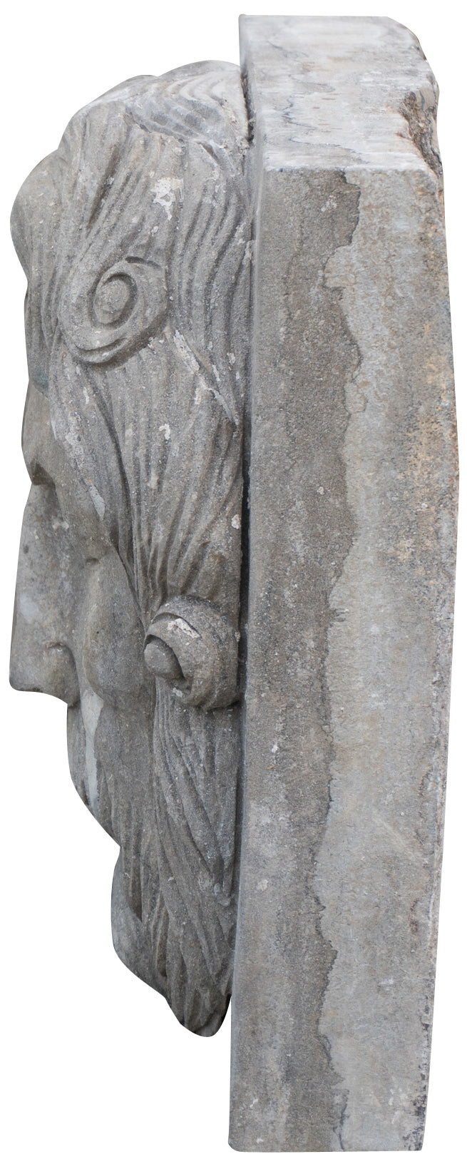 Frontone in pietra L40xPR13xH40 cm realizzato completamente a mano in un unico blocco di pietra. Le caratteristiche sfumature e venature del materiale lo rendono un pezzo unico