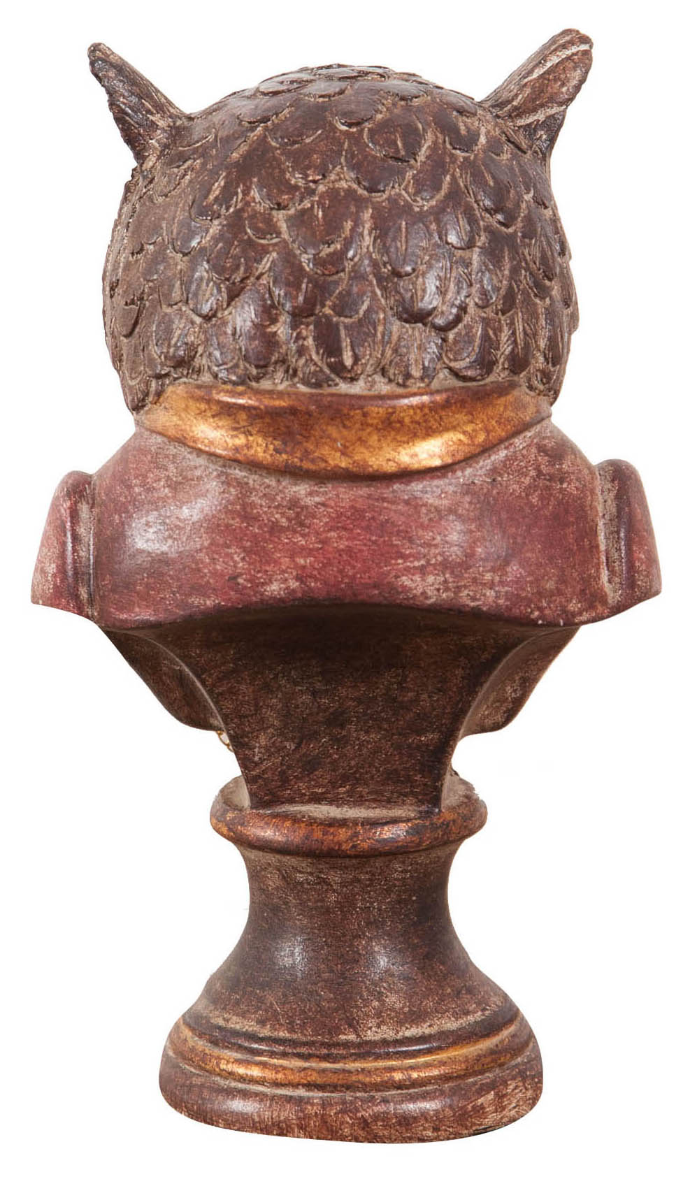 Statuetta raffigurante il busto di un gufo di dimensioni L10xPR10xH18 cm realizzato in resina e dipinto. Dispone di un orologio analogico perfettamente funzionante. Arreda con colore e simpatica originalità qualsiasi ambiente.