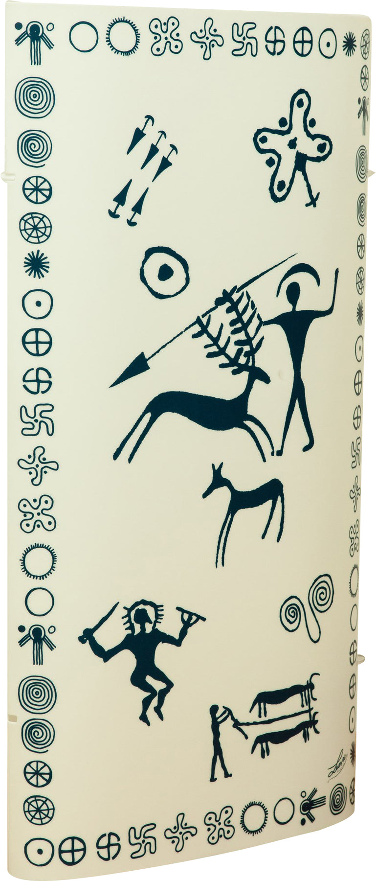 Moderna lampada in policarbonato decorato. Ideale con qualsiasi tipo di arredo per la sua semplicità. Necessita di una lampadina con attacco E27-60w, non fornita. Misure:L27xPR16xH58 cm