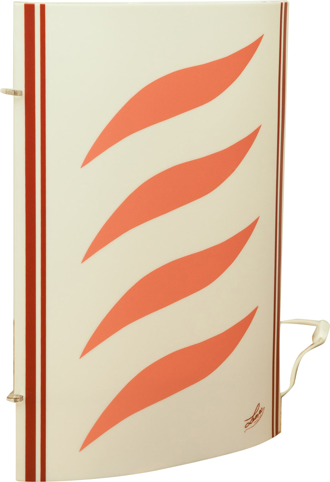 Moderna lampada in policarbonato decorato. Ideale con qualsiasi tipo di arredo per la sua semplicità. Necessita di una lampadina con attacco E27-60w, non fornita. Misure: L23xPR13xH37 cm