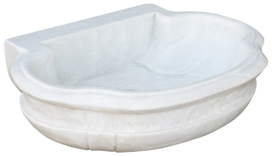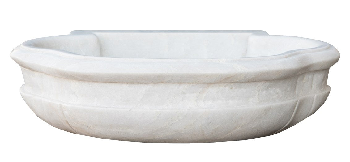 Vasca in marmo realizzata completamente a mano di dimensioni L56XPR41XH15 cm, già dotata di foro per lo scarico. Ricavata dalla lavorazione di un unico blocco di marmo, le caratteristiche sfumature e venature del materiale la rendono un pezzo unico. Ideale come lavandino da interni o lavello da esterno ma utilizzabile anche come vasca per fontane.