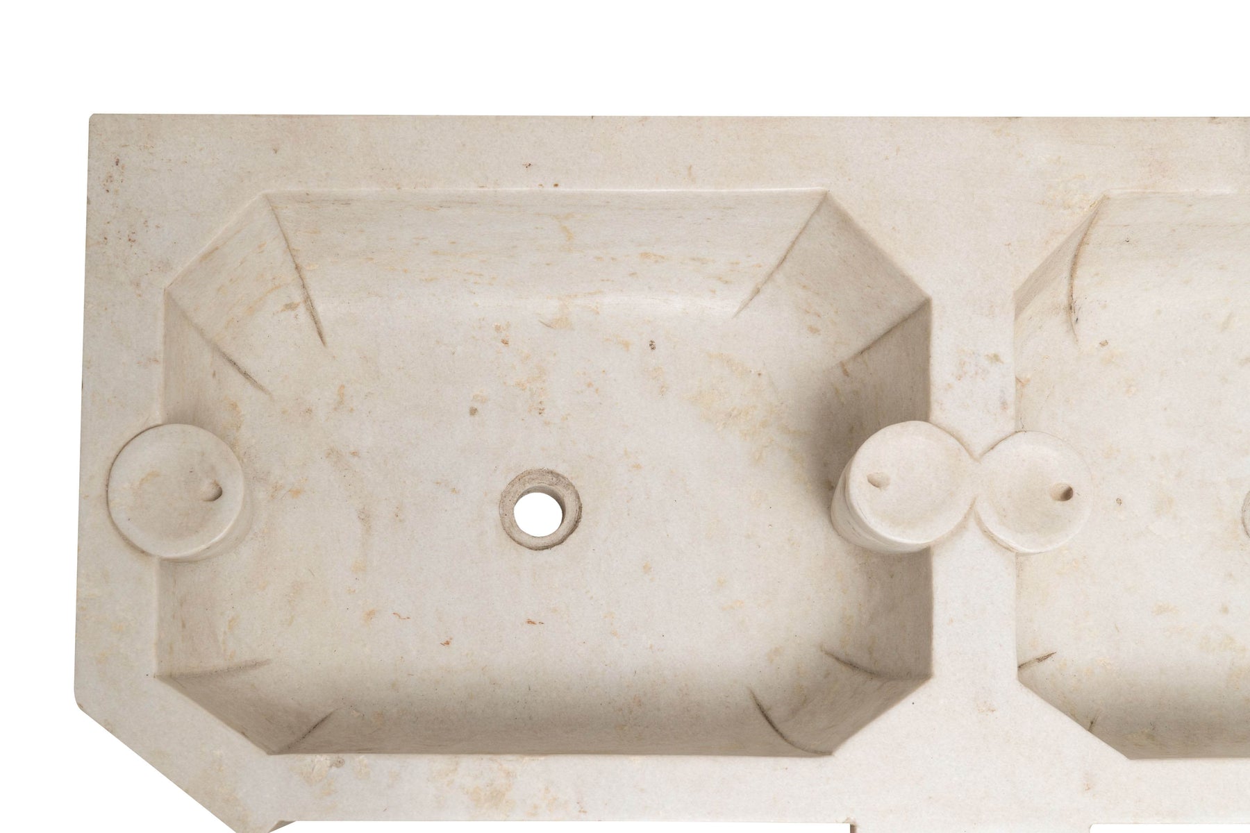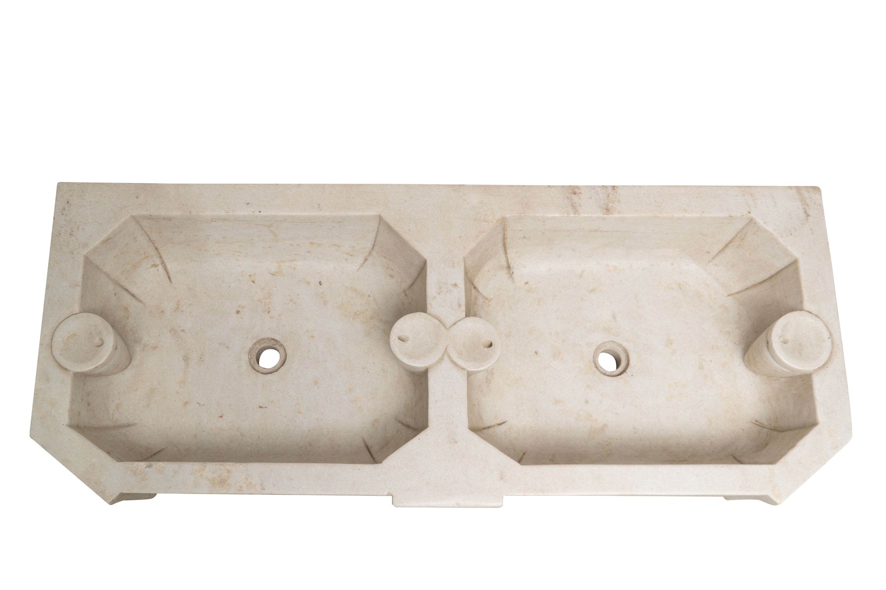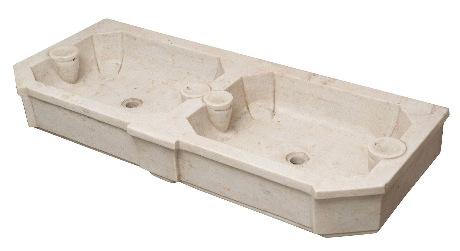 Vasca in marmo realizzata completamente a mano di dimensioni larghezza 135 cm, profondità 56 cm, altezza 21 cm, già dotata di foro per lo scarico. Ricavata dalla lavorazione di un unico blocco di marmo, le caratteristiche sfumature e venature del materiale la rendono un pezzo unico. Ideale come lavandino da interni o lavello da esterno ma utilizzabile anche come vasca per fontane. Tutte le misure si riferiscono all'ingombro massimo dell'articolo.