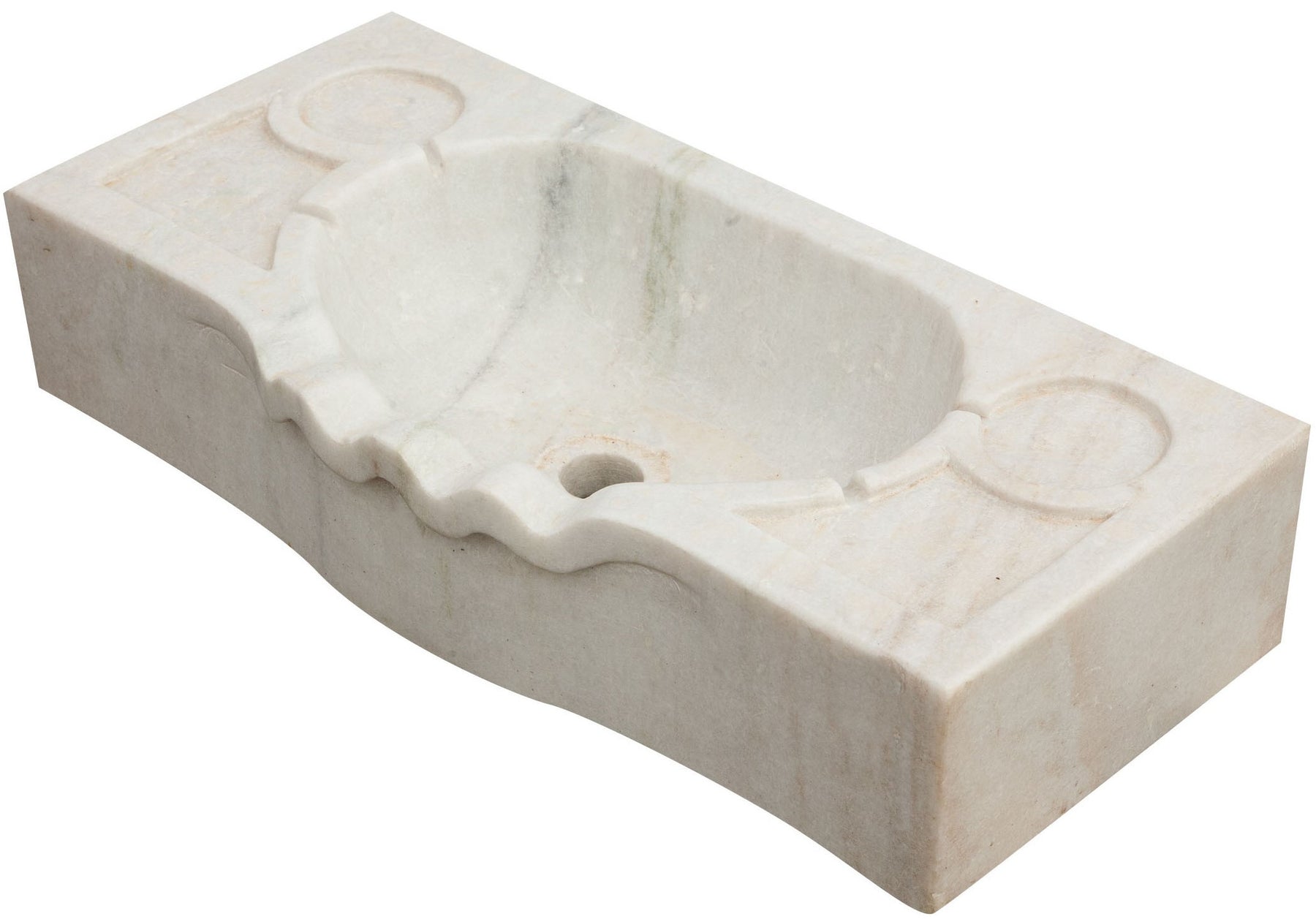 Vasca smerlata in marmo realizzata completamente a mano di dimensioni L60xPR30xH14 cm, già dotata di foro per lo scarico. Ricavata dalla lavorazione di un unico blocco di marmo, le caratteristiche sfumature e venature del materiale la rendono un pezzo unico. Ideale come lavandino da interni o lavello da esterno ma utilizzabile anche come vasca per fontane.
