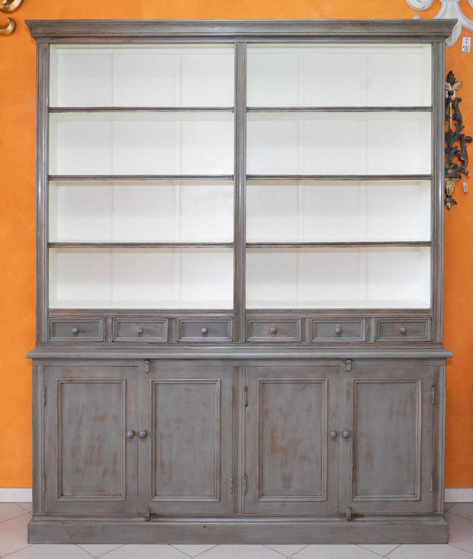 Molto solida e spaziosa libreria di dimensioni larghezza 200 cm, profondità 42 cm, altezza 242 cm, multiuso, grazie ai ripiani interni, e di grande impatto estetico. Può essere anche utilizzata come vetrina, espositore donando un tocco di stile country e shabby a qualsiasi ambiente. Questa libreria è stata costruita utilizzando un'antichissima cornice intagliata, un elemento assolutamente splendido e unico per impreziosire qualsiasi ambiente di case, ville e attività commerciali.  I nostri mobili sono realizzati artigianalmente in India. Acquistiamo mobili nuovi, alcuni dei quali creati apposta per noi, mobili vecchi o antichi, generalmente del periodo coloniale o della tradizione indiana, provenienti da tutte le zone dell’India. Nel corso dei nostri moltissimi viaggi abbiamo selezionato piccole realtà produttive presso le quali andiamo personalmente a seguire i restauri e l’esecuzione dei meravigliosi decori. Tutte le misure si riferiscono all'ingombro massimo dell'articolo.