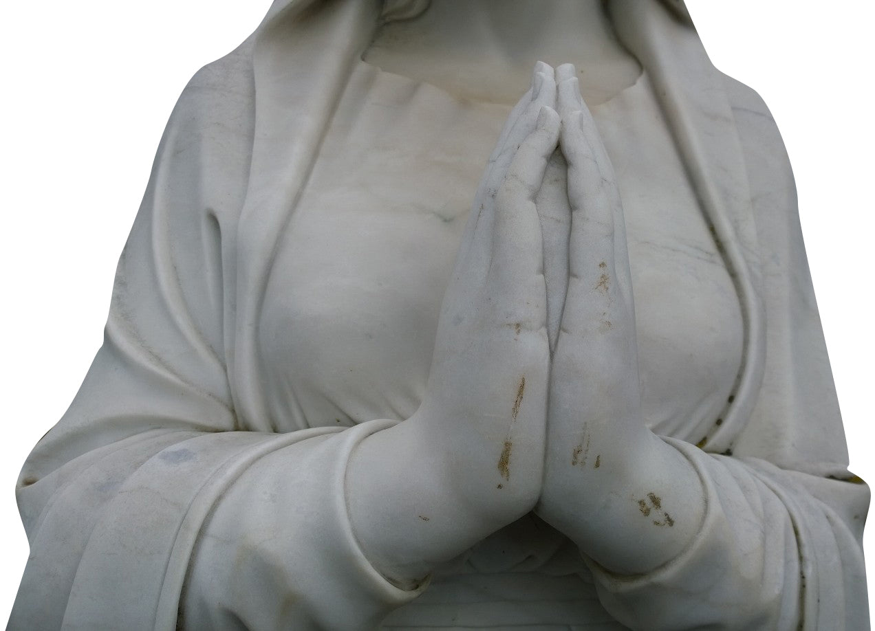 Statua di dimensioni L62xPR45xH215 cm. Raffigurante la Madonna di Lourdes, è realizzata in un unico blocco di marmo.
