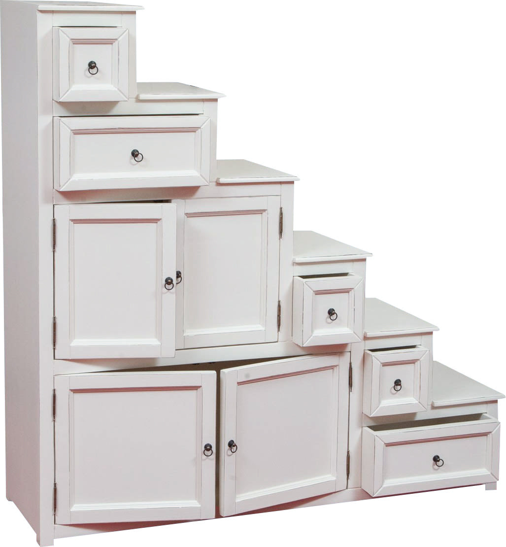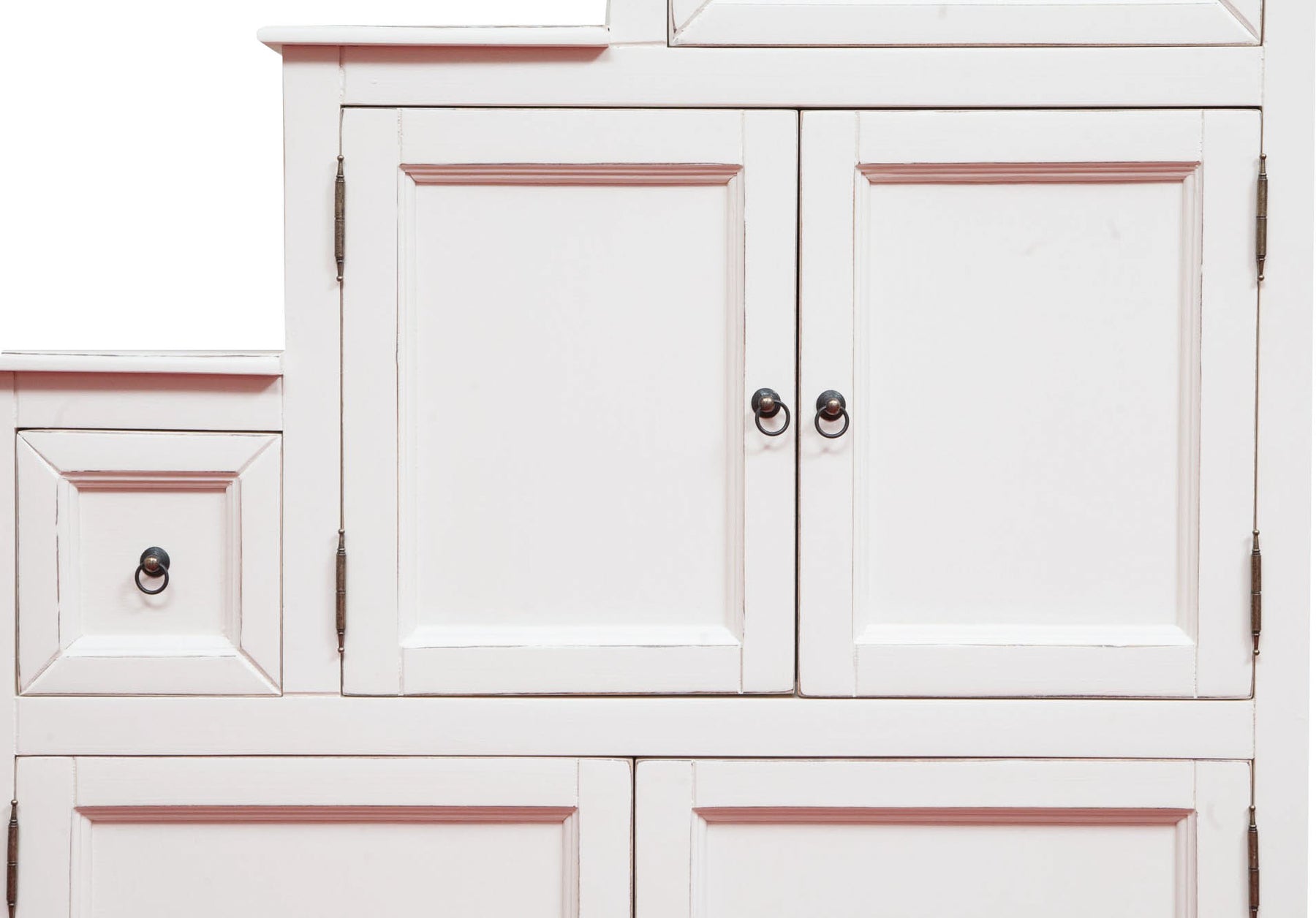 Mobile cassettiera a scala realizzato in legno massello di tiglio, di dimensioni L140xPR42xH142 cm. La scrupolosa lavorazione artigianale Made in Italy, attenta nel curare i minimi dettagli, ne garantisce resistenza nel tempo e solidità tanto da poter essere usata anche come scala. Dotata di due ampi vani con doppia anta e di cinque cassetti di varie misure, tutti realizzati con incastri a coda di rondine, è un complemento ideale per arredare con elegante originalità e versatilità qualsiasi ambiente con un tocco di stile Country.