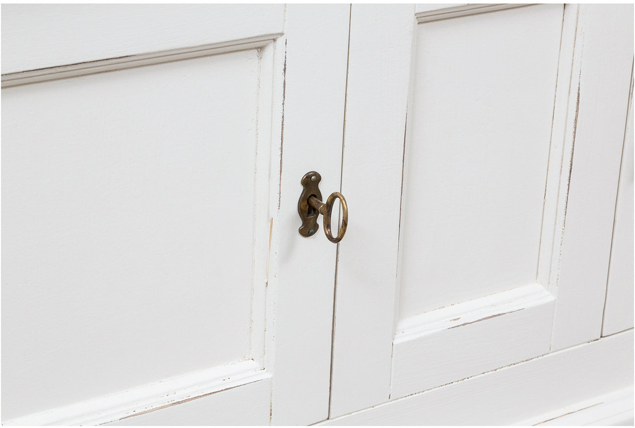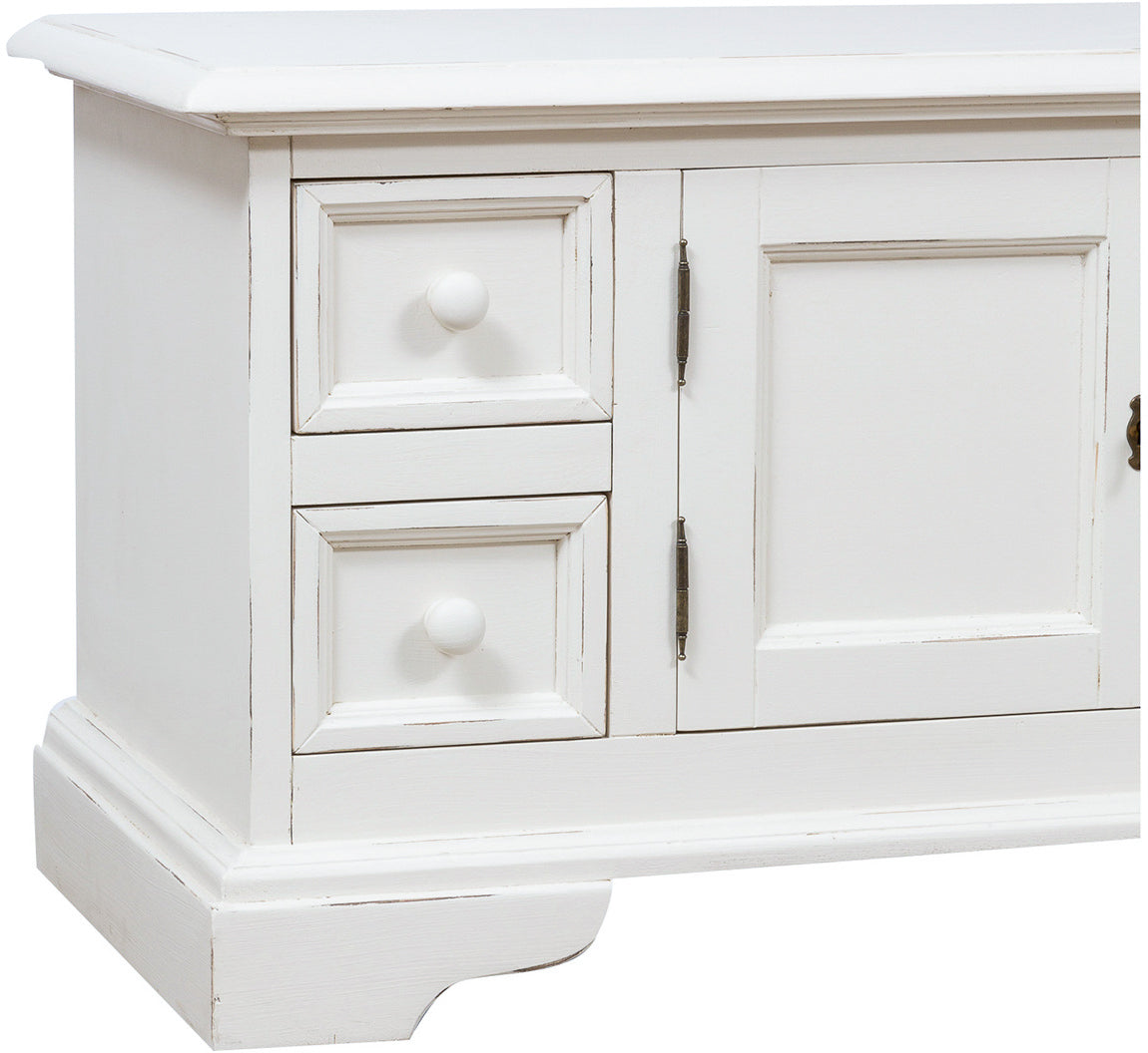 Biscottini Mobile porta tv Country in legno massello di tiglio finitura bianca anticata L150xPR51xH56 cm. Made in Italy