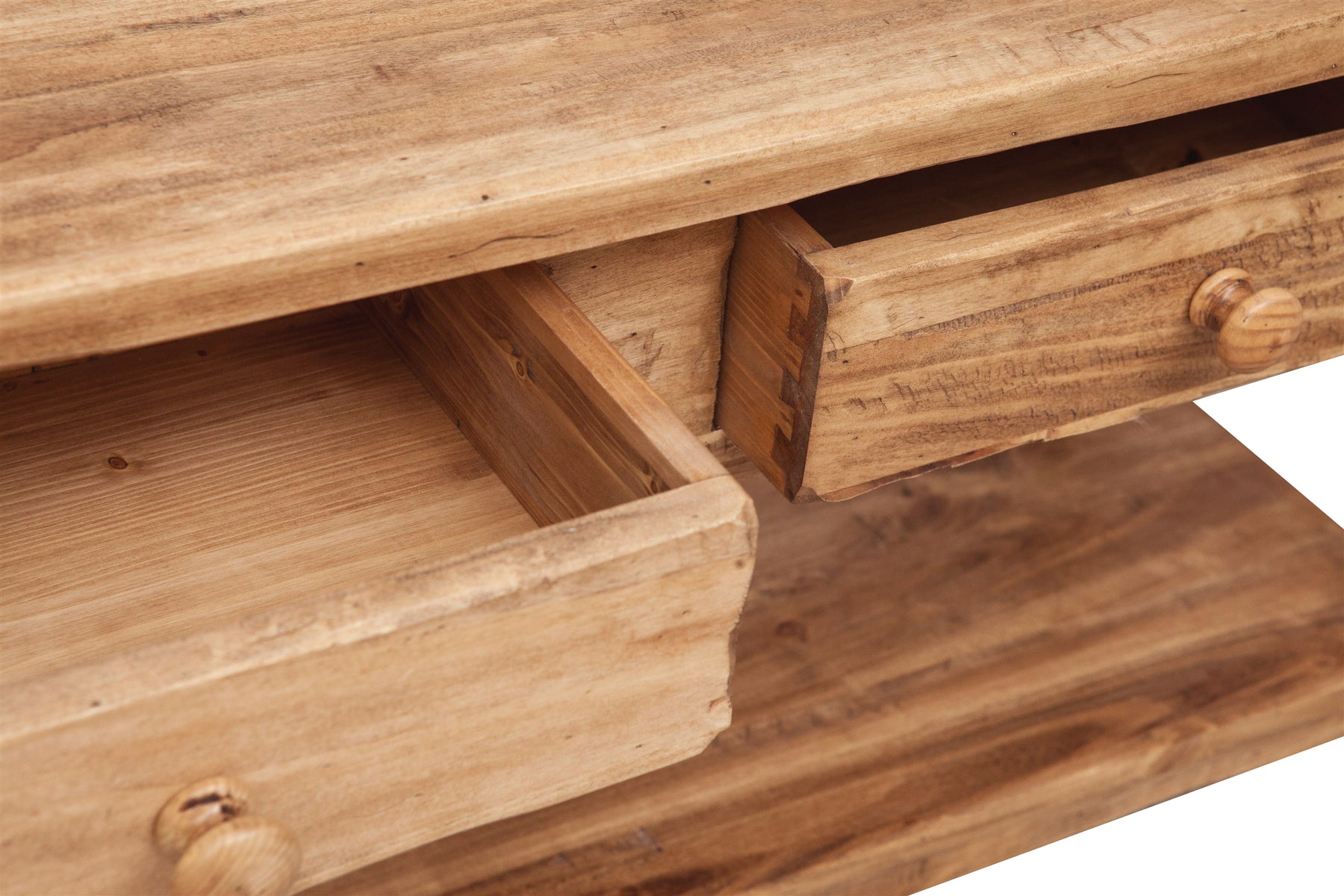 Mobile porta Tv L110xPR40xH50 cm realizzato in legno massello di tiglio, dotato di due pratici cassetti realizzati con incastri a coda di rondine e pomelli in legno e di un ripiano nella parte inferiore. La lavorazione artigianale Made in Italy, attenta ai minimi dettagli, ne conferisce solidità e qualità estetiche impareggiabili, regalando un tocco di elegante stile Country a qualsiasi ambiente.